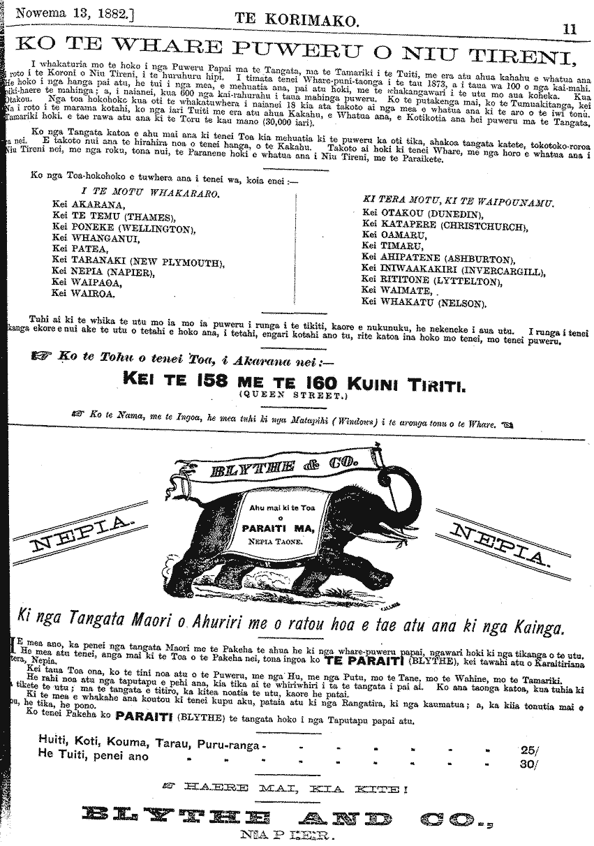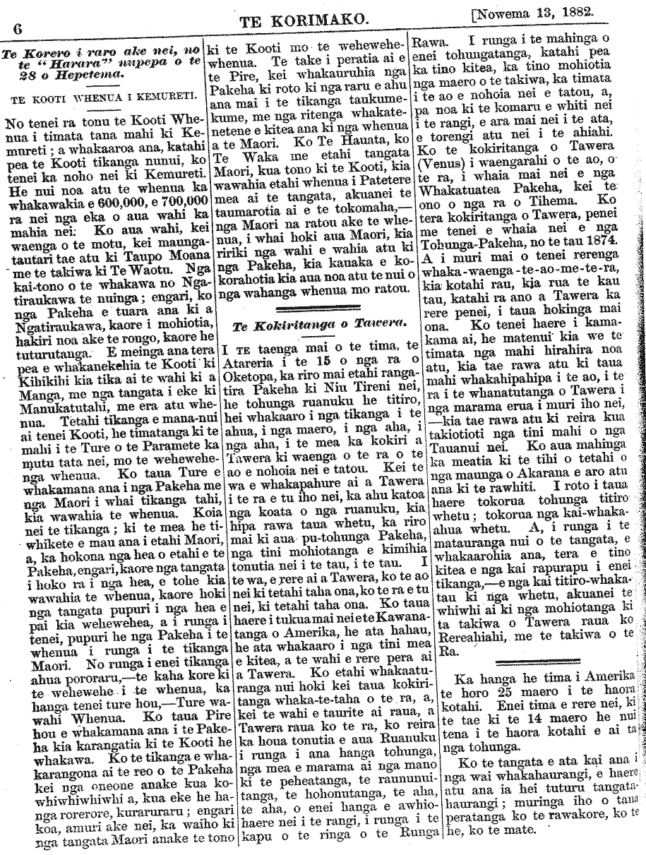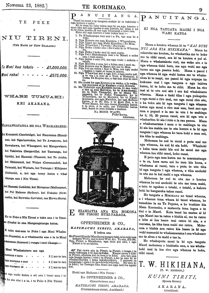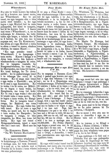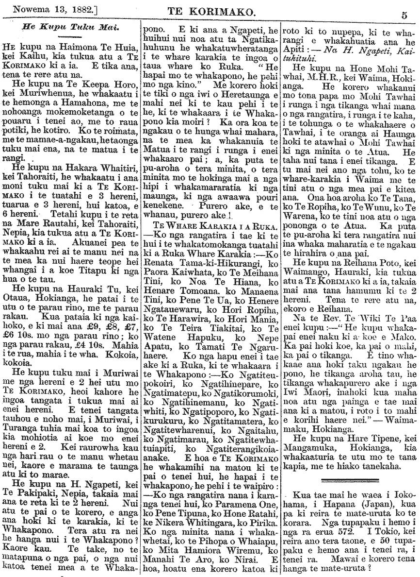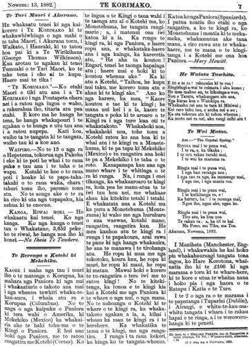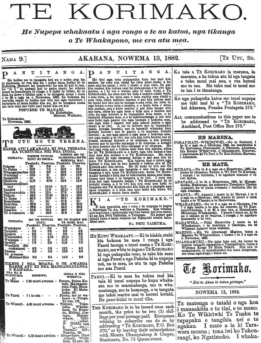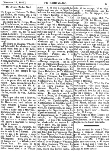 Te Korimako 1882-1890: Volume 0, Number 9. 13 November 1882 |