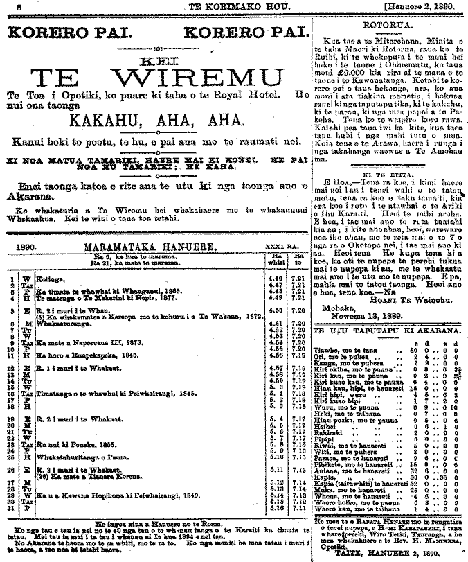 Te Korimako 1882-1890: Volume 1, Number 2. 02 January 1890 |