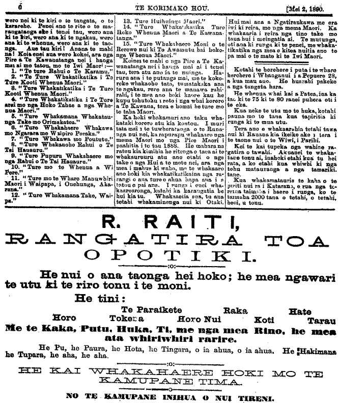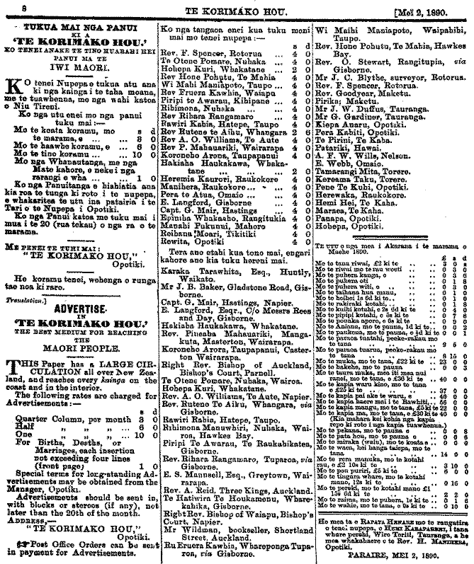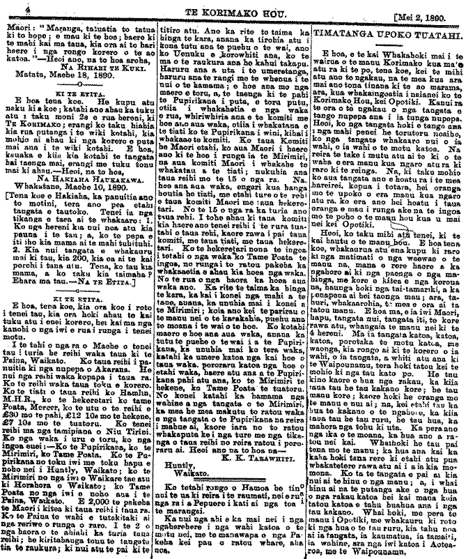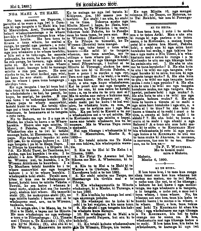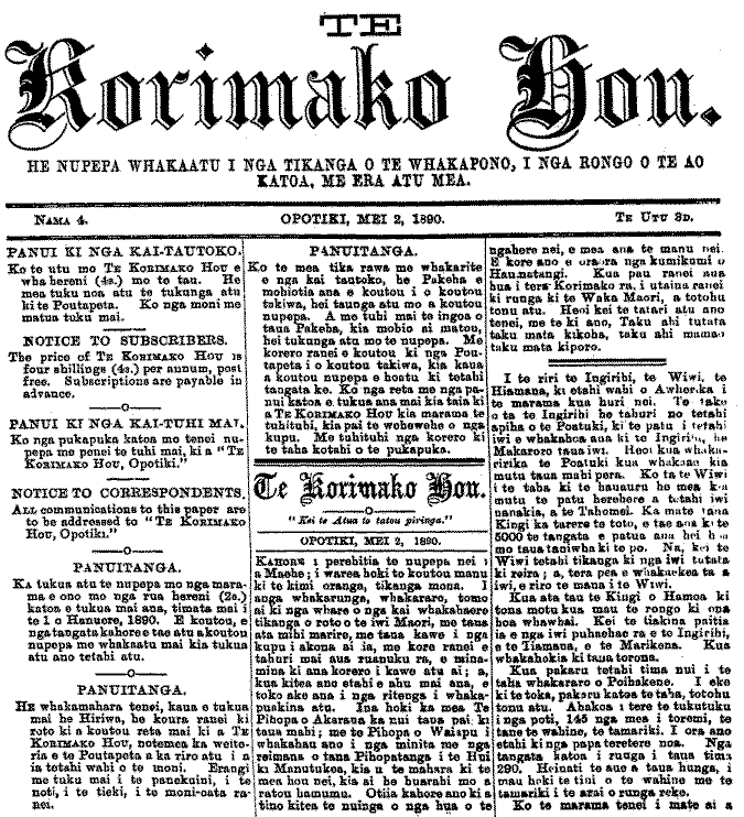 Te Korimako 1882-1890: Volume 1, Number 4. 02 May 1890 |