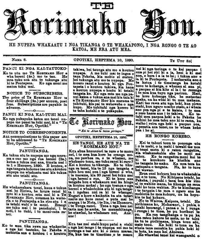 Te Korimako 1882-1890: Volume 1, Number 8. 10 September 1890 |