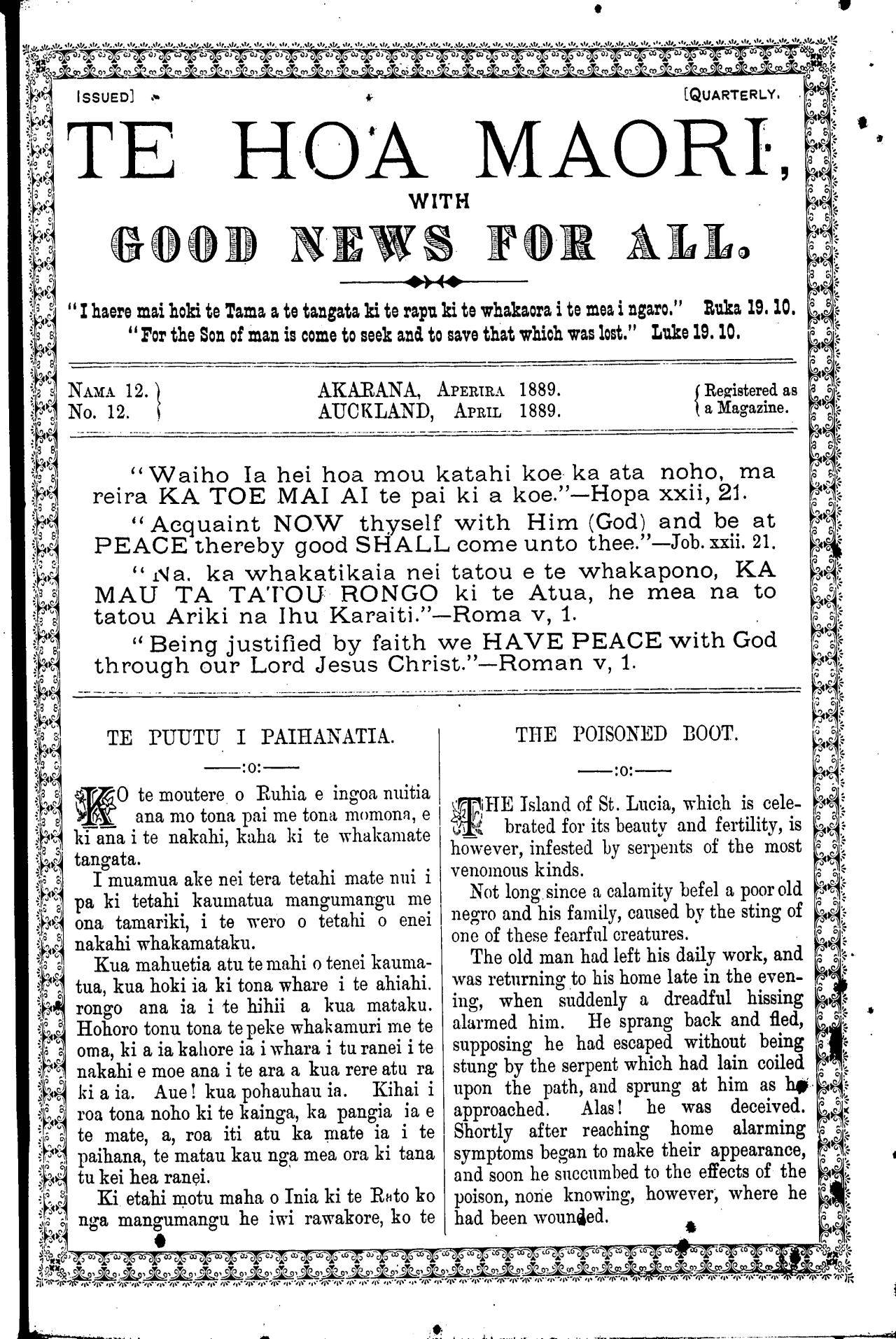 Te Hoa Maori 1885-1910: Number 12. 01 April 1889 |