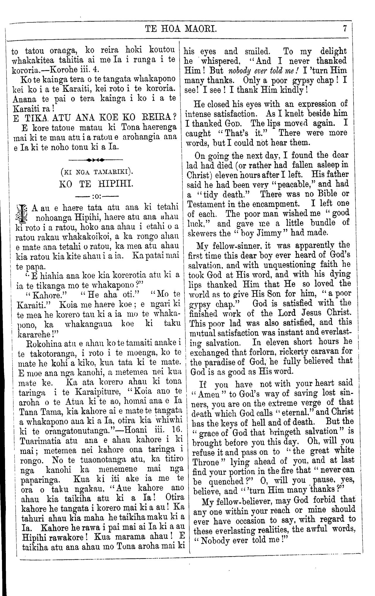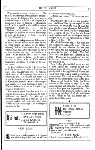 reira KA TOE MAI AI te pai ki a koe."—Hopa xxii, 21.