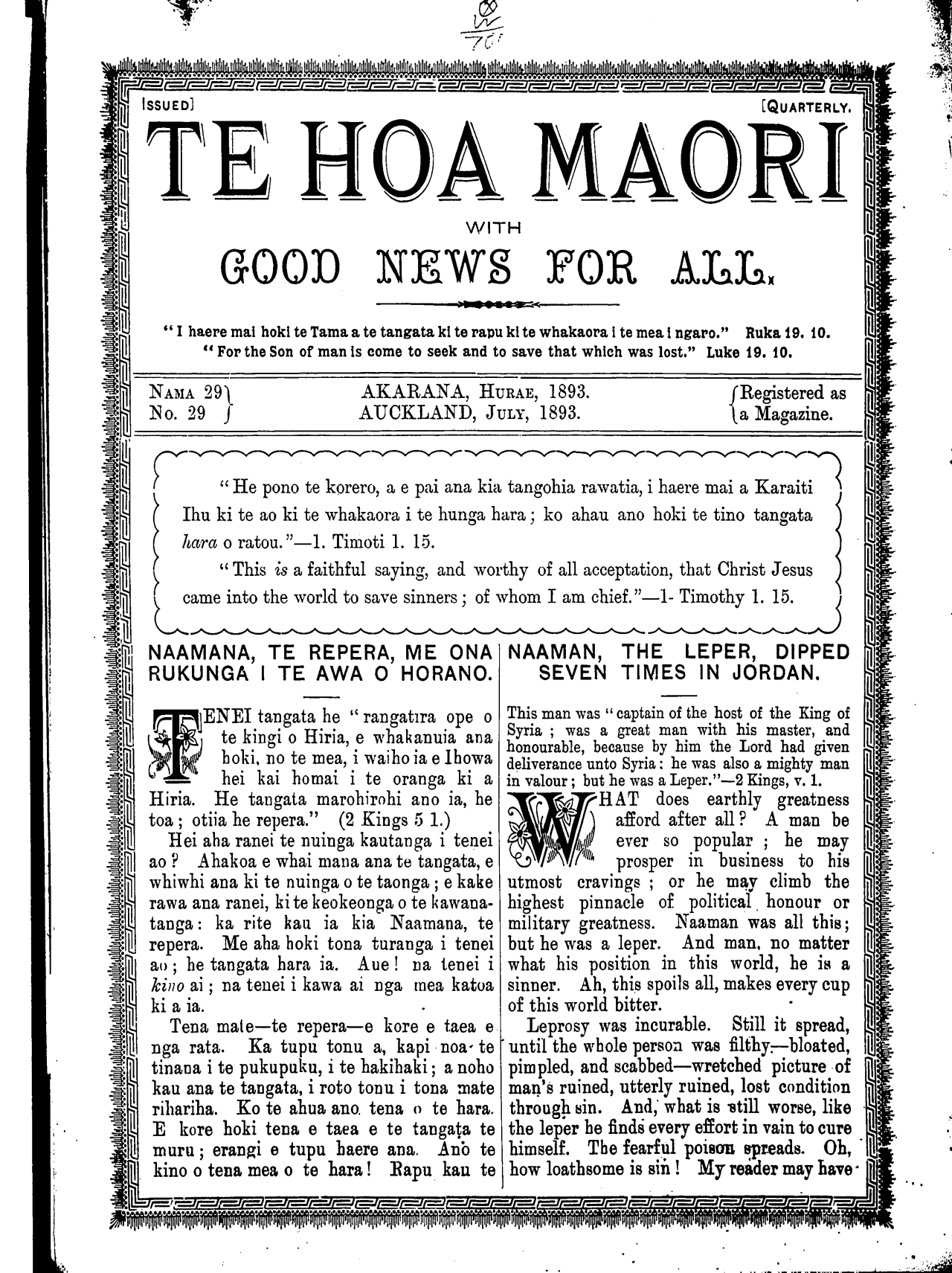 Te Hoa Maori 1885-1910: Number 29. 01 July 1893 |