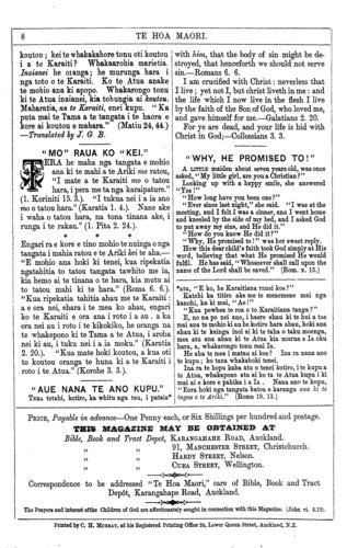 Correspondence to be addressed "Te Hoa Maori, " care of Bible Book and Tract