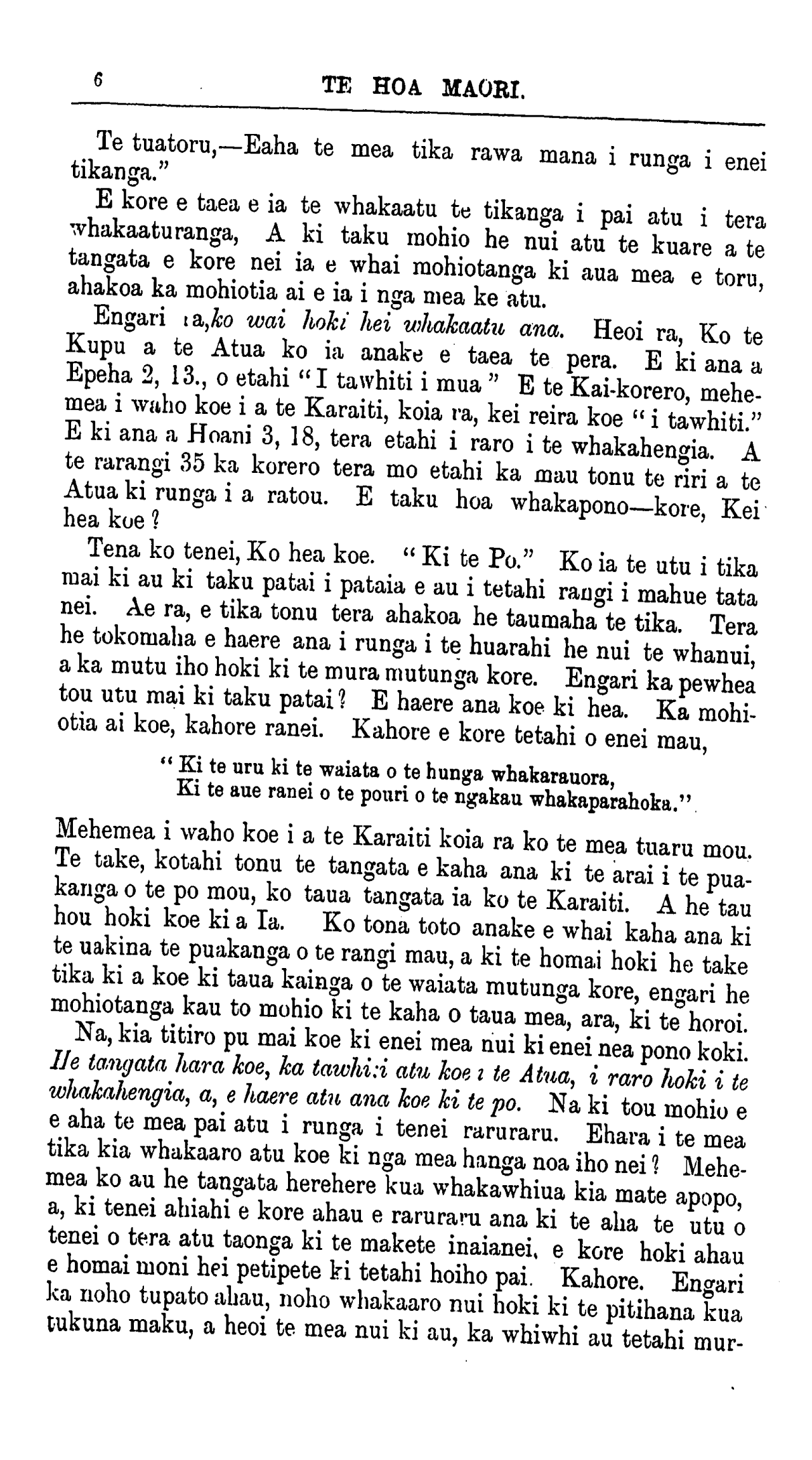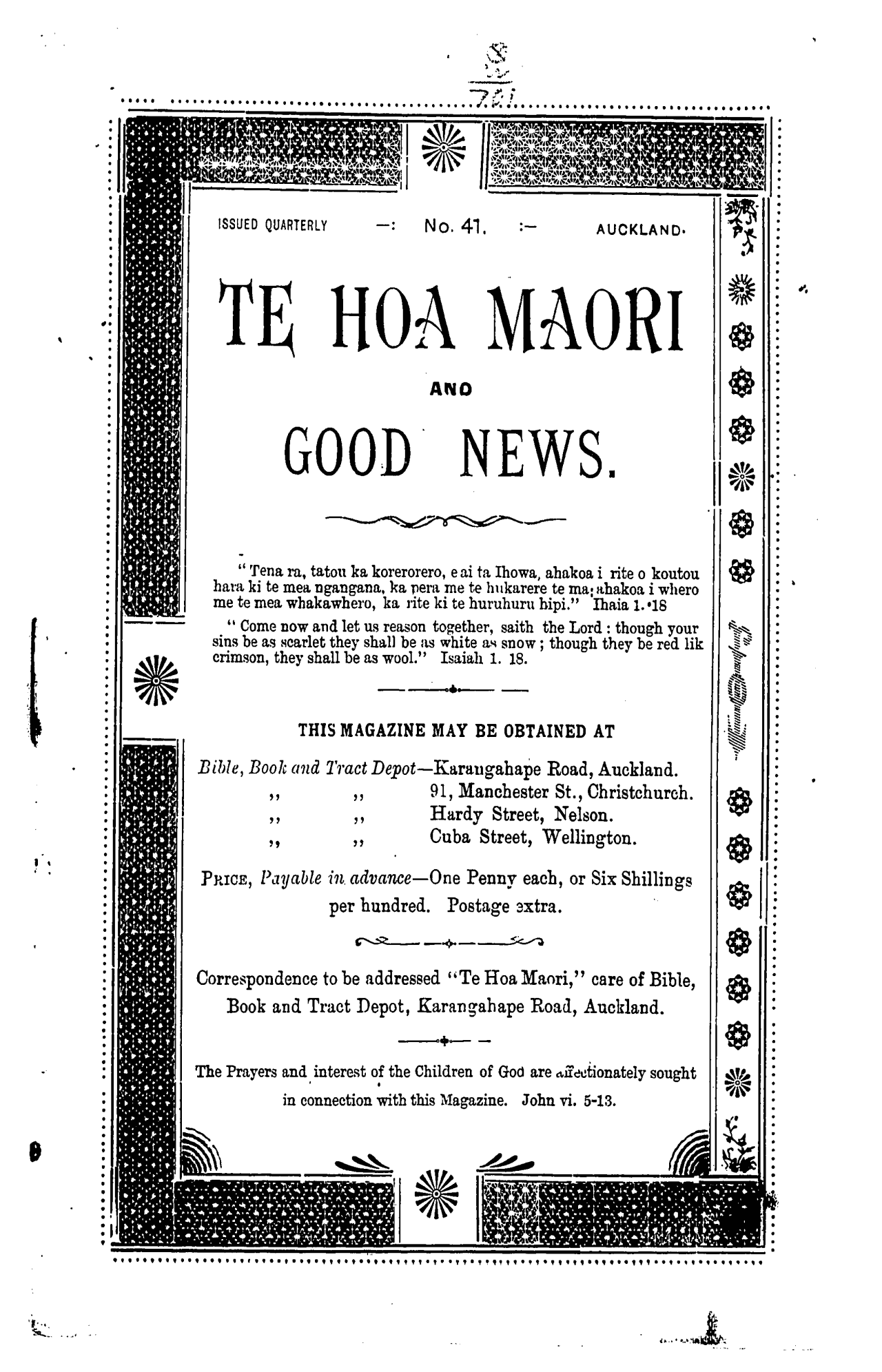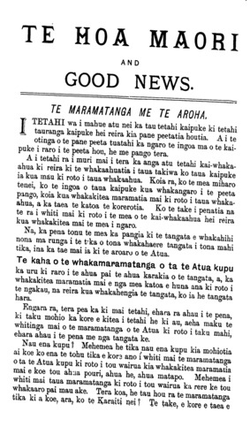 Correspondence to be addressed "Te Hoa Maori, " care of Bible,