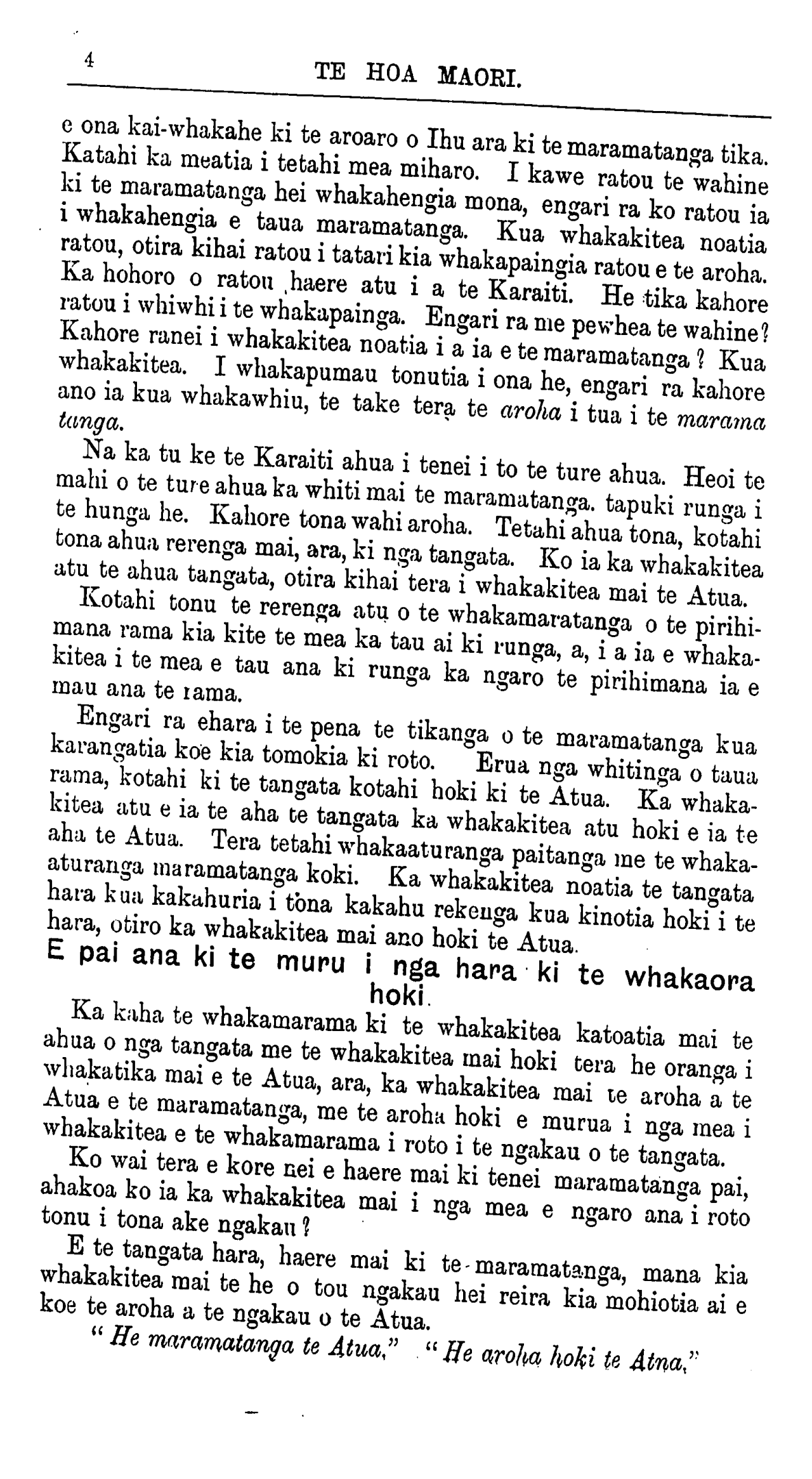 ratou te maramatanga. Ka wehe ahau ki te whakaaro atu ki