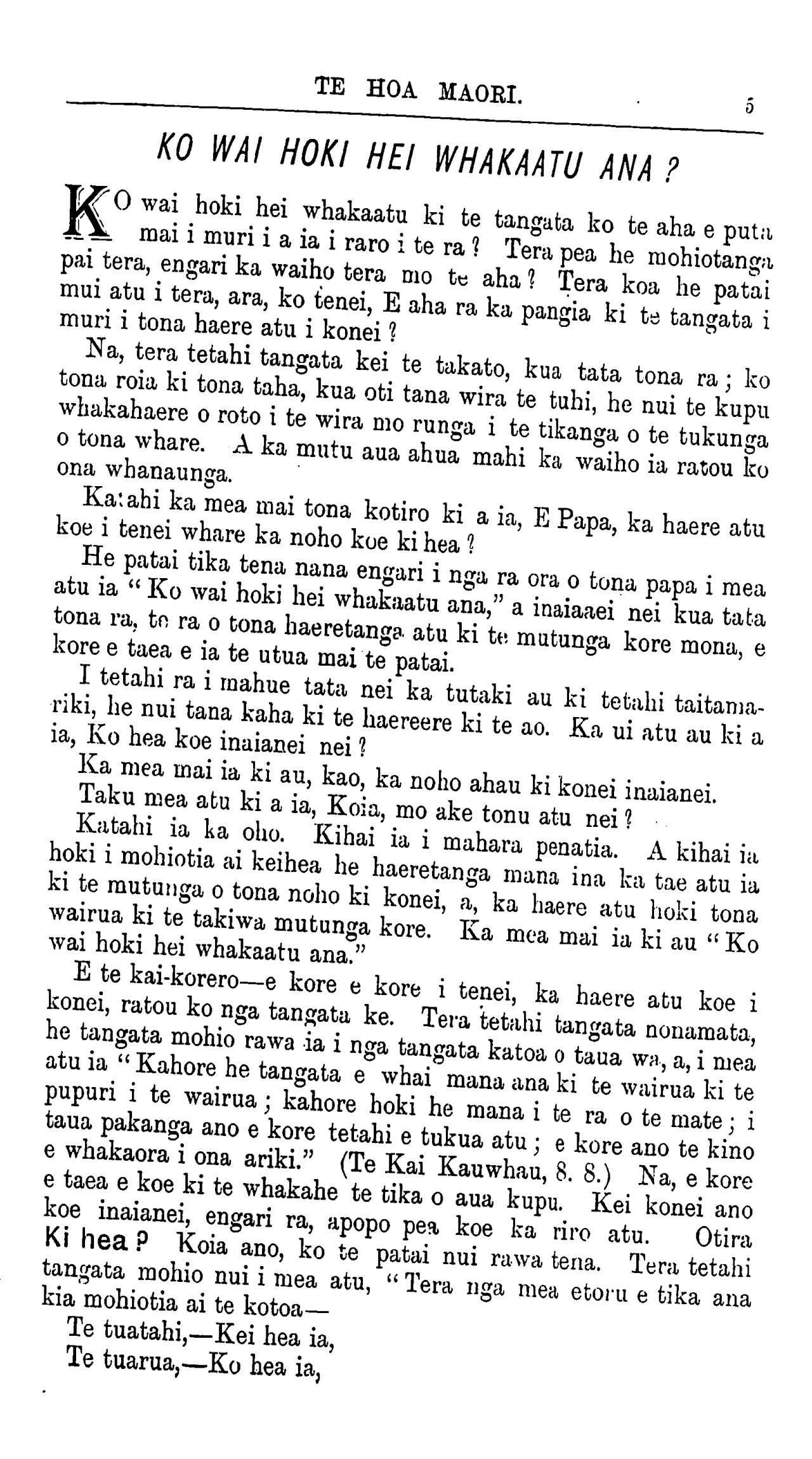I TETAHI wa i mahue atu nei ka tau tetahi kaipuke ki tetahi
