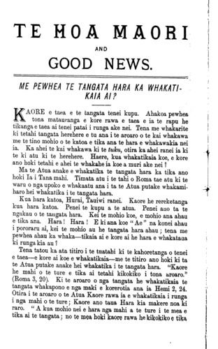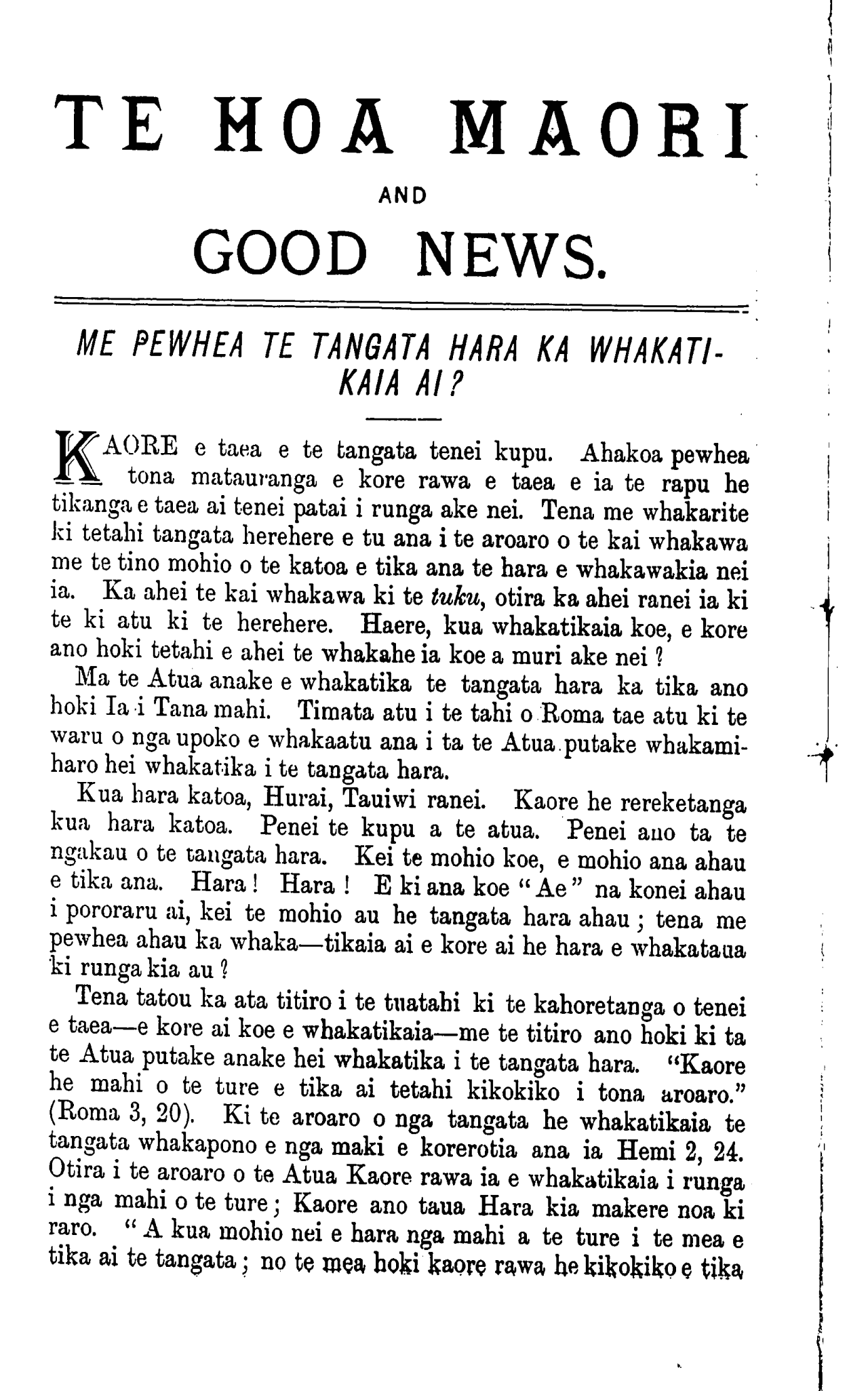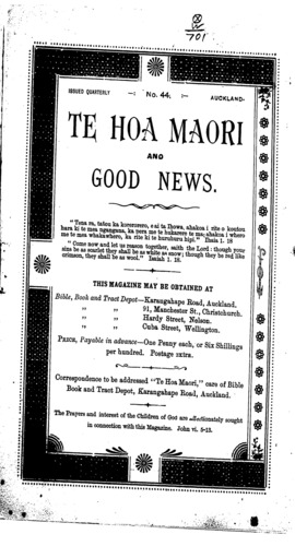 Correspondence to be addressed "Te Hoa Maori, " care of Bible