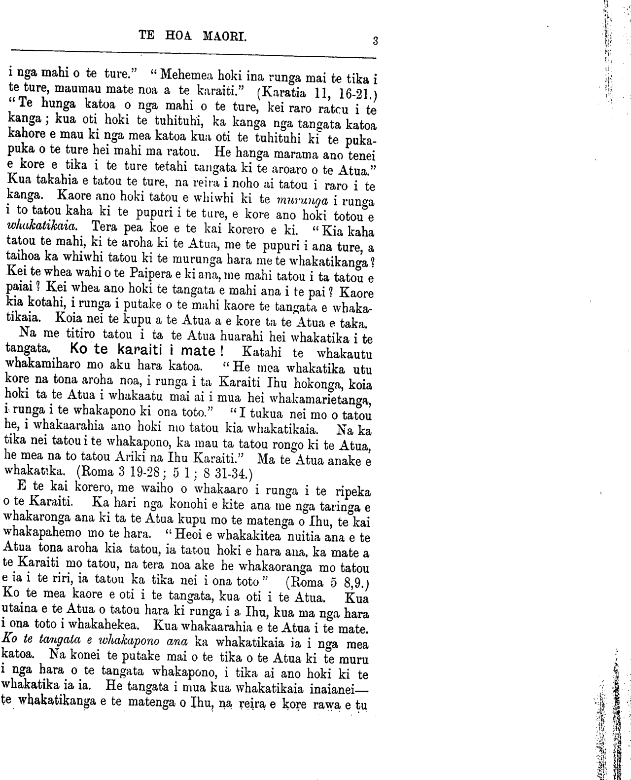 te ture, maumau mate noa a te karaiti. " (Karatia 11, 16-21. )