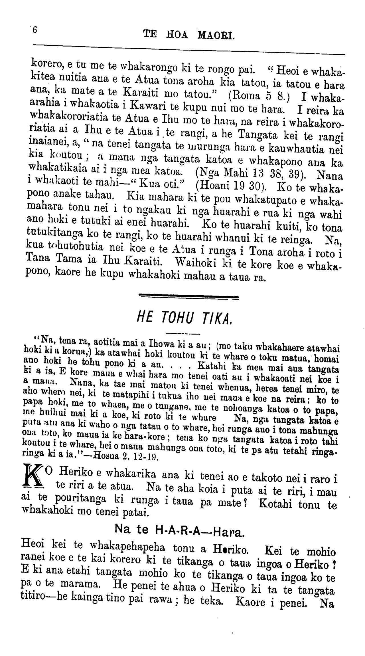 e tika ana. Hara! Hara ! E ki ana koe " Ae " na konei ahau