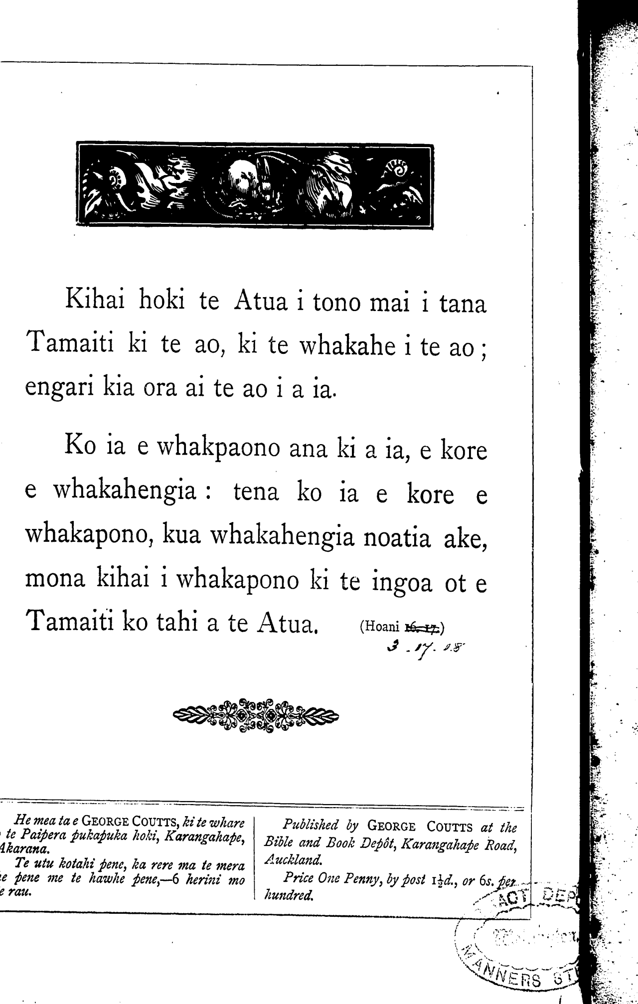 Tamaiti ko tahi a te Atua, (Hoani 16,17)
