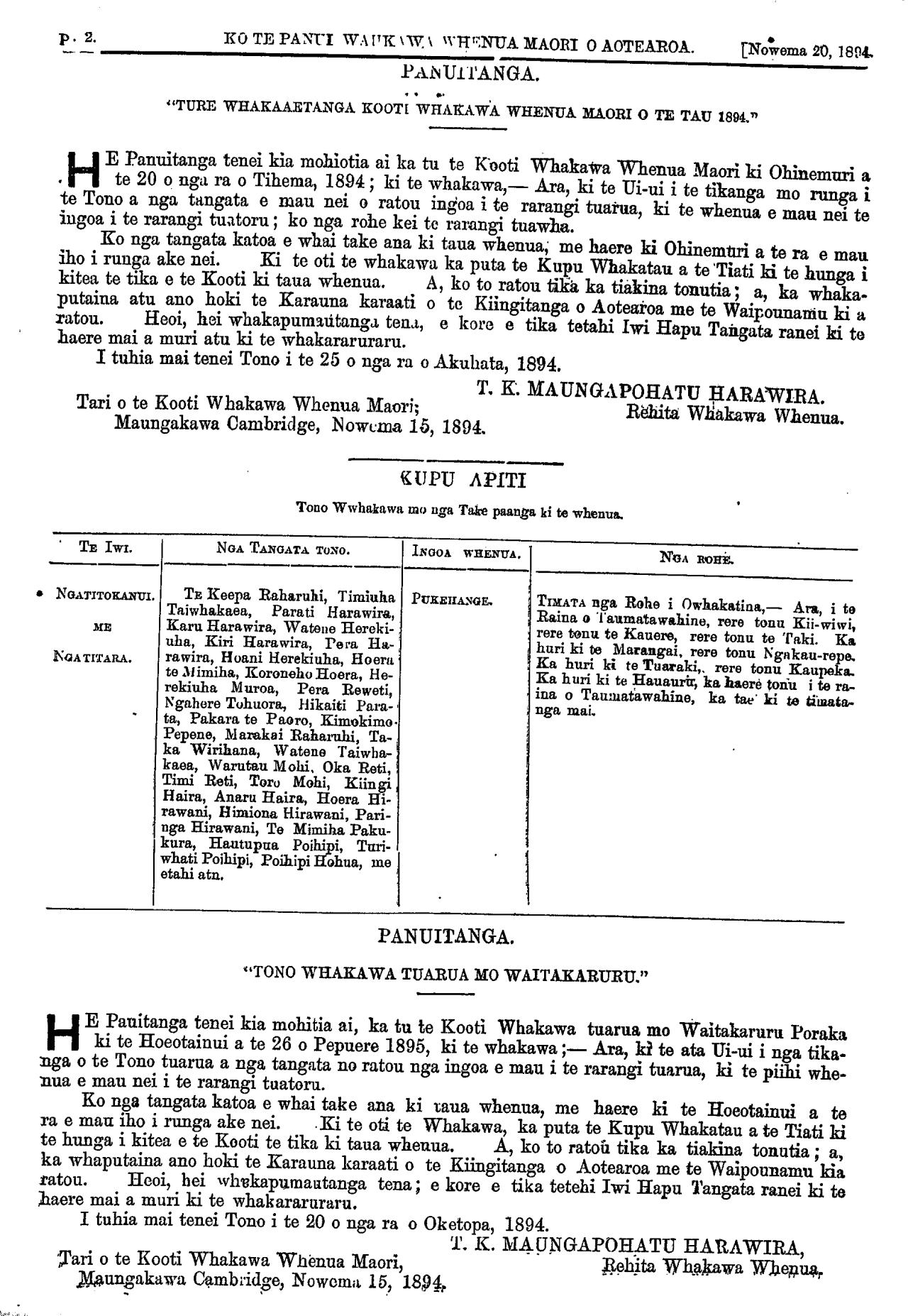 p. 2. \_\_\_\_\_\_\_\_\_\_KO TE PANUI WHAKAWA WHENUA MAORI O AOTEAROA. [Nowema 20, 1894