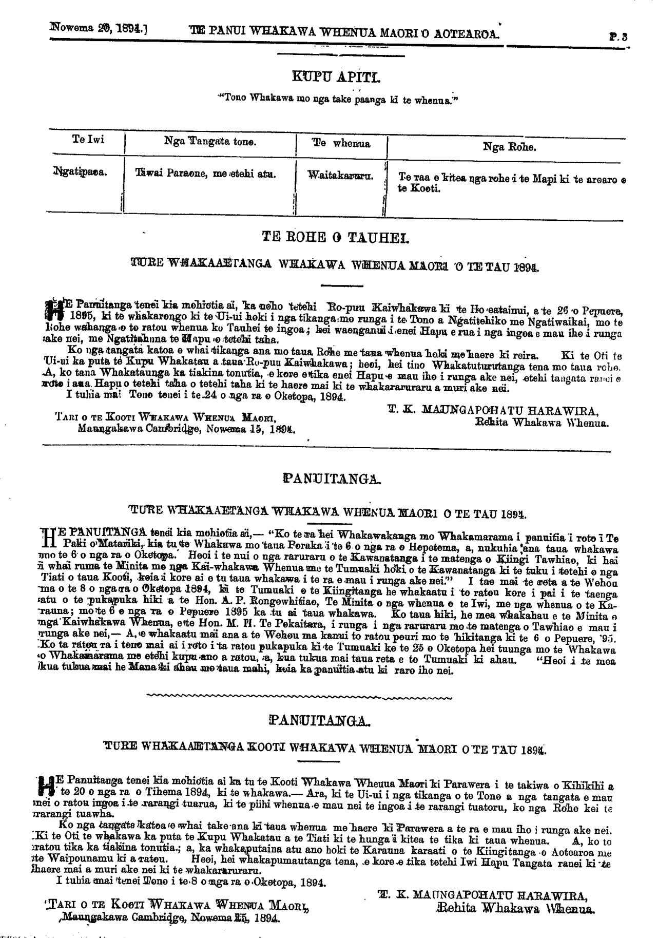 TE PANUI WHAKAWA WHENUA MAORI O AOTEAROA: [Nowema 20, 1894:,