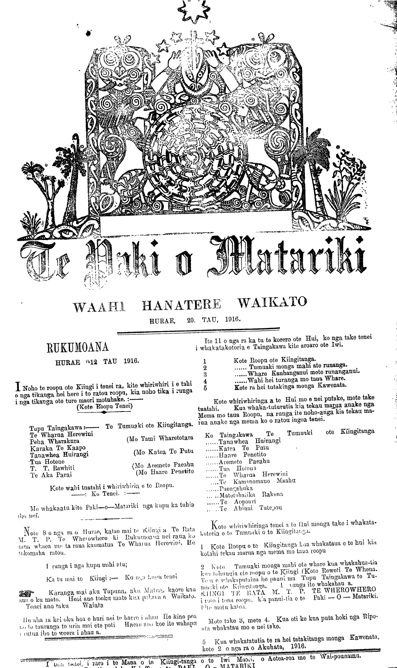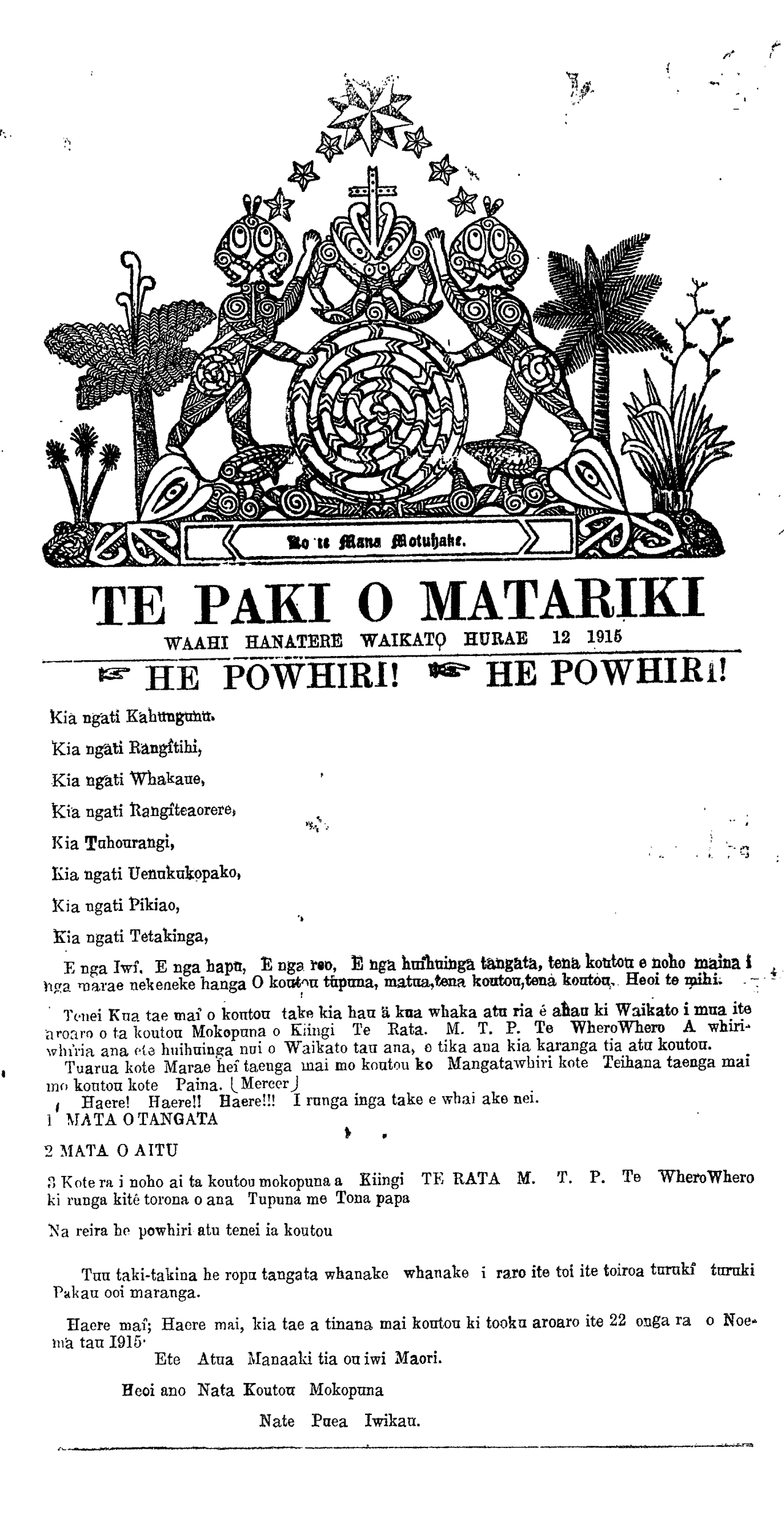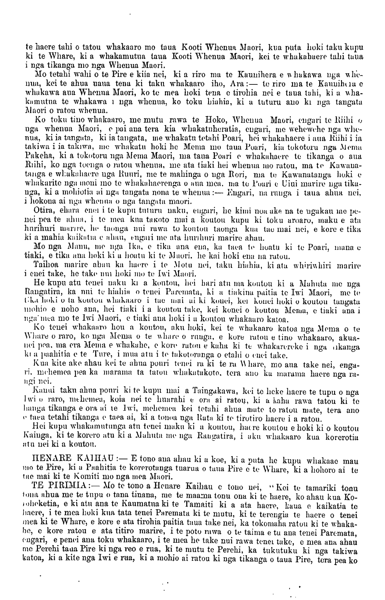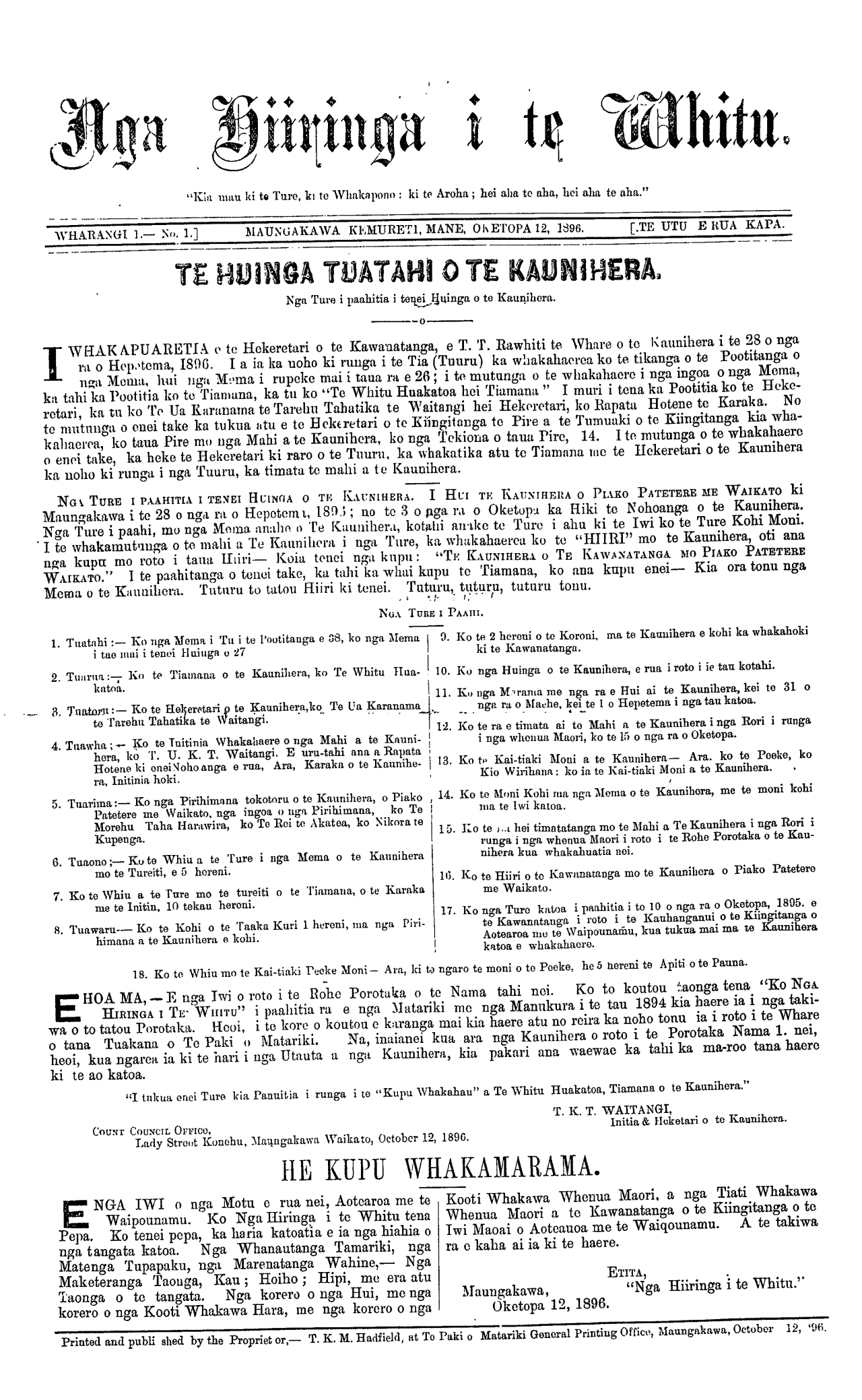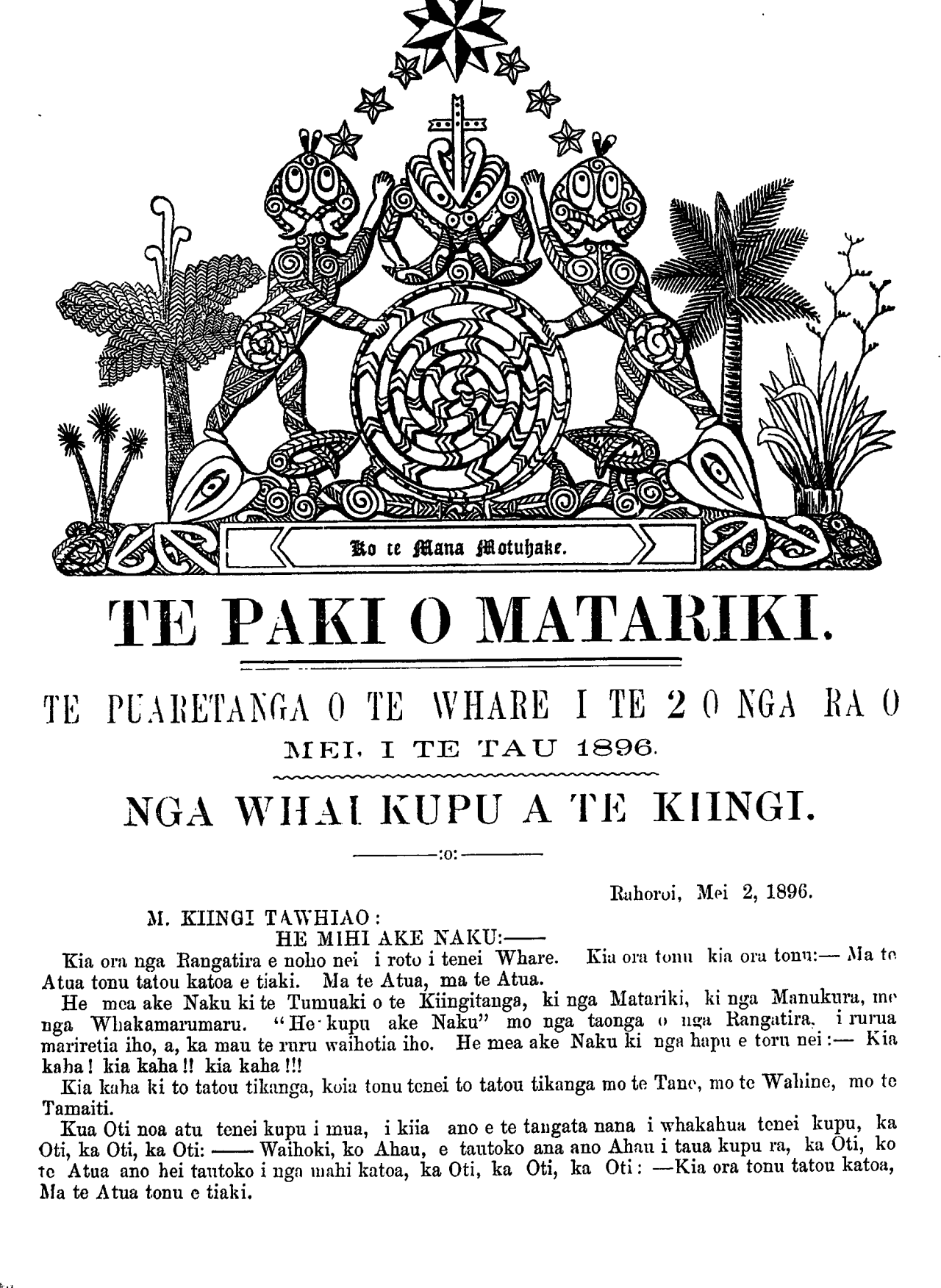 He Panuitanga tenei ki nga Iwi, ki nga Hapu ki nga Huihuinga, tangata