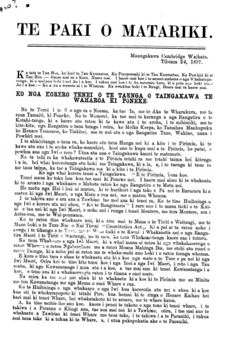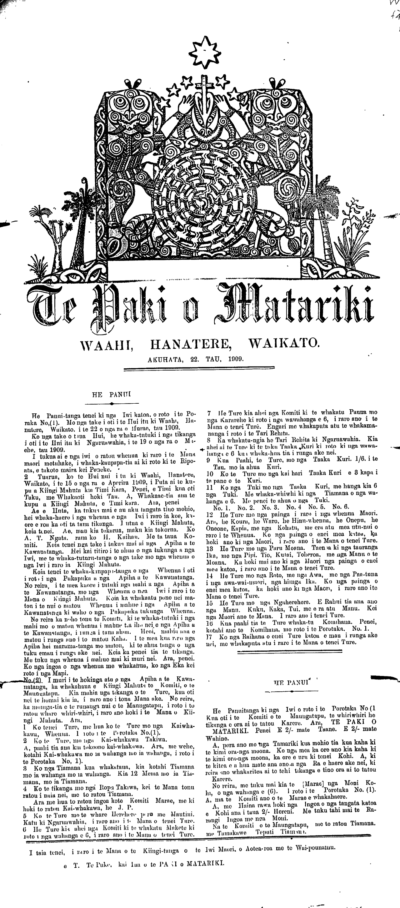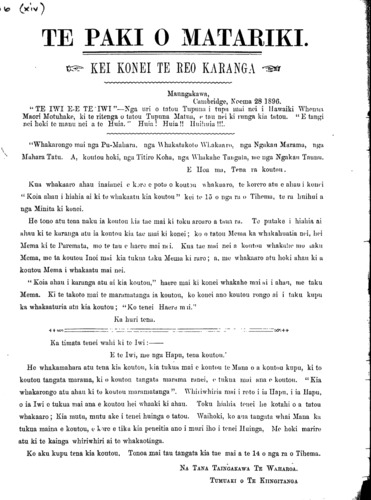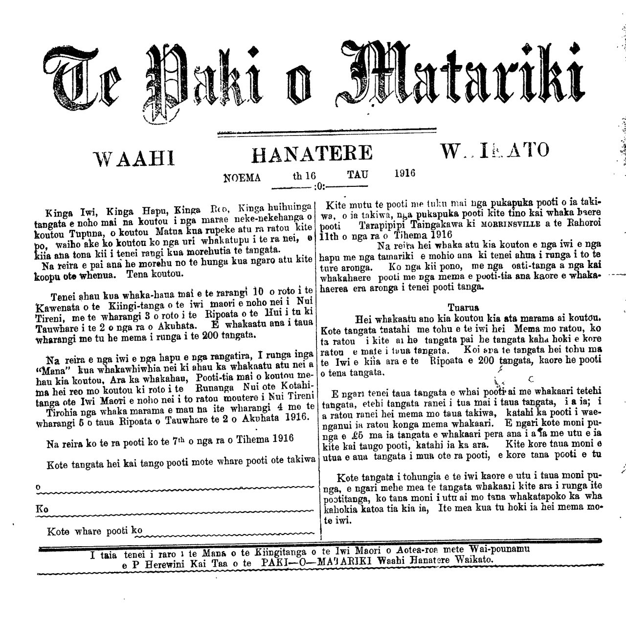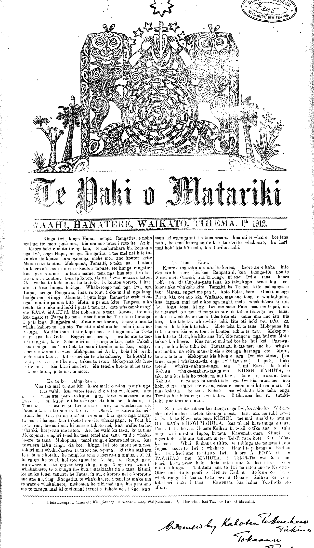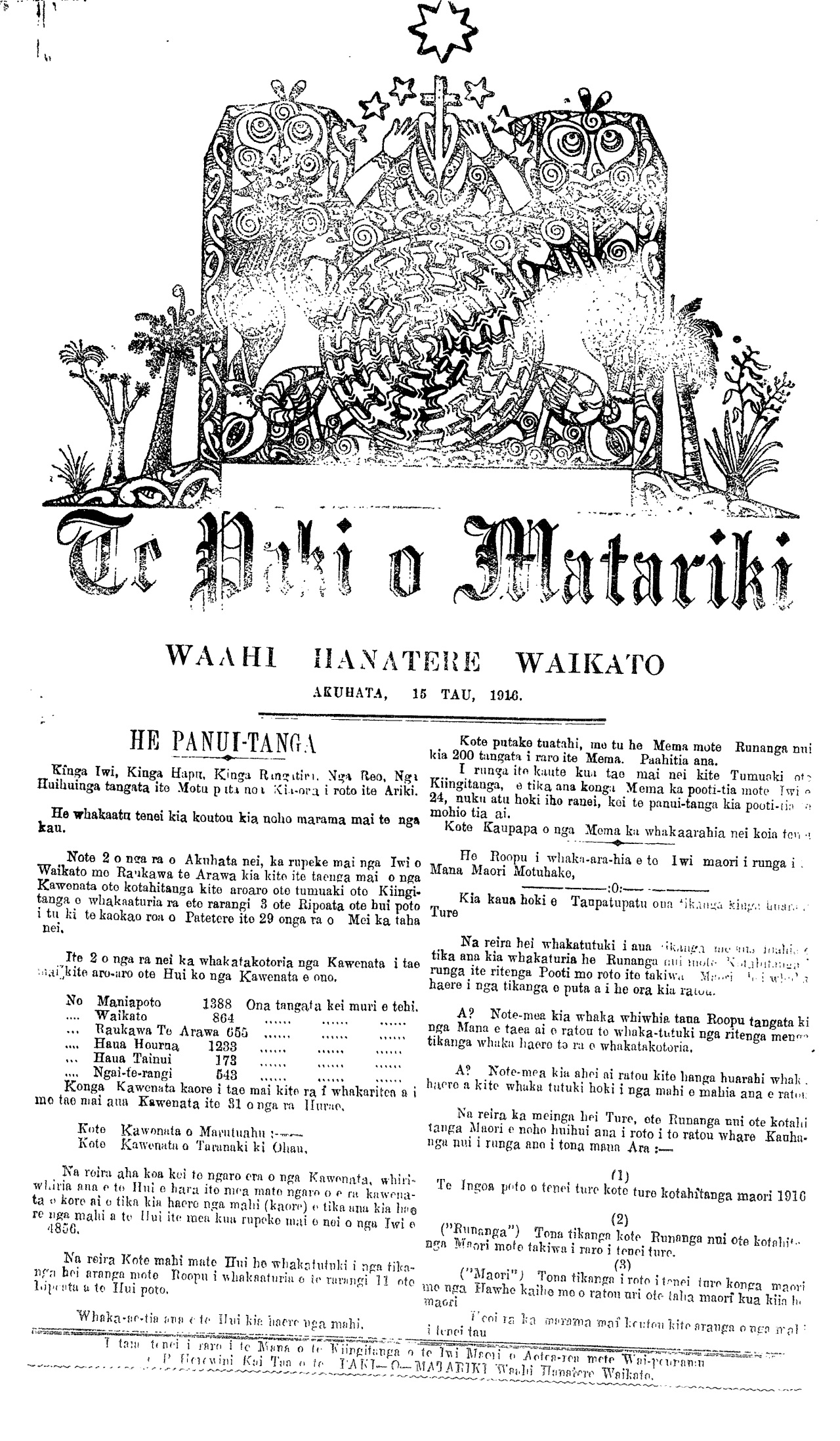 He Panuitanga tenei ki nga Iwi, ki nga Hapu ki nga Huihuinga, tangata