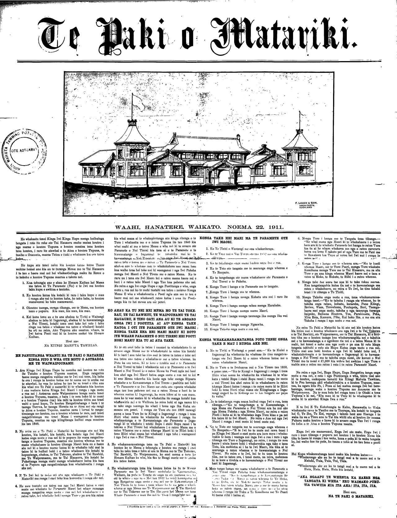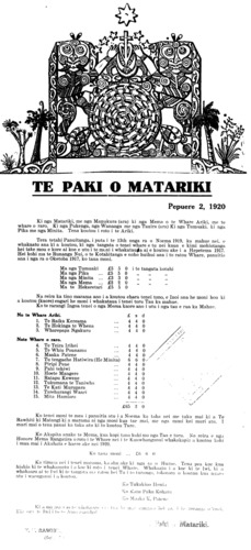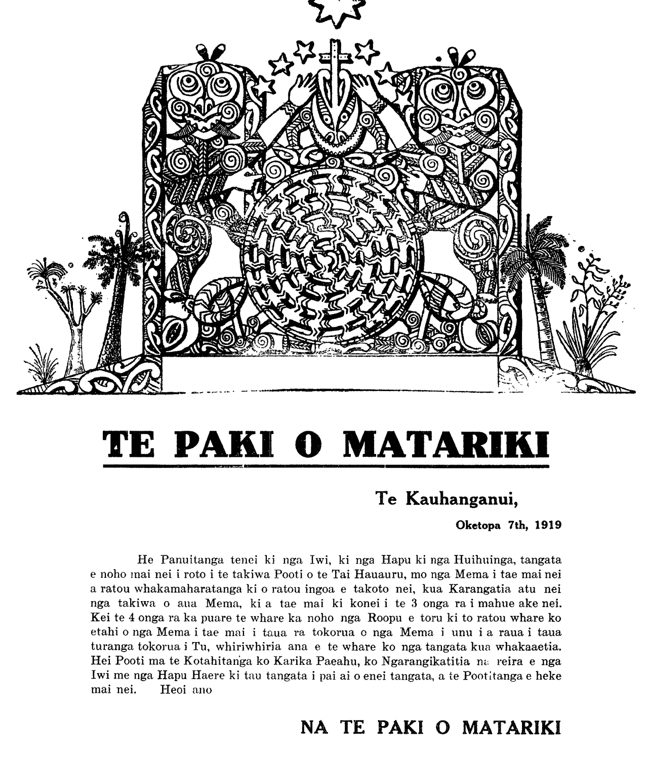 Tera tetahi Panuitanga, i puta i te 13th onga ra o Noema 1919, ka mahue nei, e