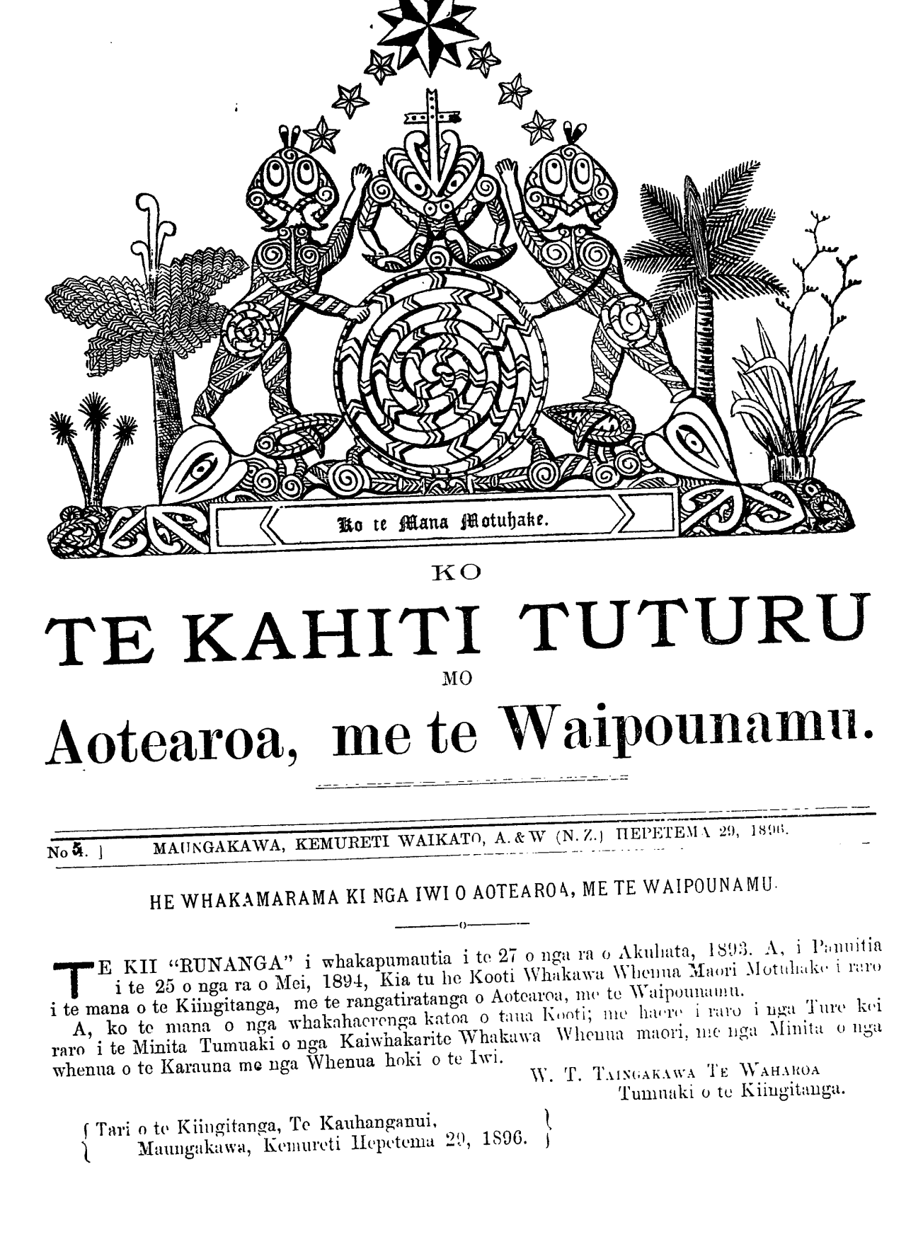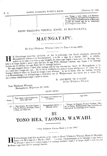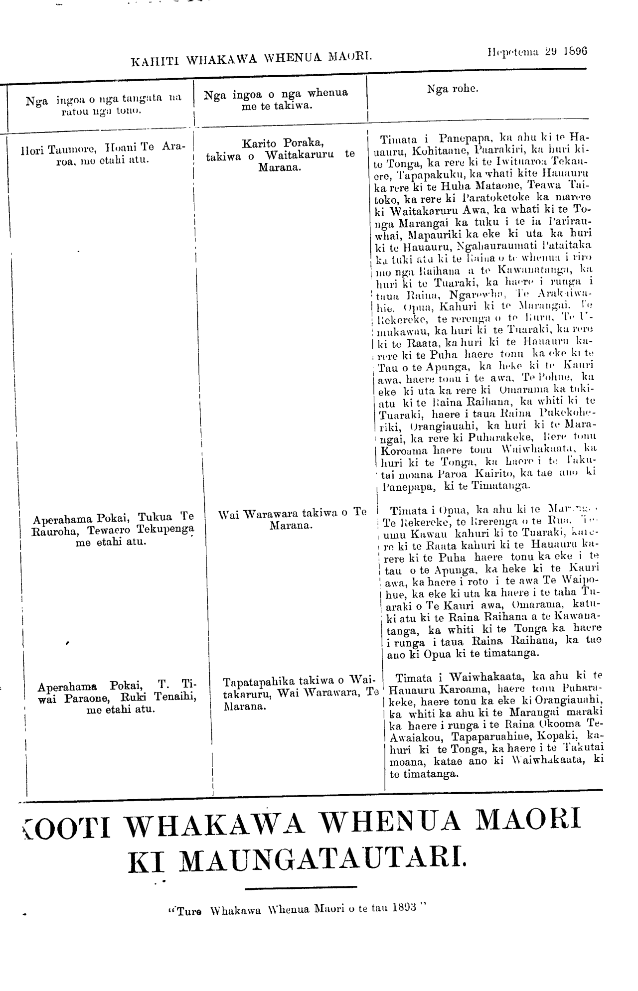 TE KAUHANGANUI MAUNGAKAWA HEPETEMA 29. 1896.
