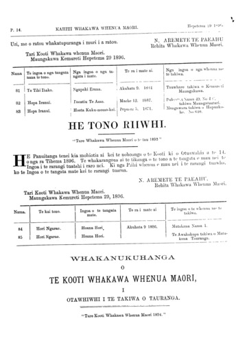 Na, He whakaatu tena kia koutou, —Ko NGA PUKAPUKA TONO KOOTI WHAKAWA WHENUA Maori,