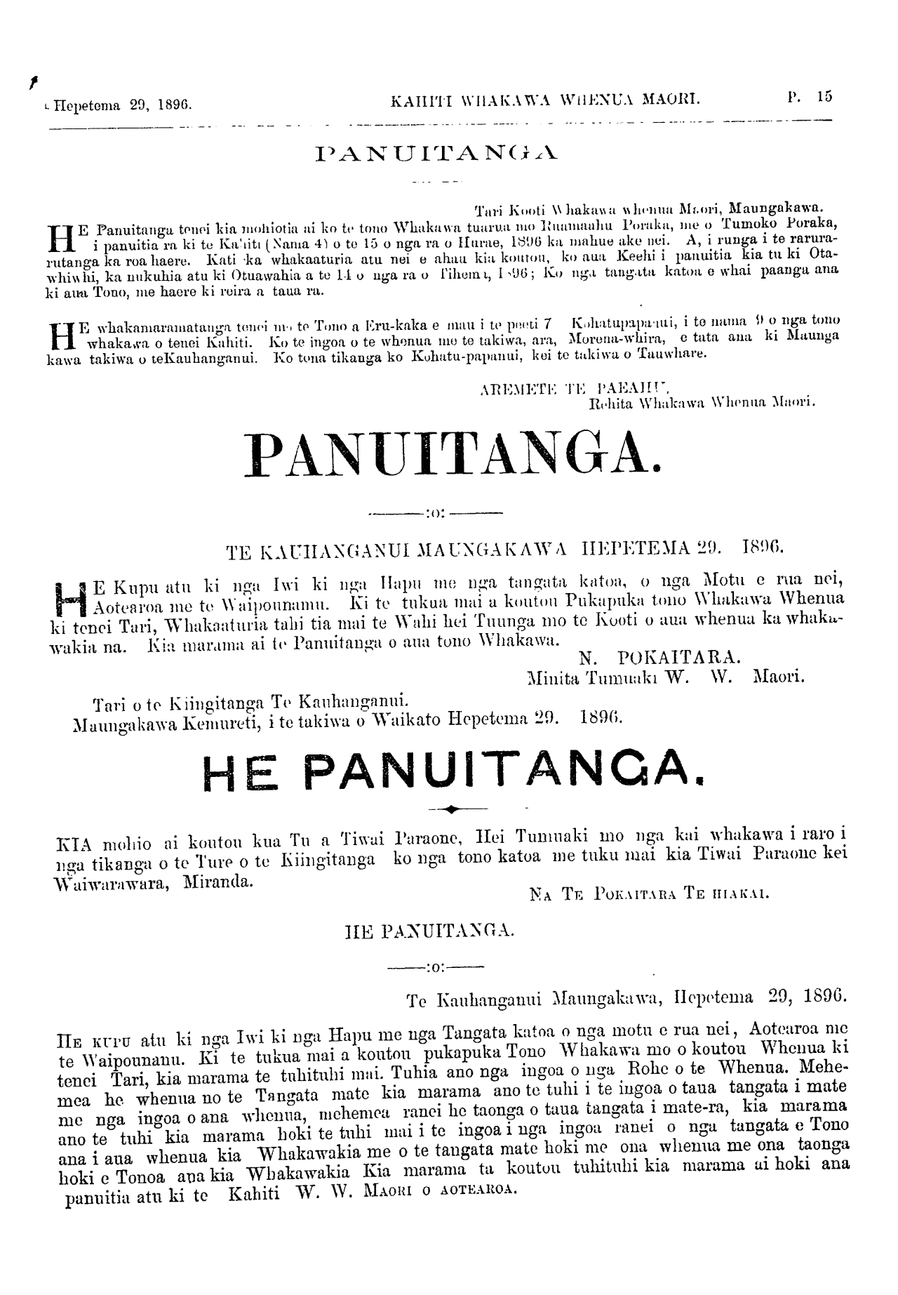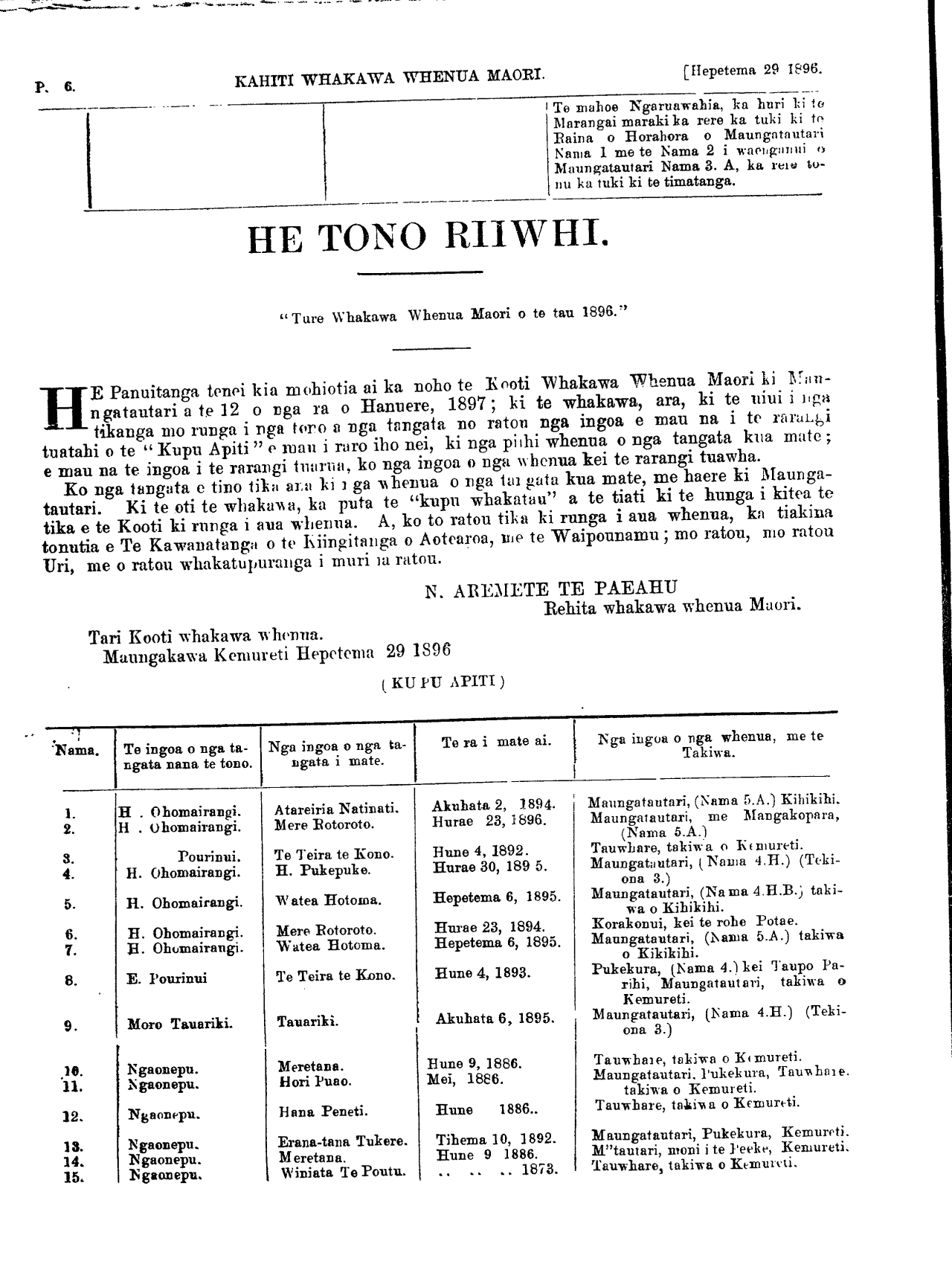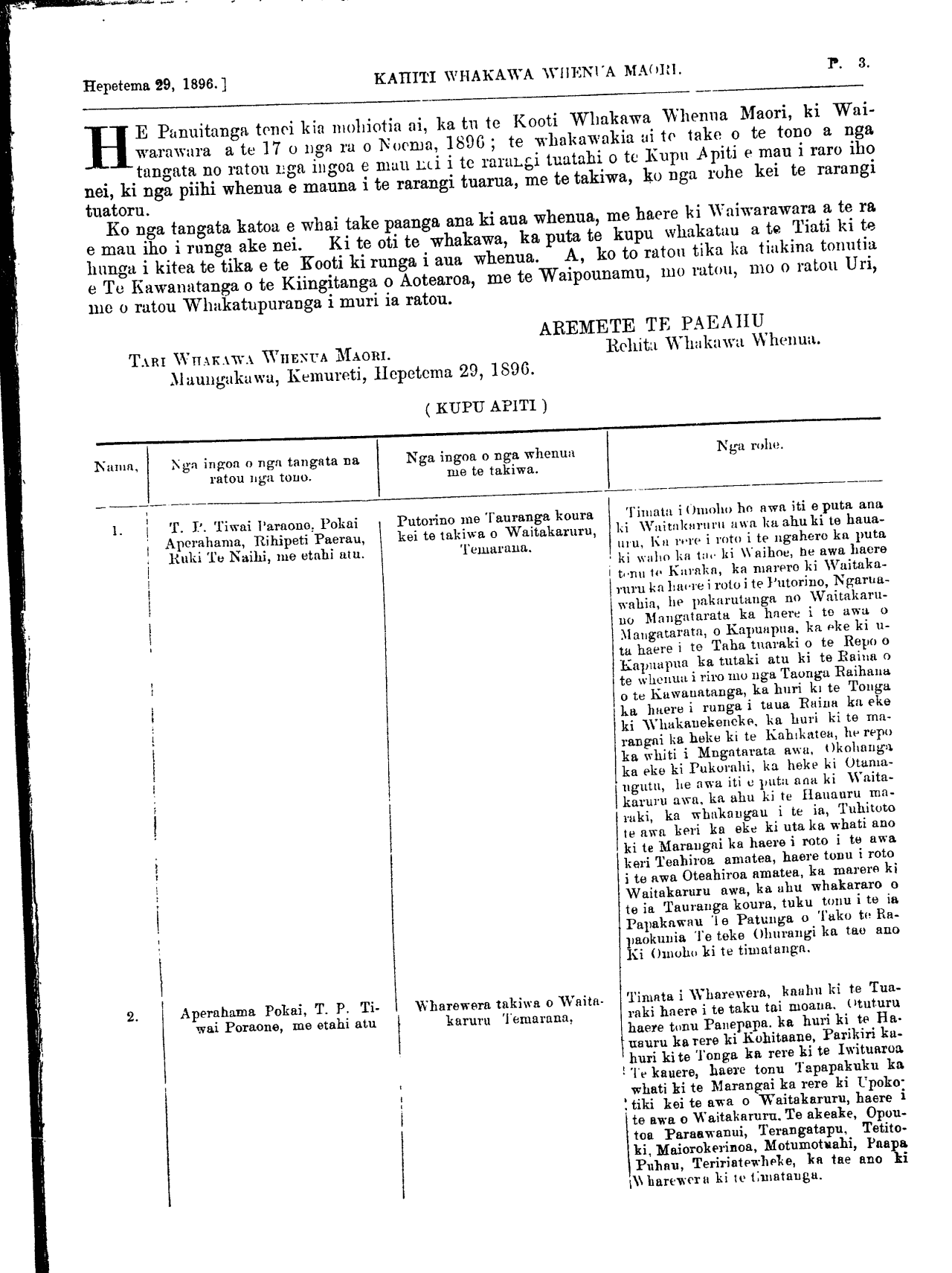 Hepetema 29, 1896. KAHITI WHAKAWA WHENUA MAORI. P. 15