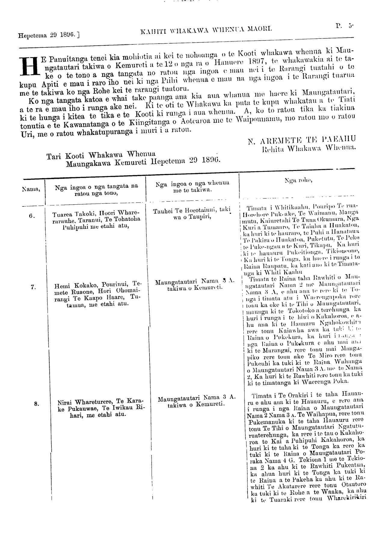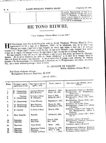 P 6. KAHITI WHAKAWA WHENUA MAOEI. [Hepetema 29 1896.