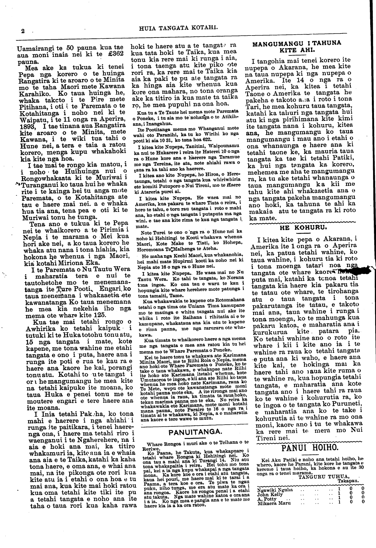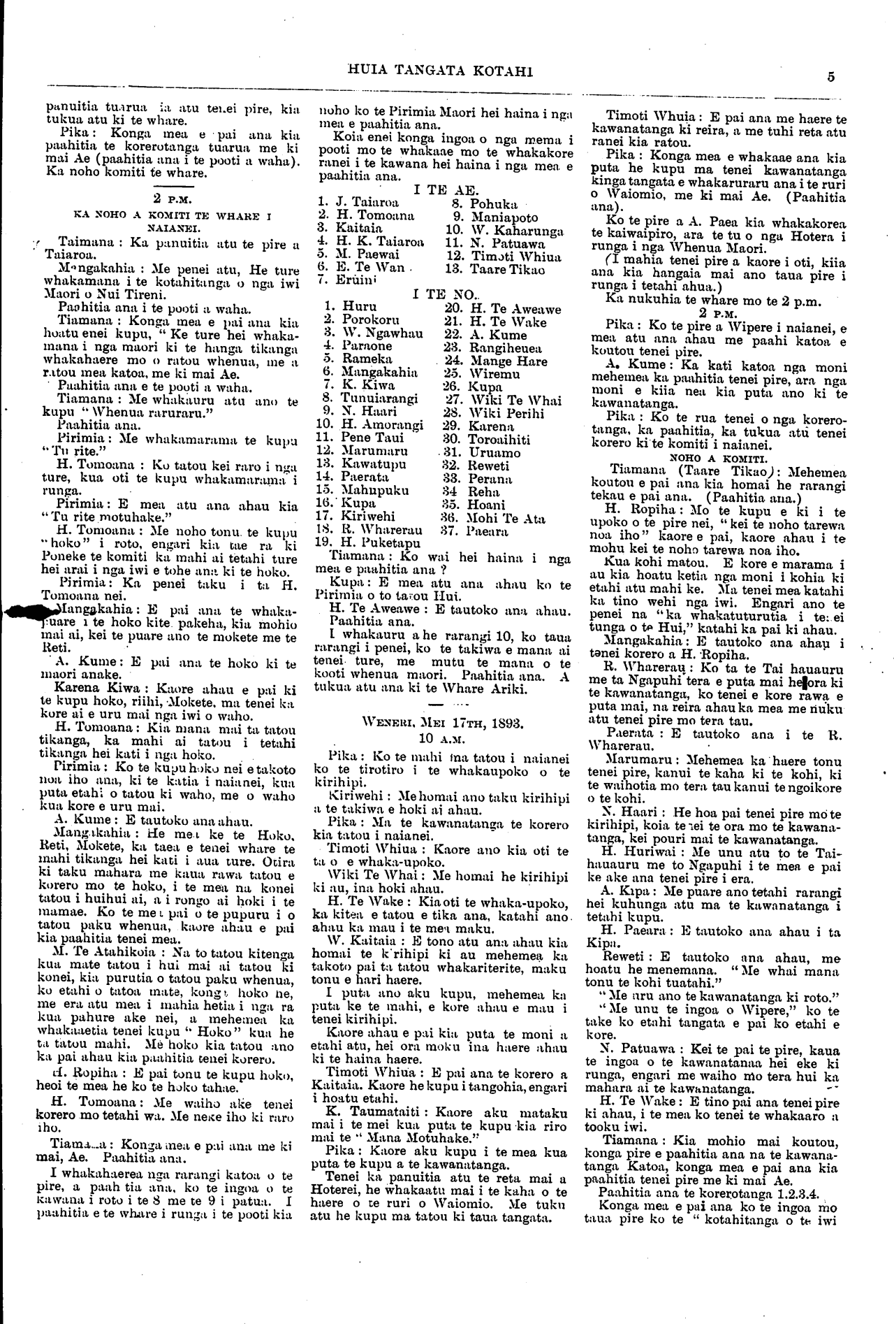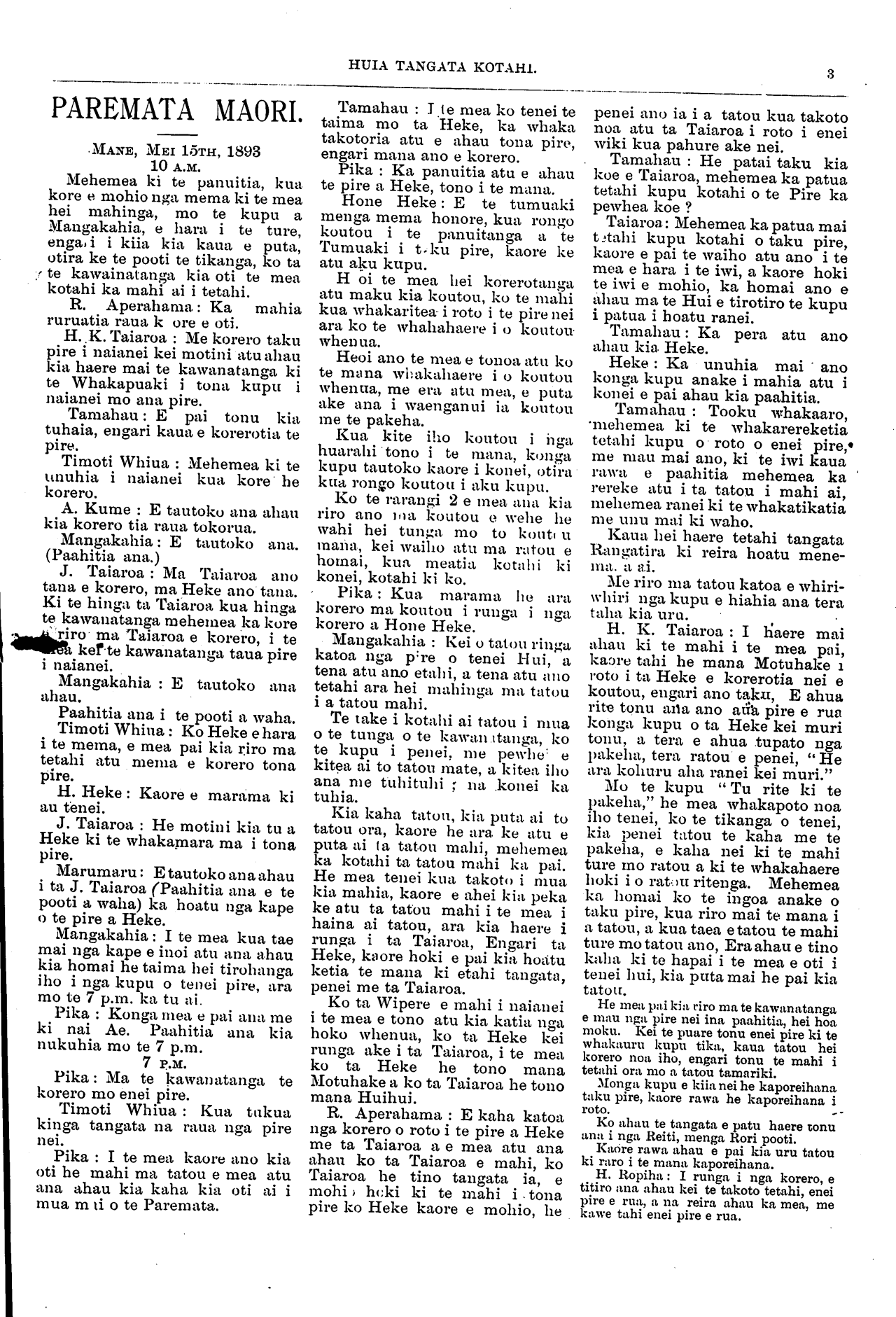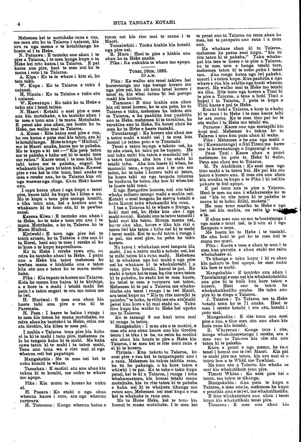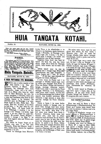 Huia Tangata Kotahi 1893-1895: Volume 1, Number 13. 24 June 1893 |