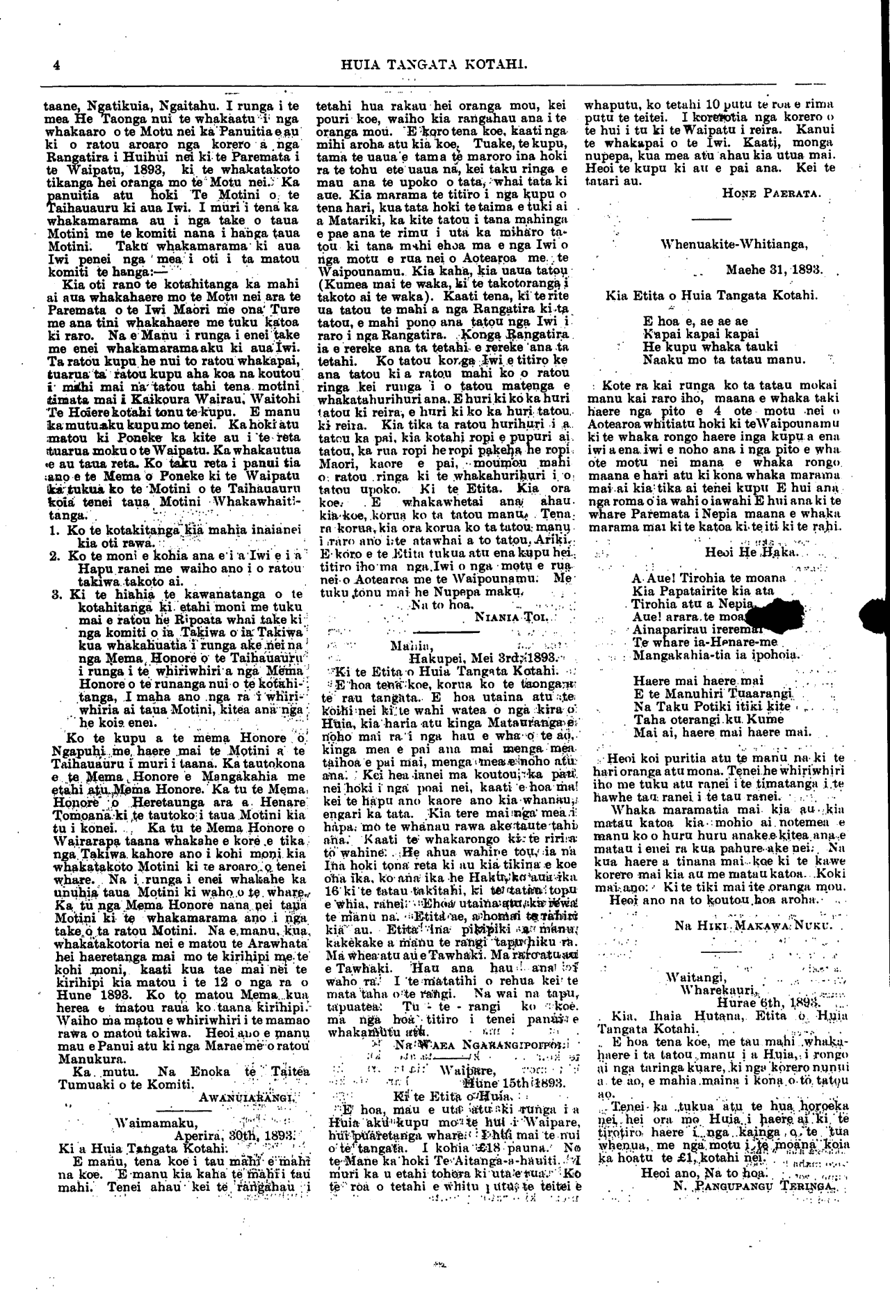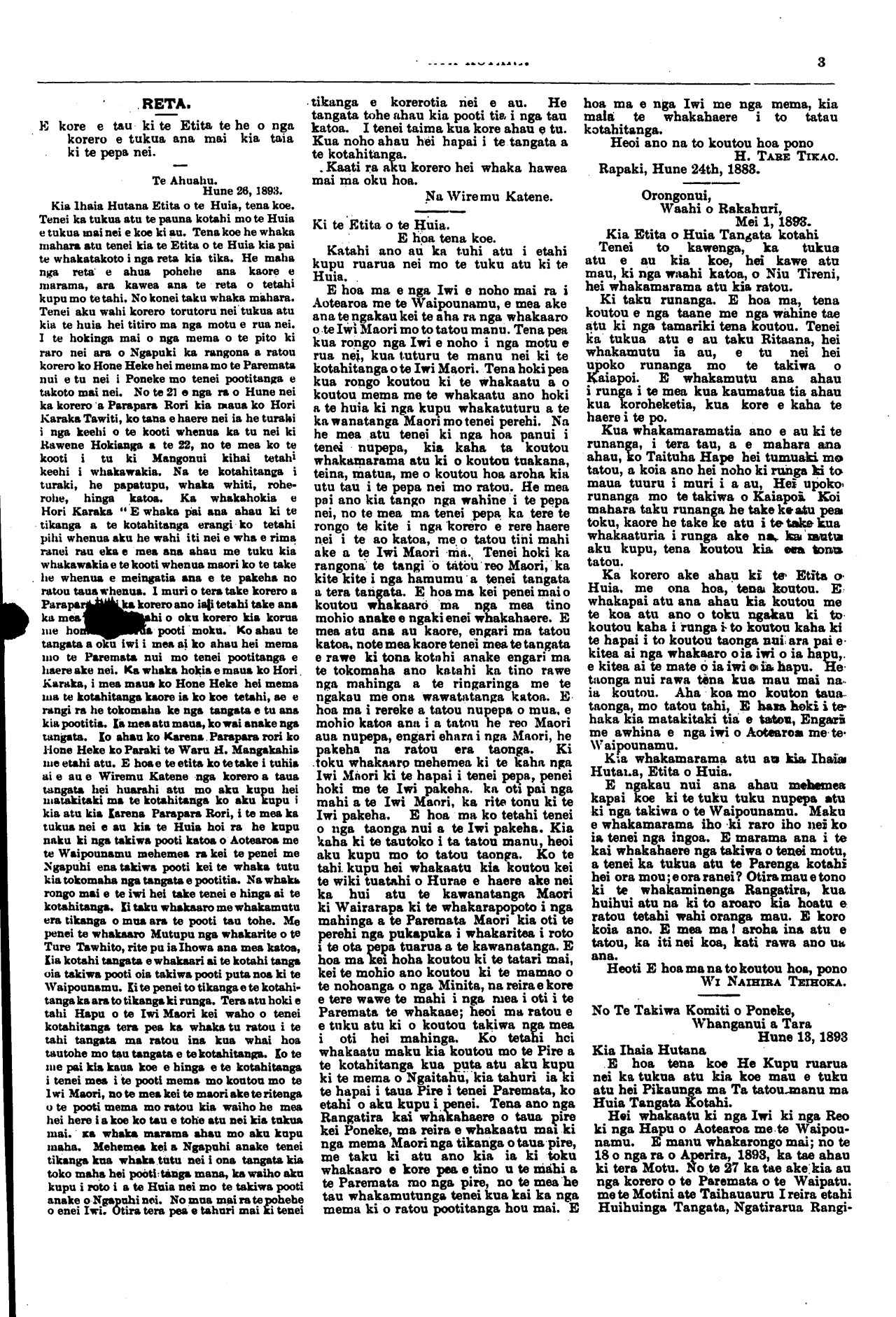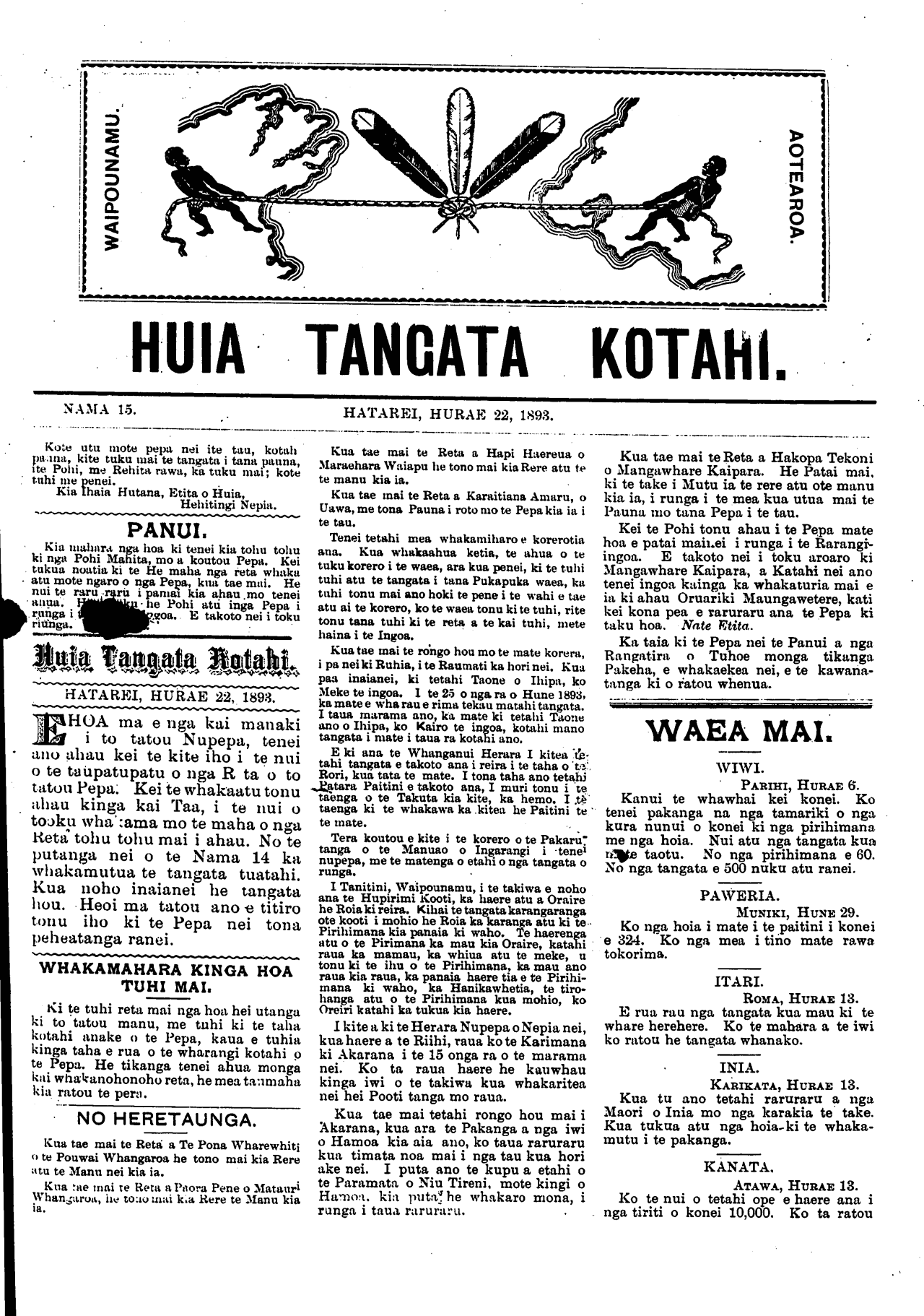 Huia Tangata Kotahi 1893-1895: Volume 1, Number 15. 22 July 1893 |