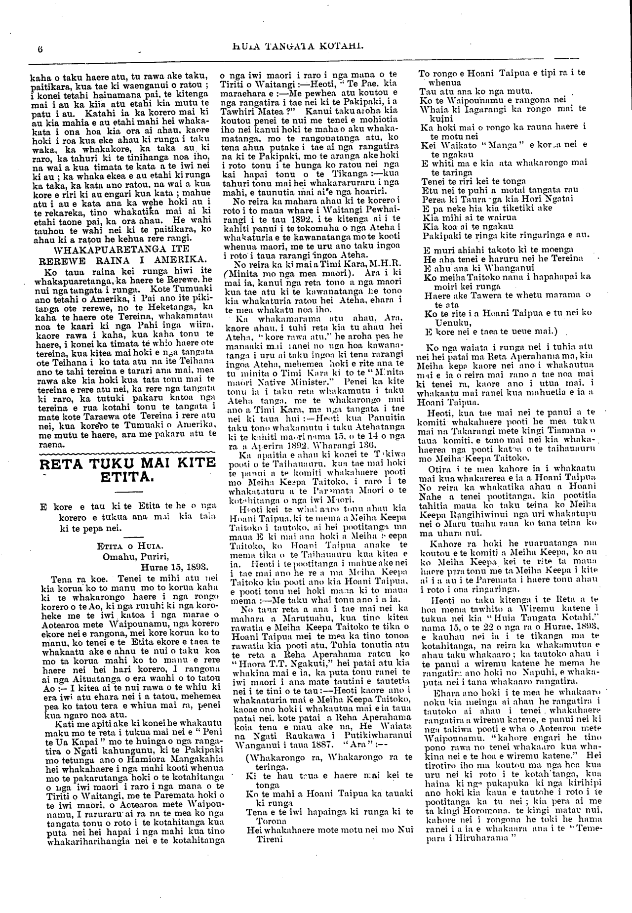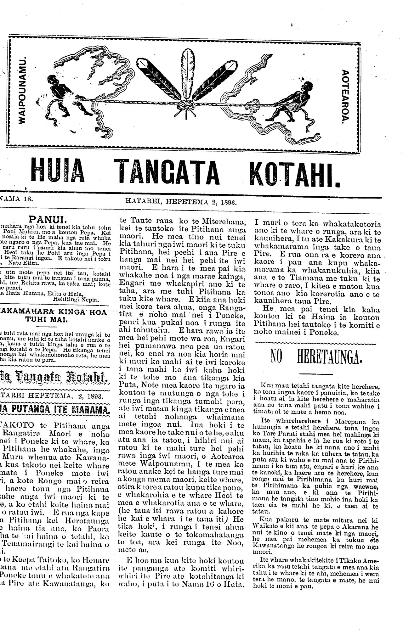 Huia Tangata Kotahi 1893-1895: Volume 1, Number 18. 02 September 1893 |
