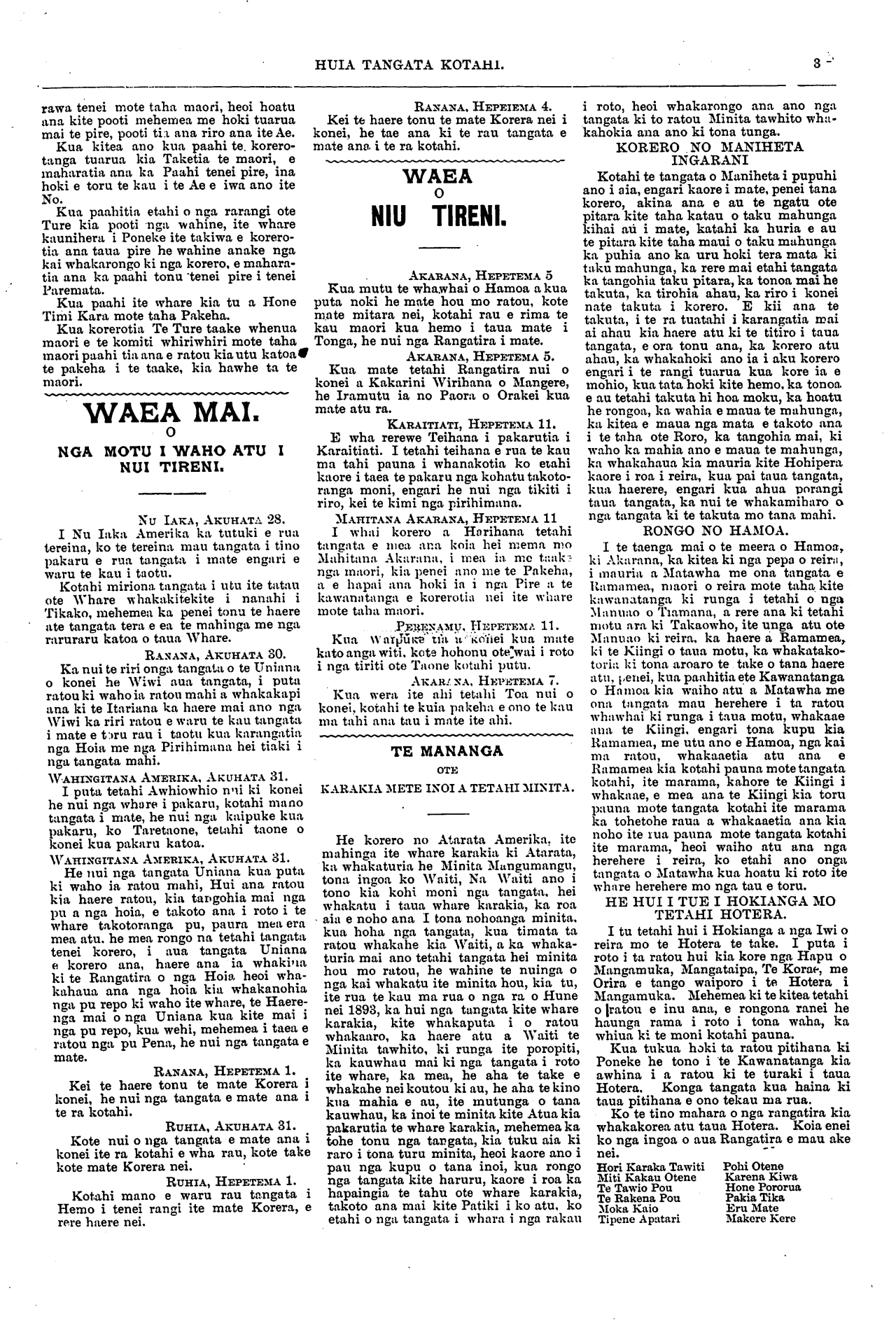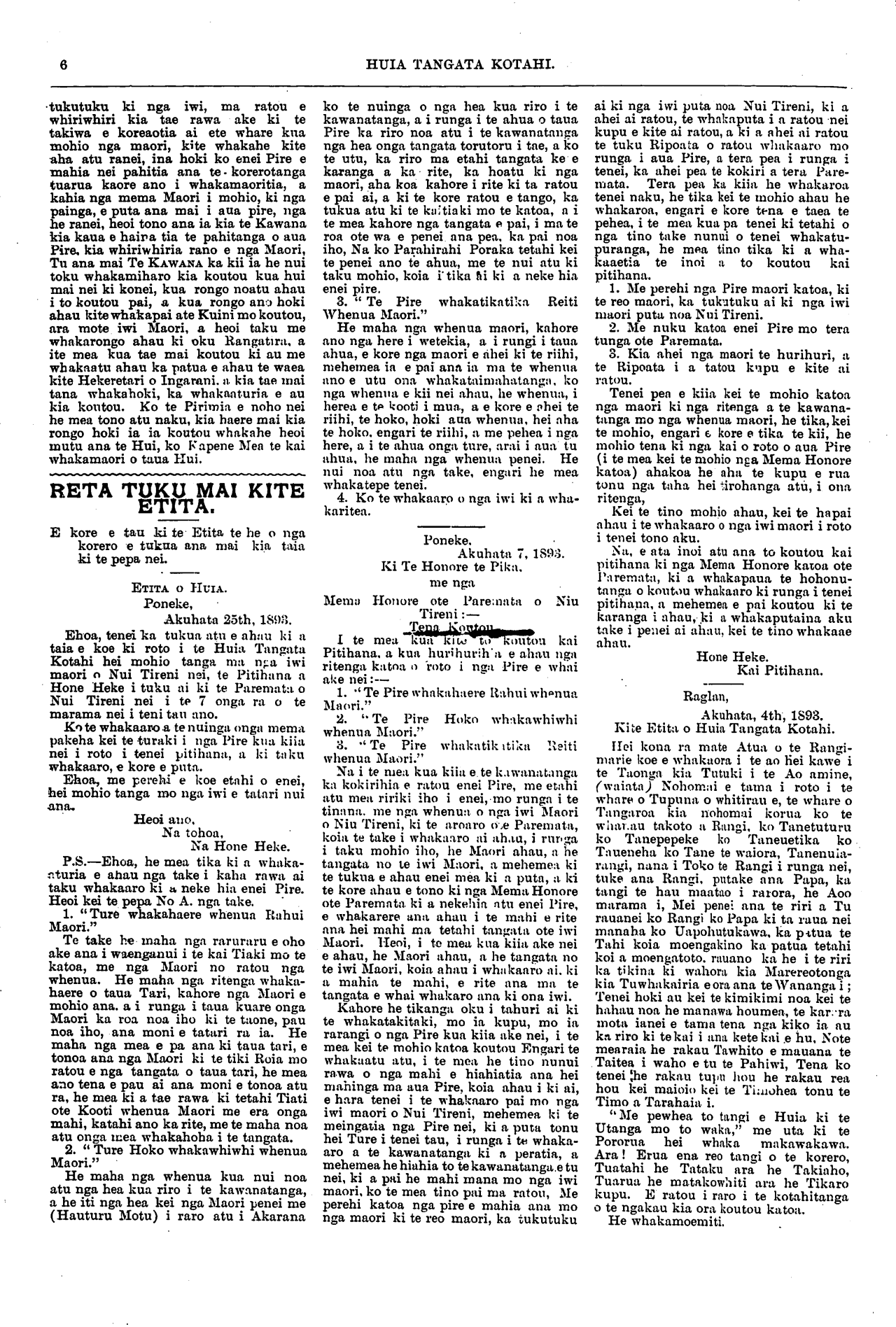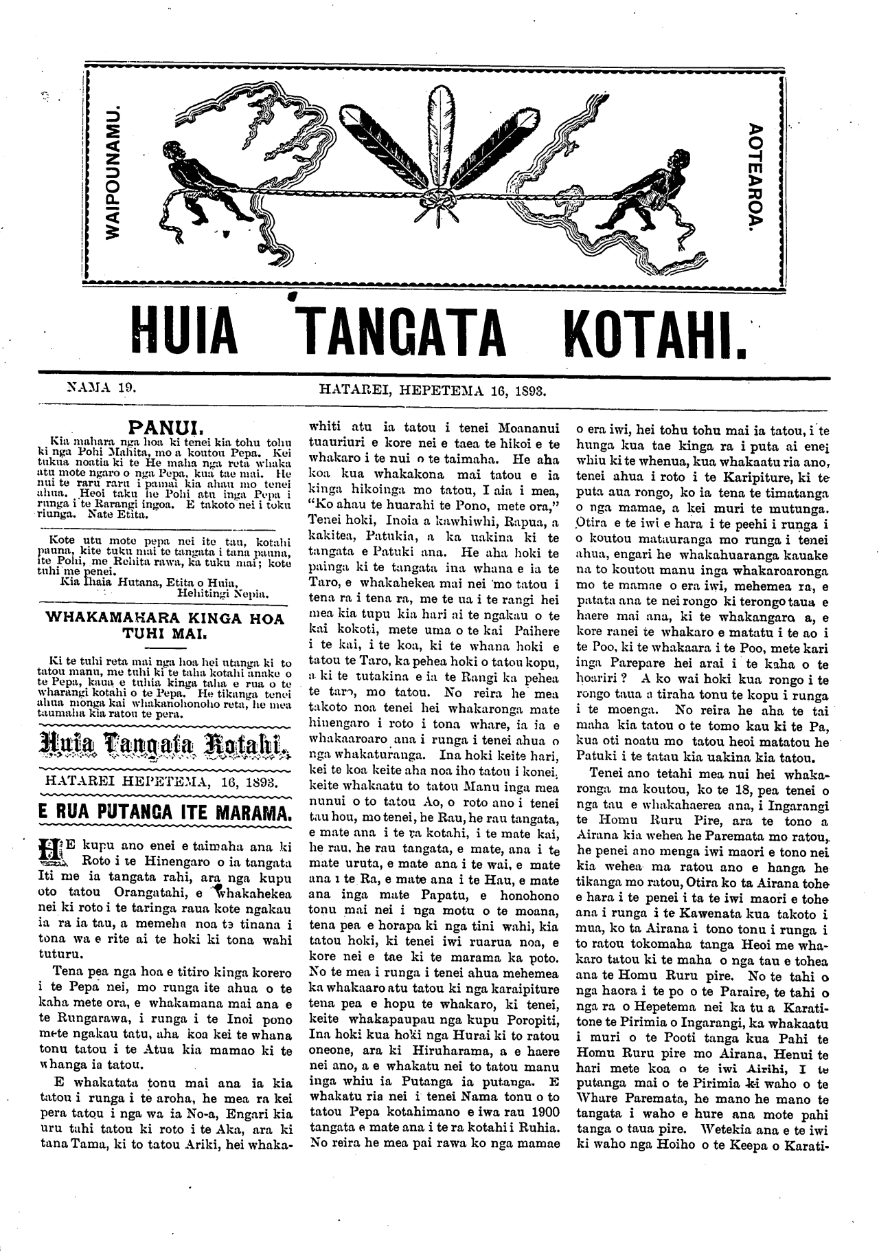 Huia Tangata Kotahi 1893-1895: Volume 1, Number 19. 16 September 1893 |