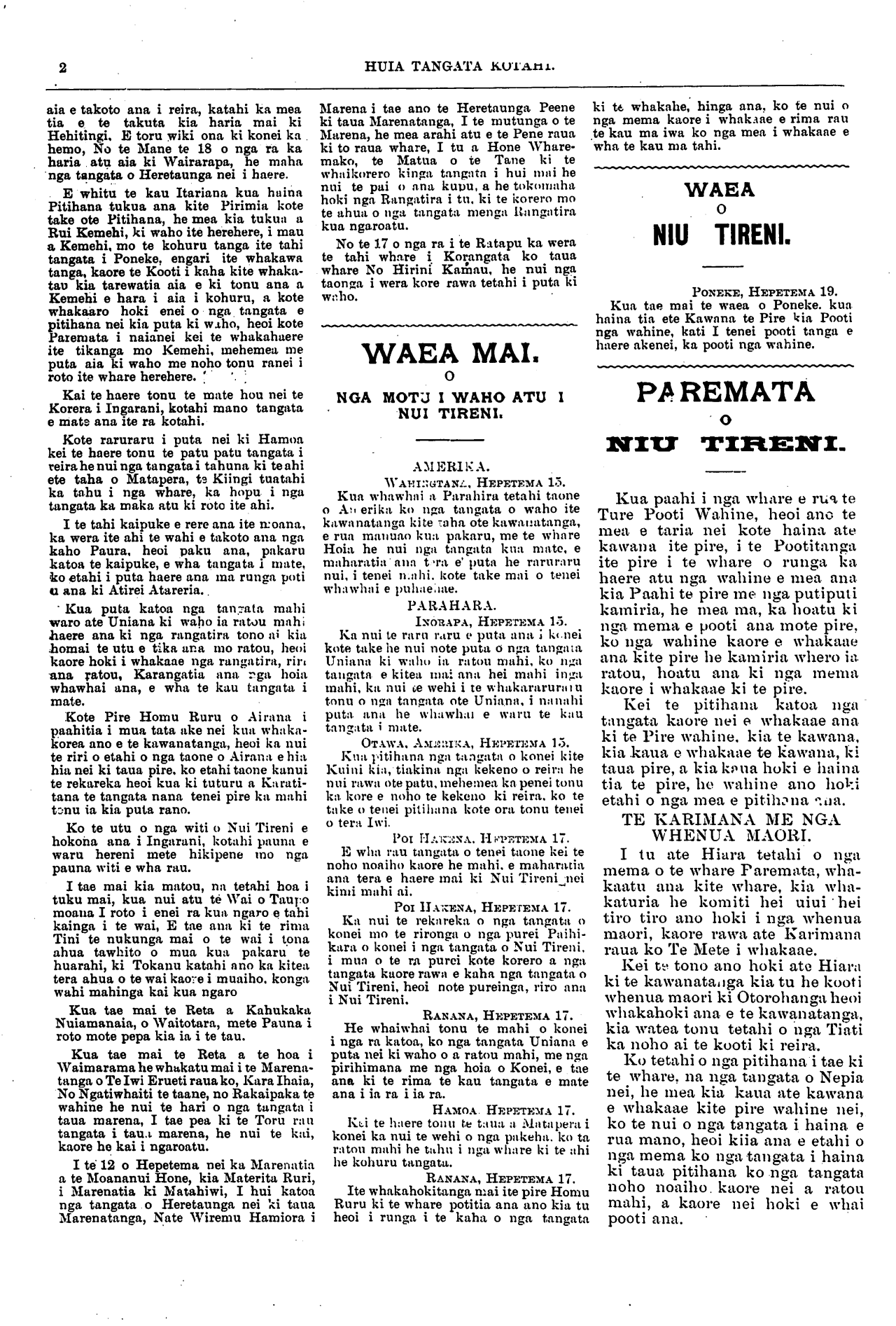 Nupepa Maori. Haeremai Haeremai ina-