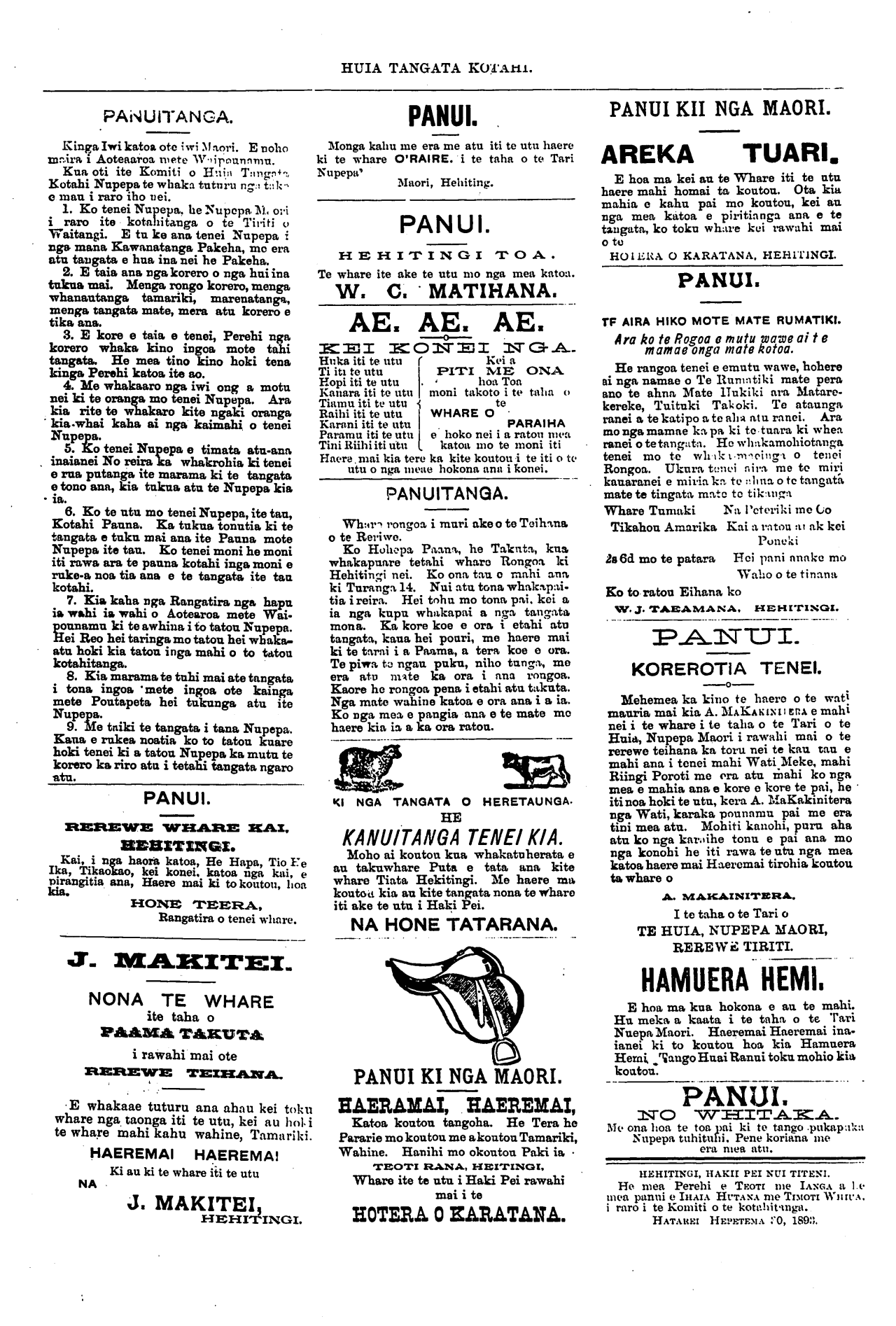 iti noa hoki te utu, kera A. Makakinitera