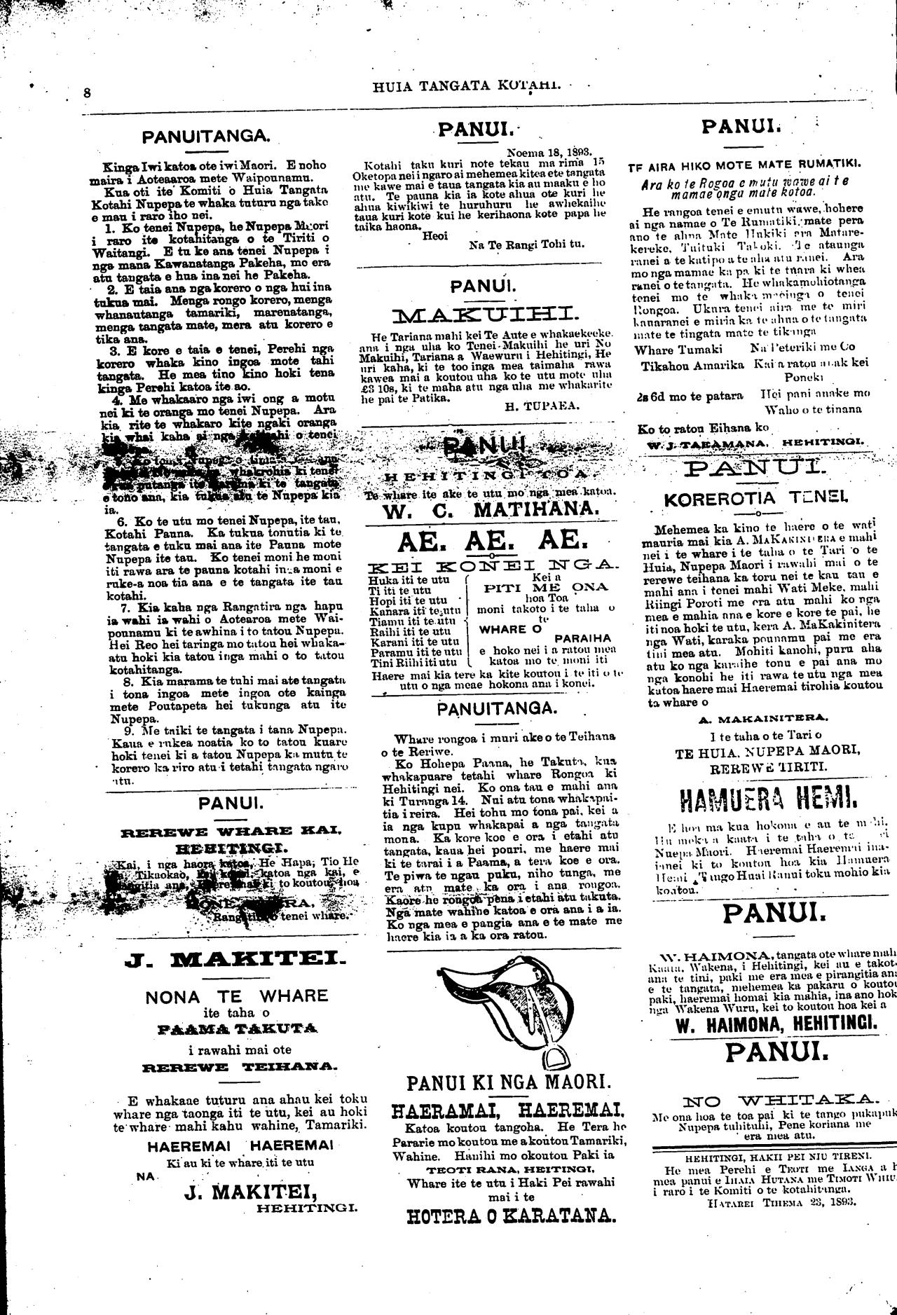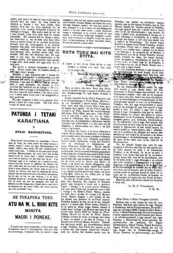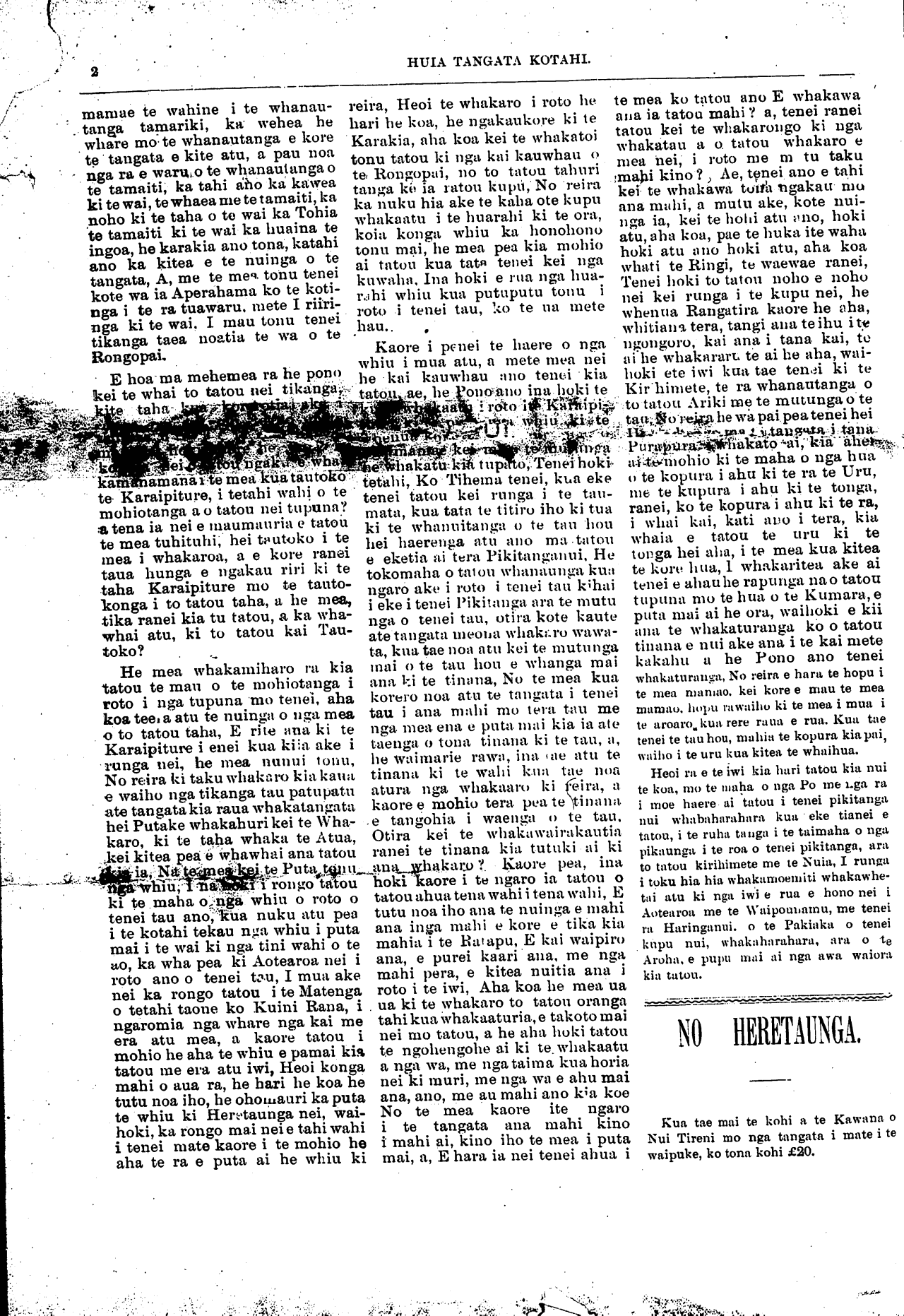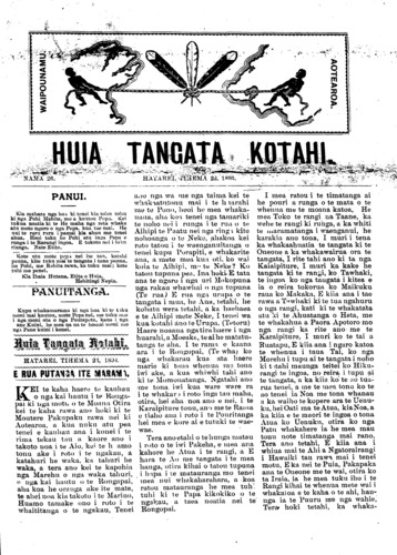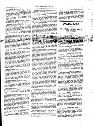 HUIA TANGATA KOTAHI NAMA 26. HATAREI, TIHEMA 23, 1893 PANUI. Kia mahara nga hoa ki tenei kia tohu tonu ki nga Pohi Mahita, mo a koutou Pepa. Kei tukua noatia ki te He maha nga reta whaka atu mote ngaro o nga Pepa kua tae mai. He nui te raru raru i pamai kia ahau mo tenei ahua. Heoi taku he Pohi atu i nga Pepa i runga i te Rarangi ingoa. E takoto nei i toku ringa. Na te Etita