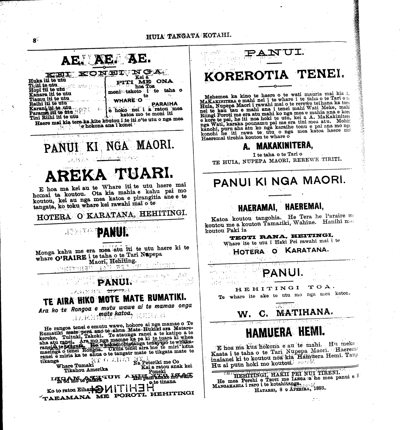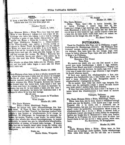 Huia Tangata Kotahi 1893-1895: Volume 1, Number 5. 05 April 1893 |