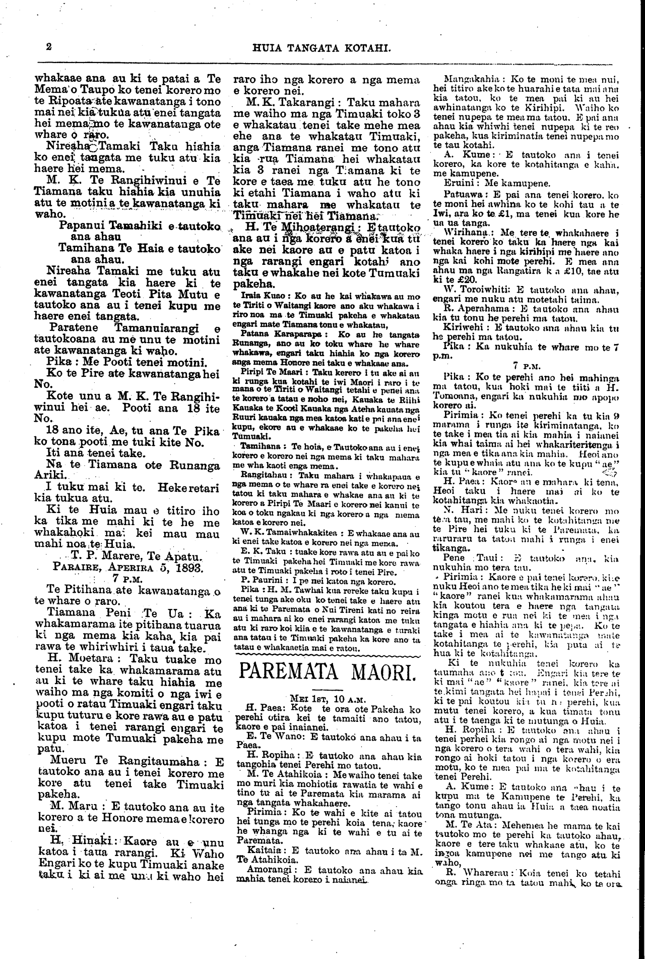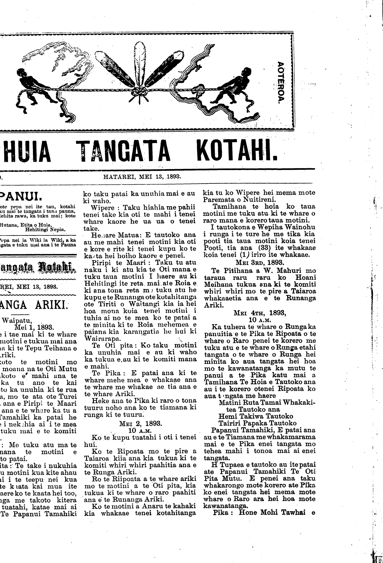 Huia Tangata Kotahi 1893-1895: Volume 1, Number 9. 13 May 1893 |