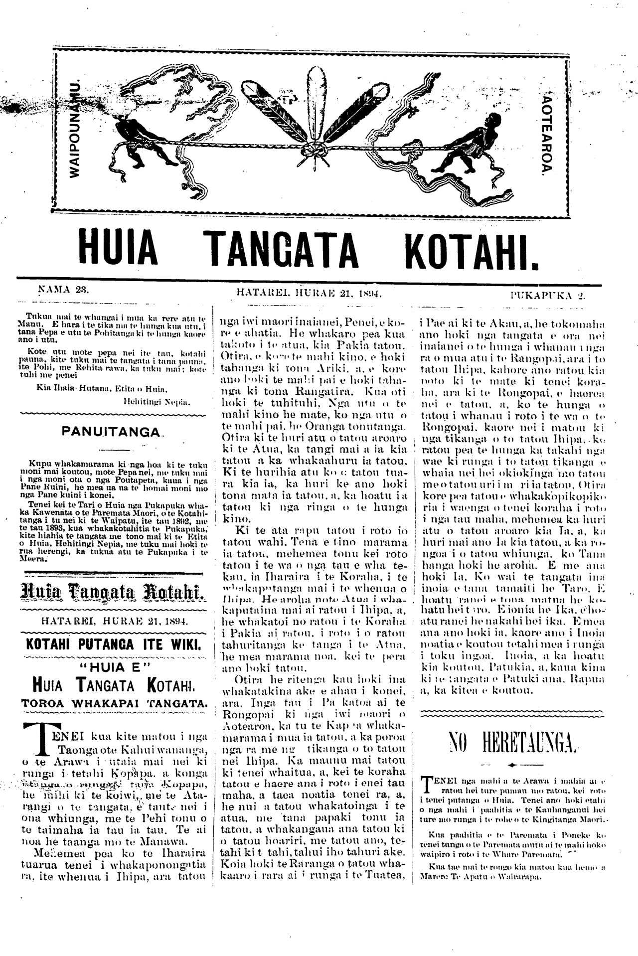 Huia Tangata Kotahi 1893-1895: Volume 2, Number 23. 21 July 1894 |