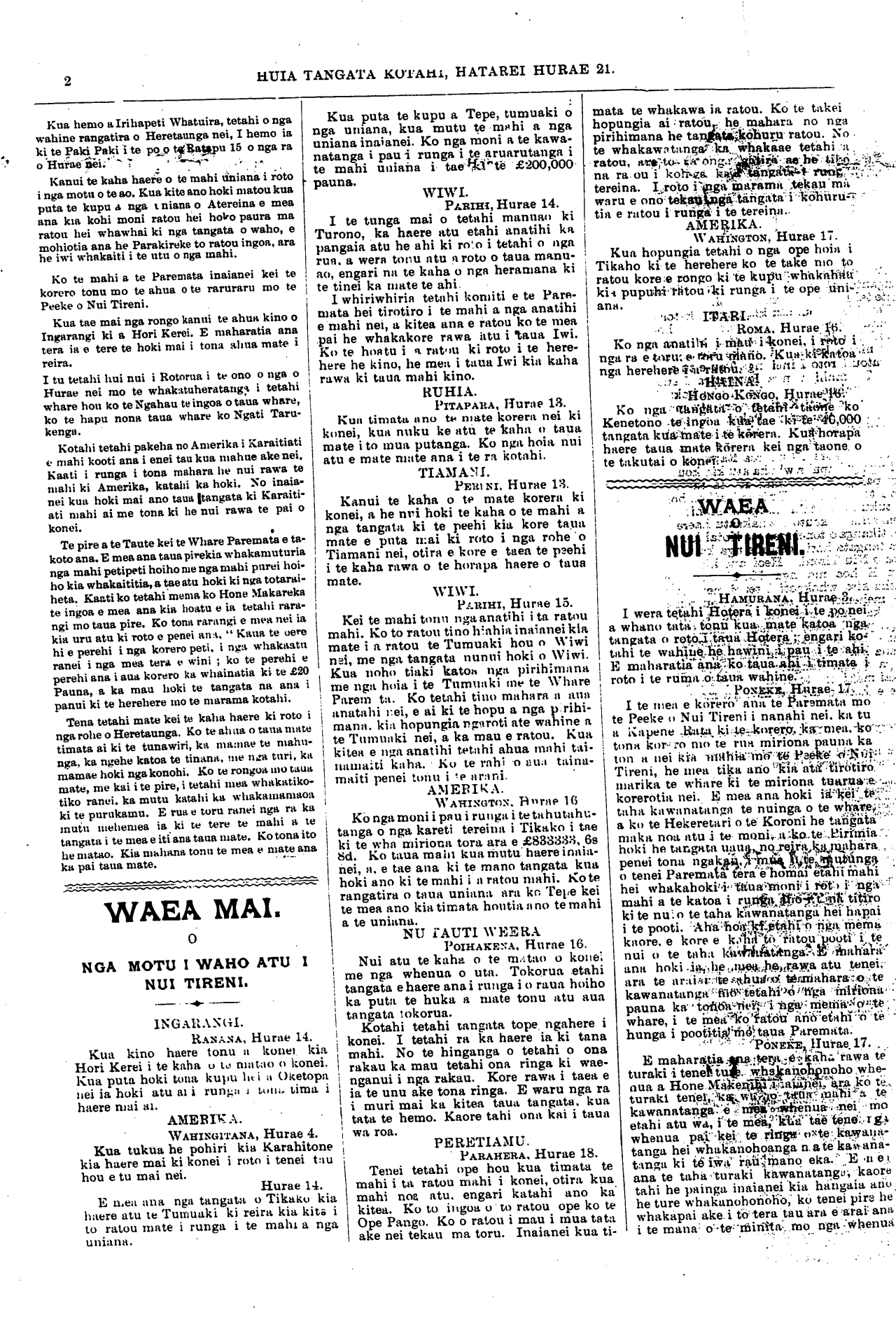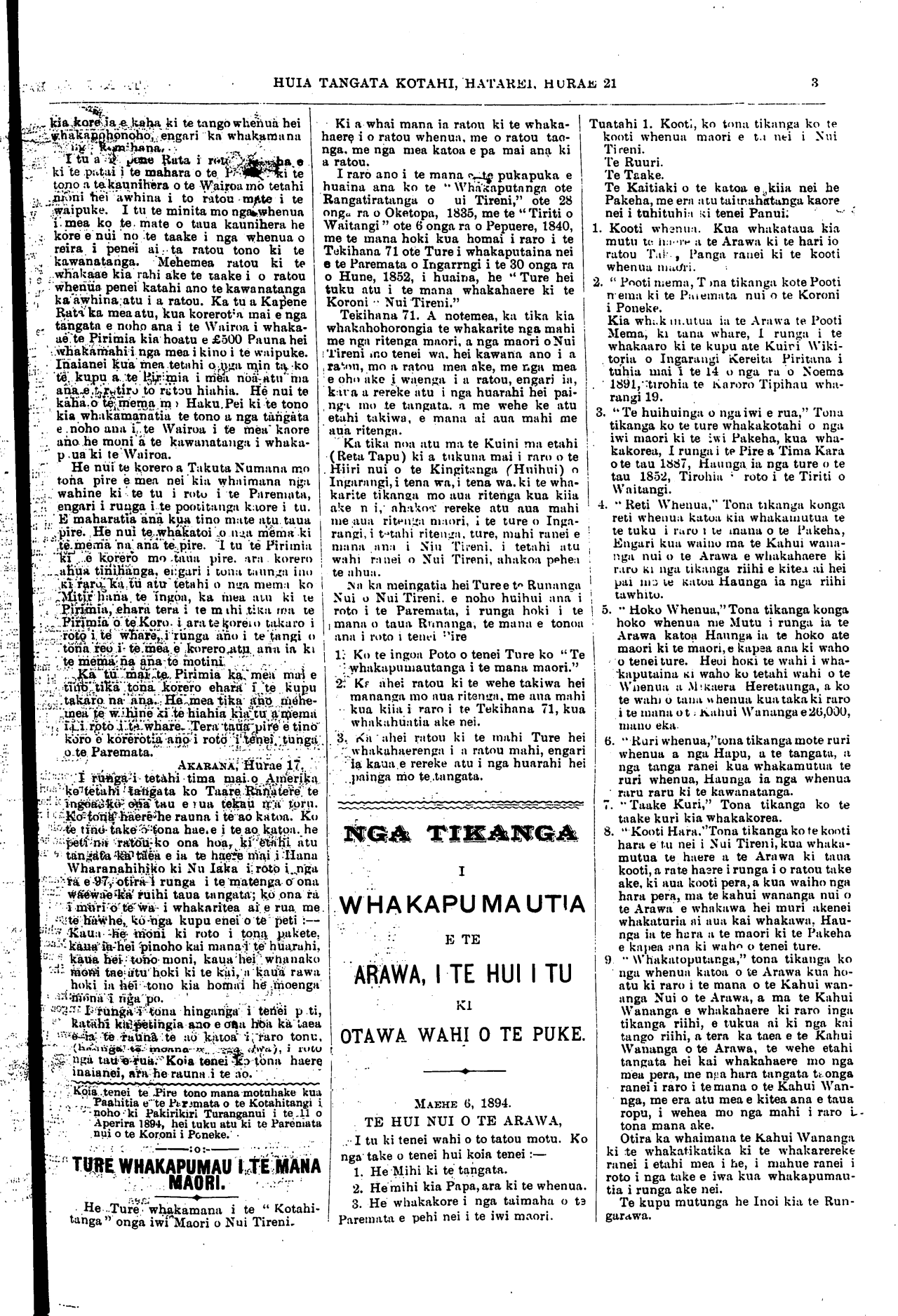 tanga i tu nei ki te Waipatu, ite tau 1892, me