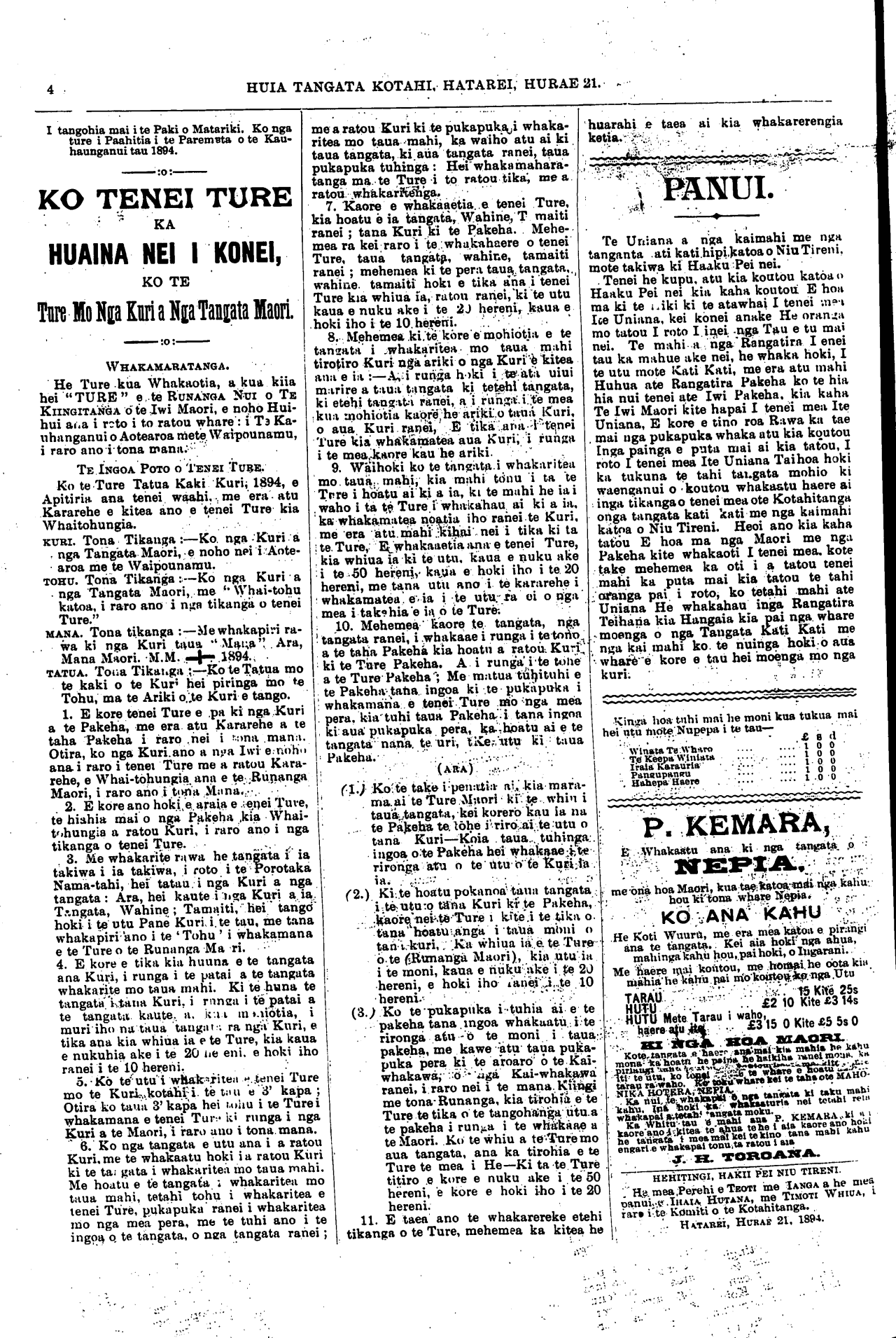 Ko te Ture Tatua Kaki Kuri, 1894, e