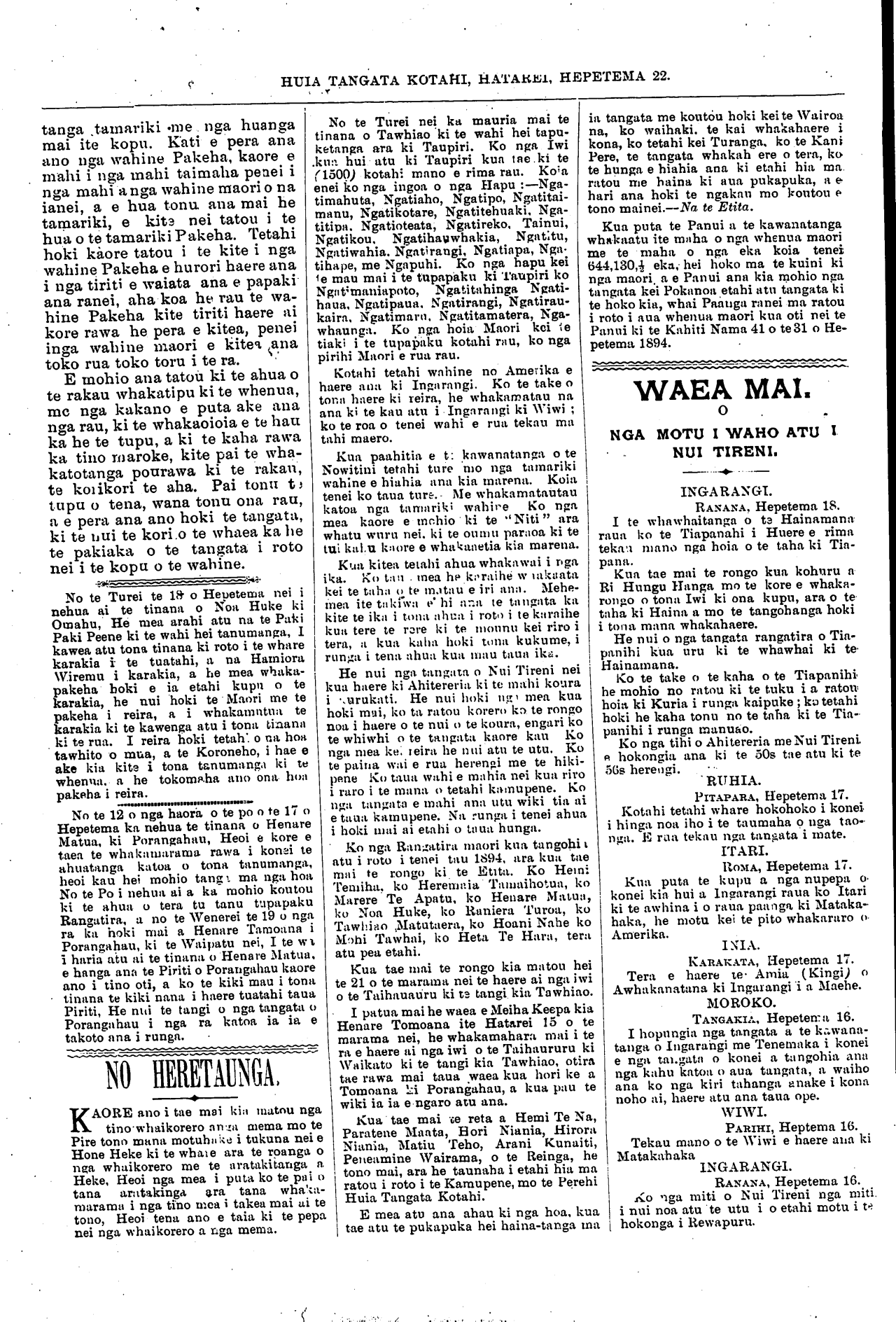 roa tekau ma rua o nga ra. o Hepetema 1894