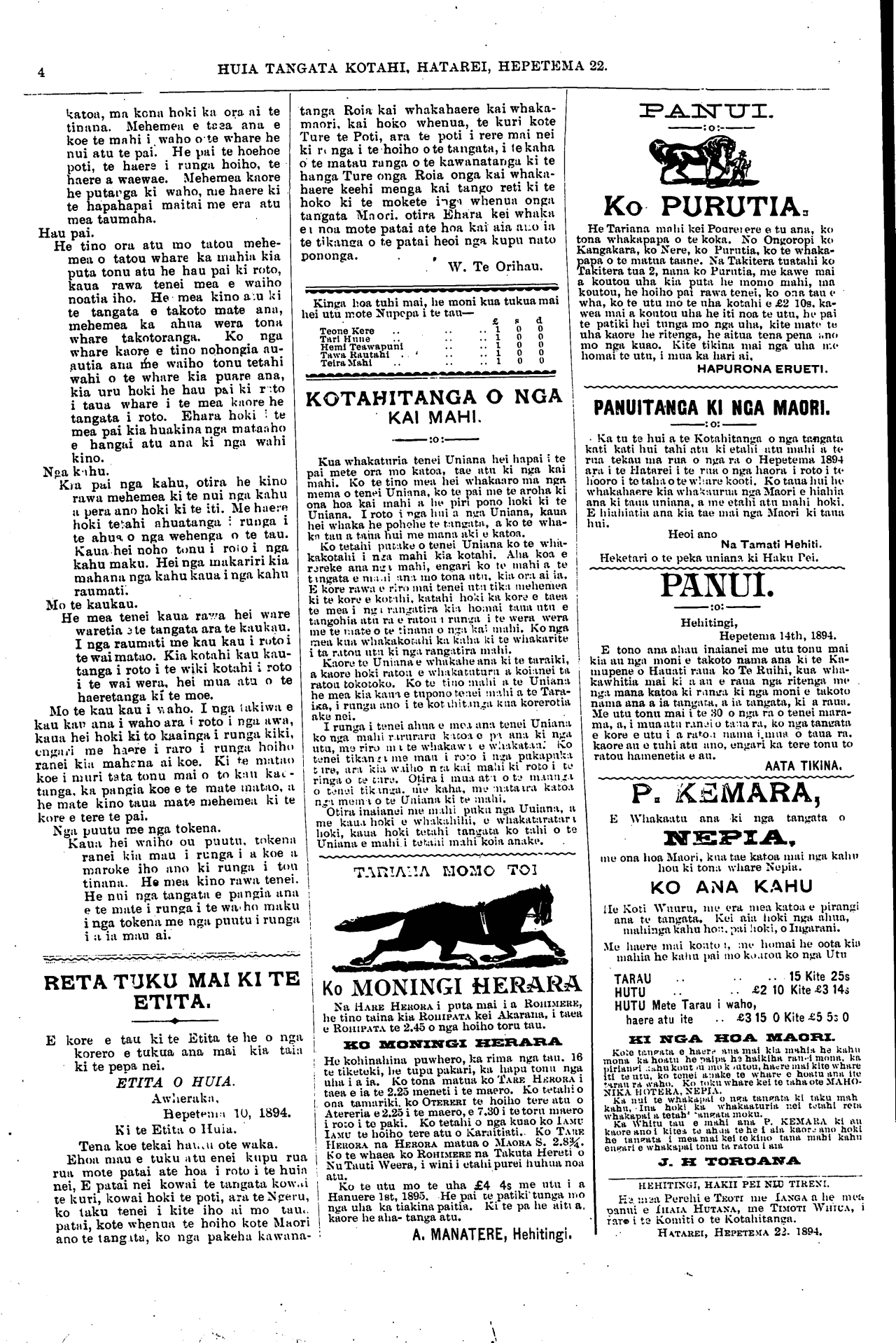 NAMA 32. HATAREI, HEPETEMA 22, 1894. / PUKAPUKA 2.