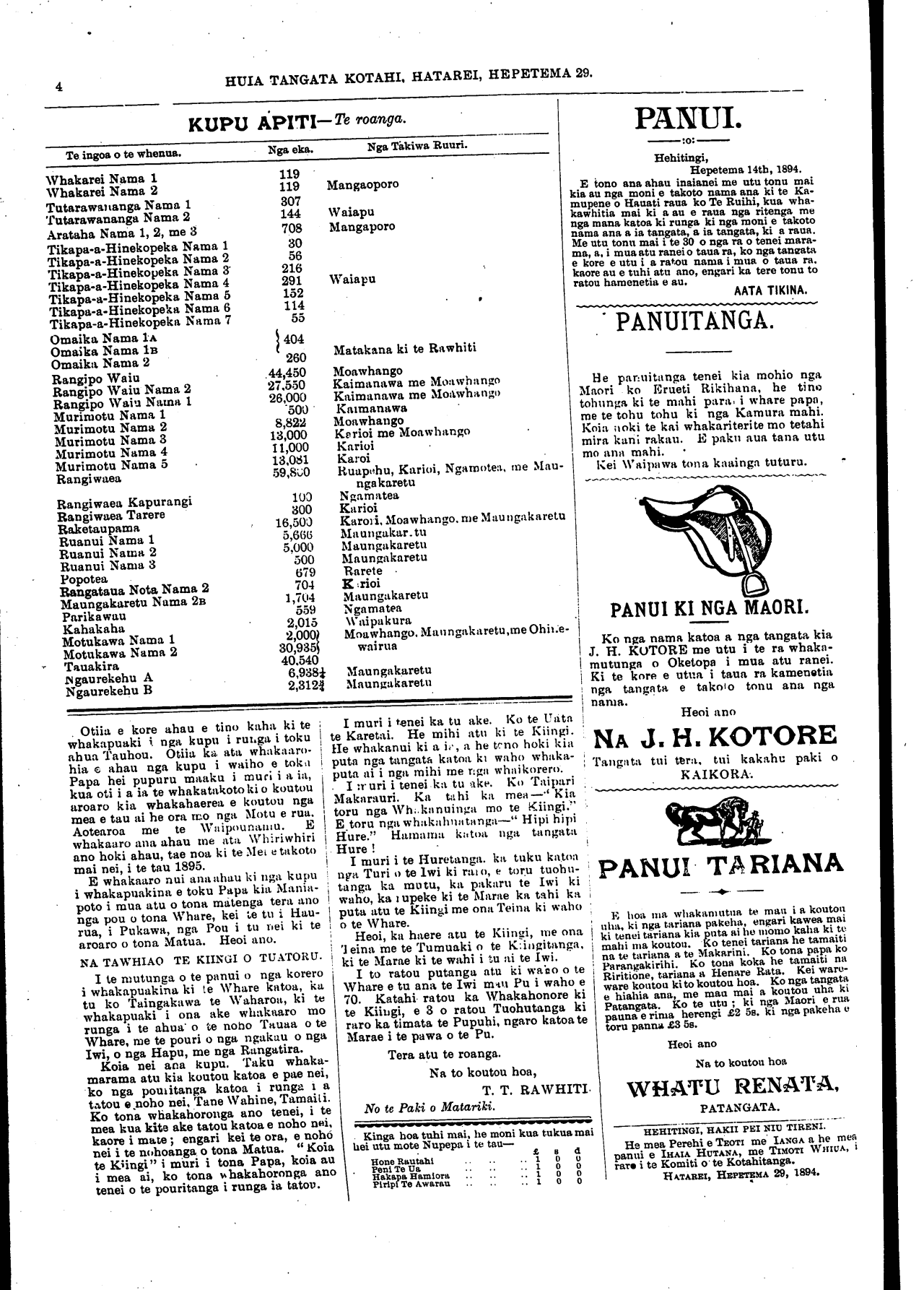 tanga i tu nei ki te Waipatu, ite tau 1892, me