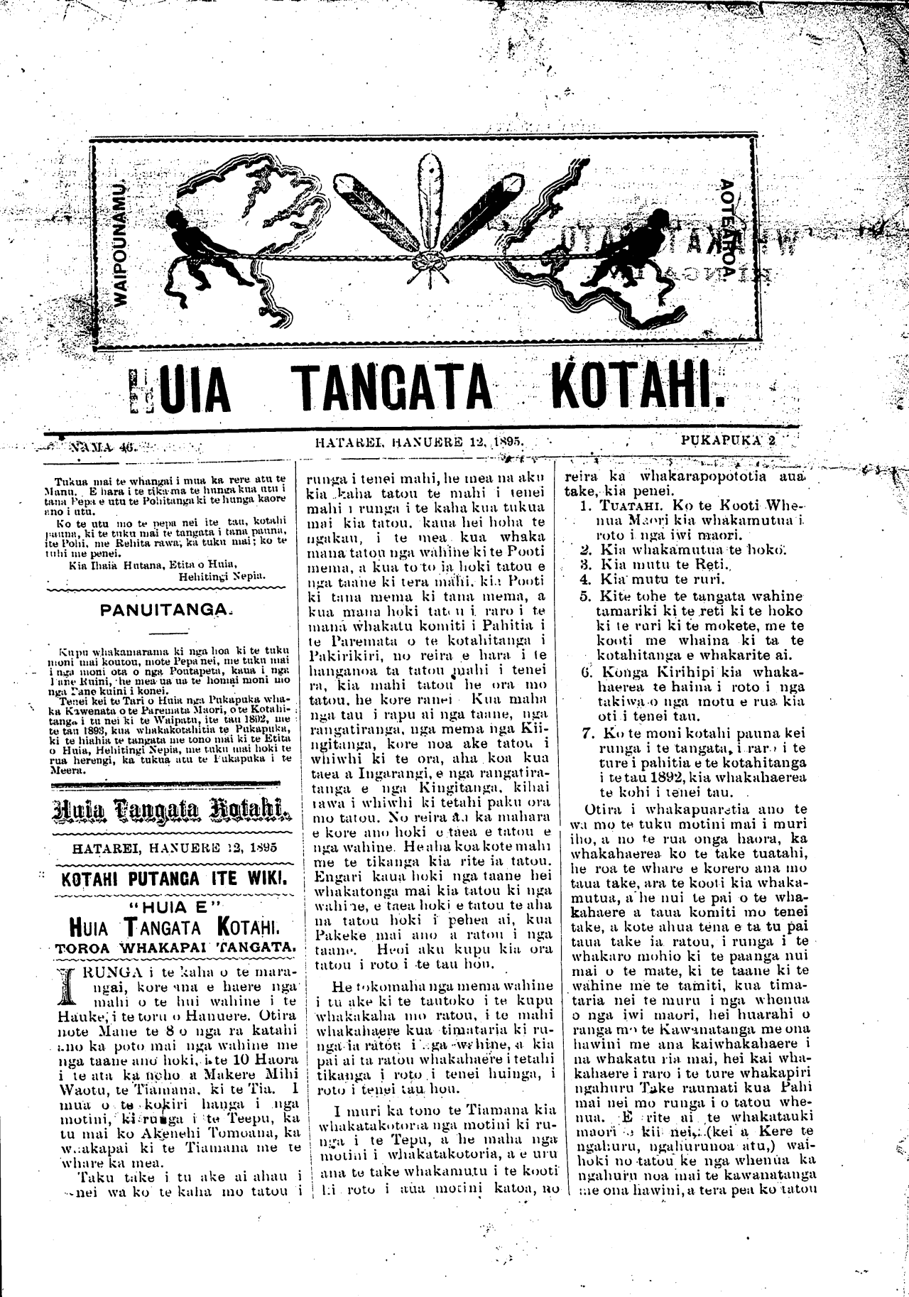 Huia Tangata Kotahi 1893-1895: Volume 2, Number 46. 12 January 1895 |