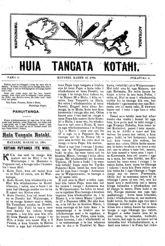 Huia Tangata Kotahi 1893-1895: Volume 2, Number 4. 10 March 1894 |