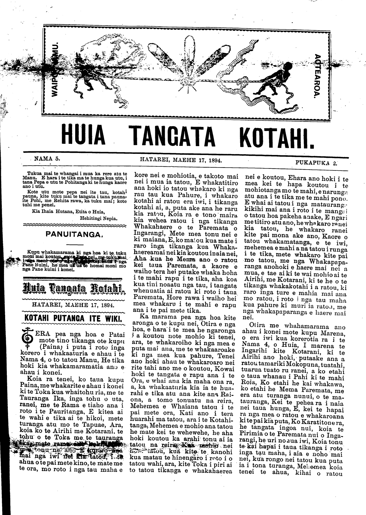 Huia Tangata Kotahi 1893-1895: Volume 2, Number 5. 17 March 1894 |