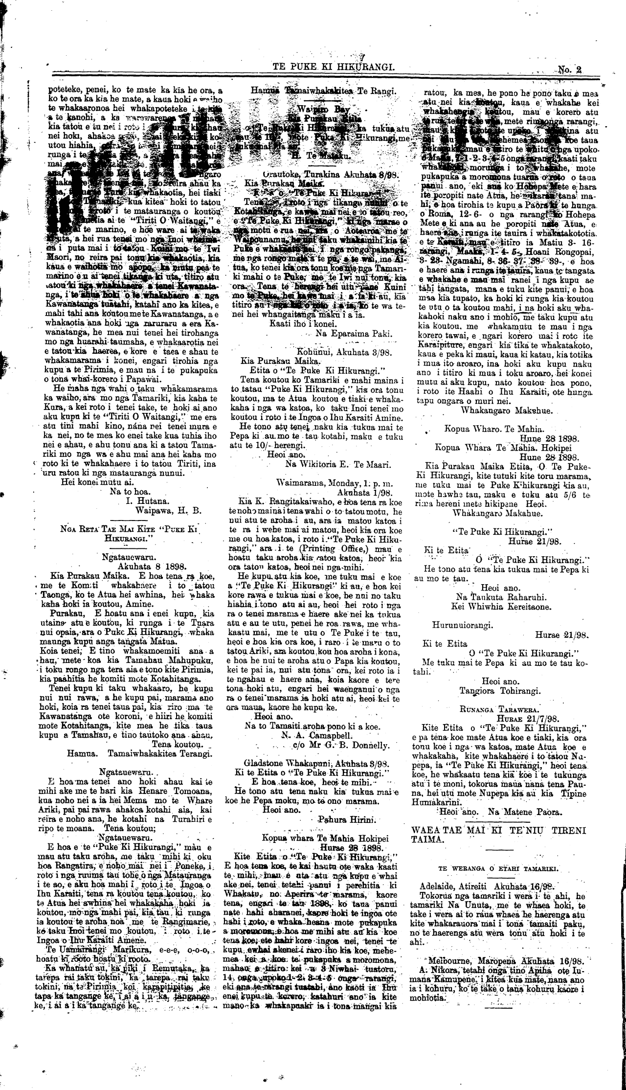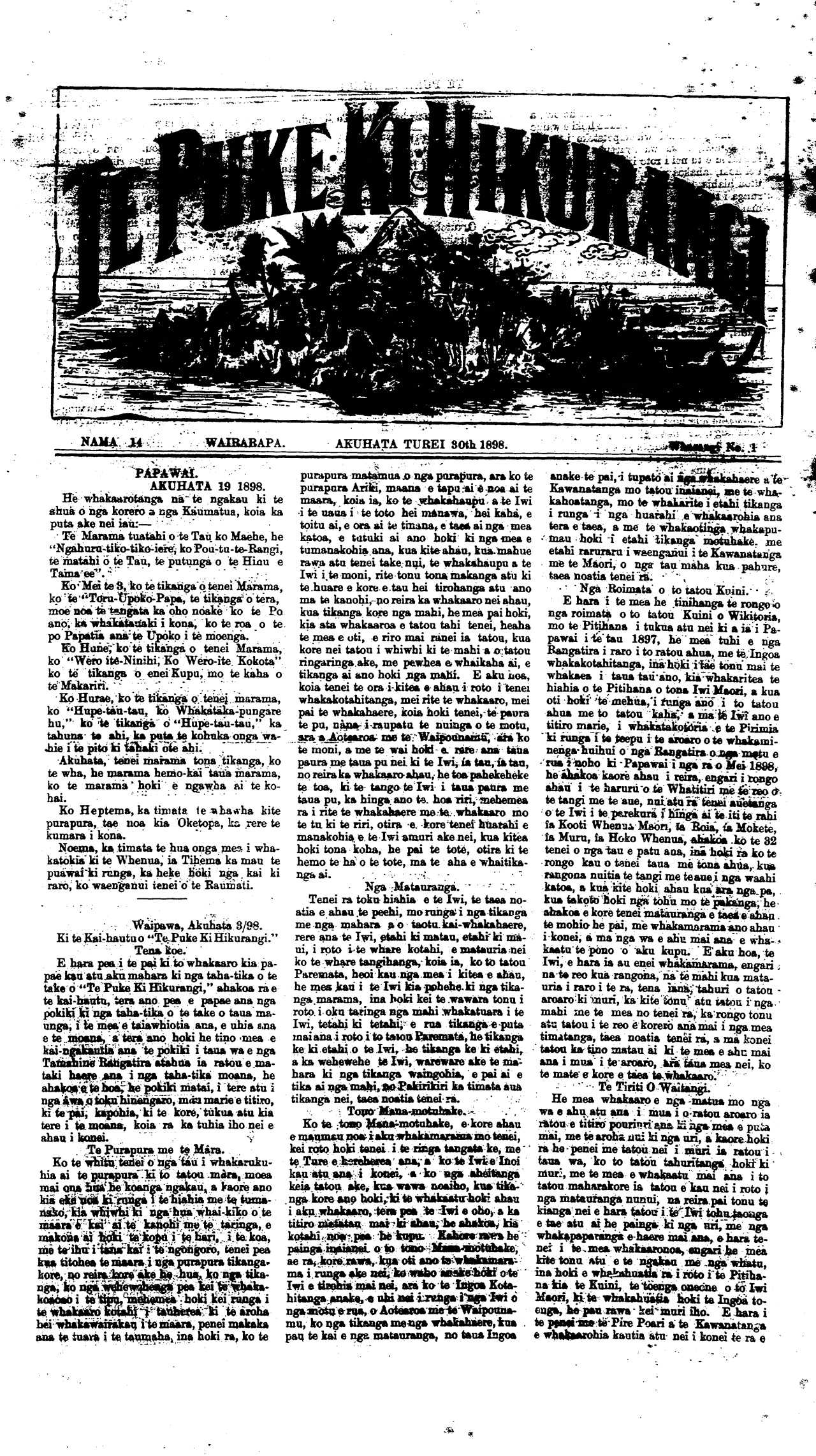 Te Puke Ki Hikurangi 1897-1913: Volume 1, Number 14. 30 August 1898 |