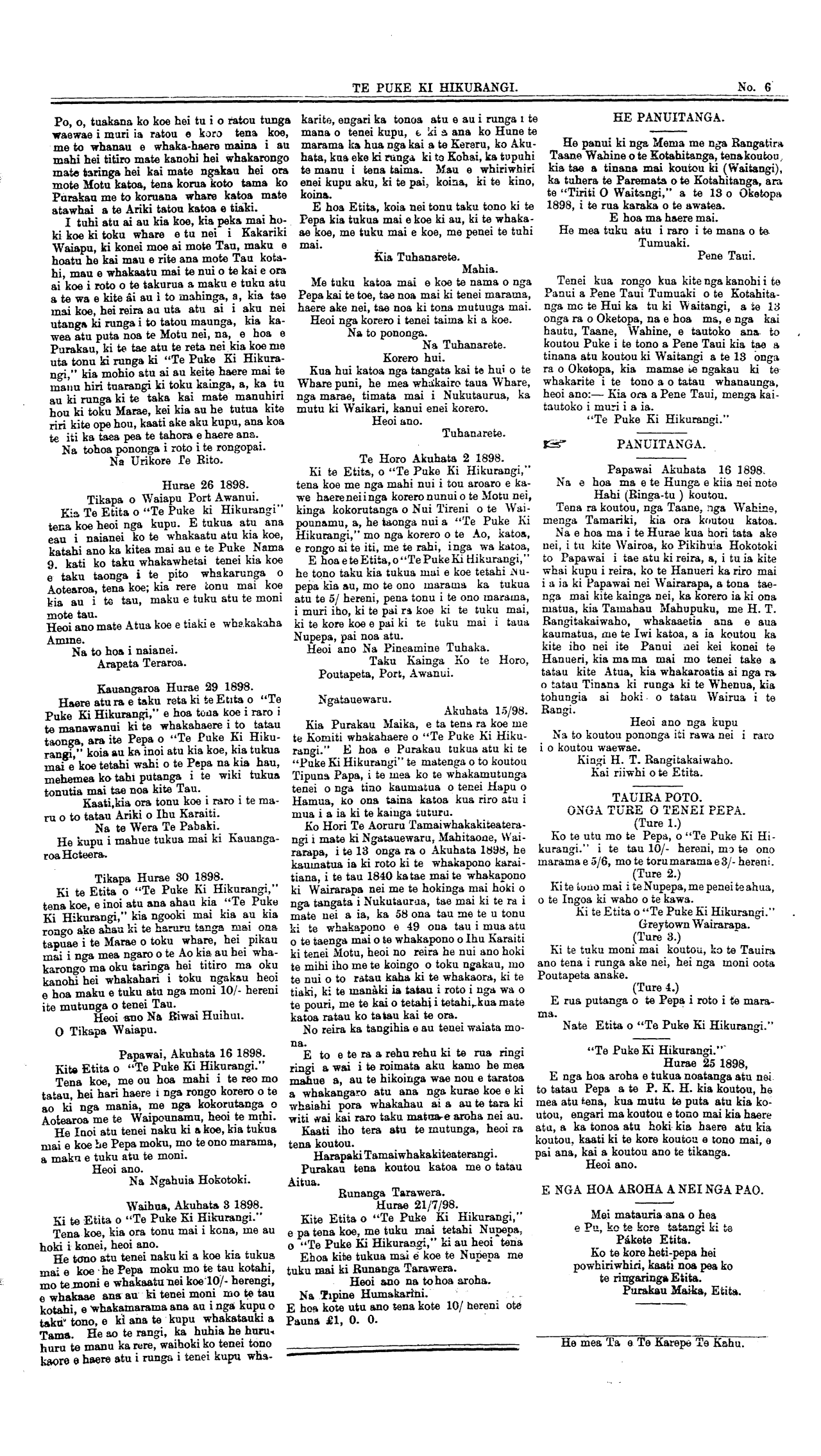 Ko te utu mo te Pepa, o "Te Puke Ki Hi-