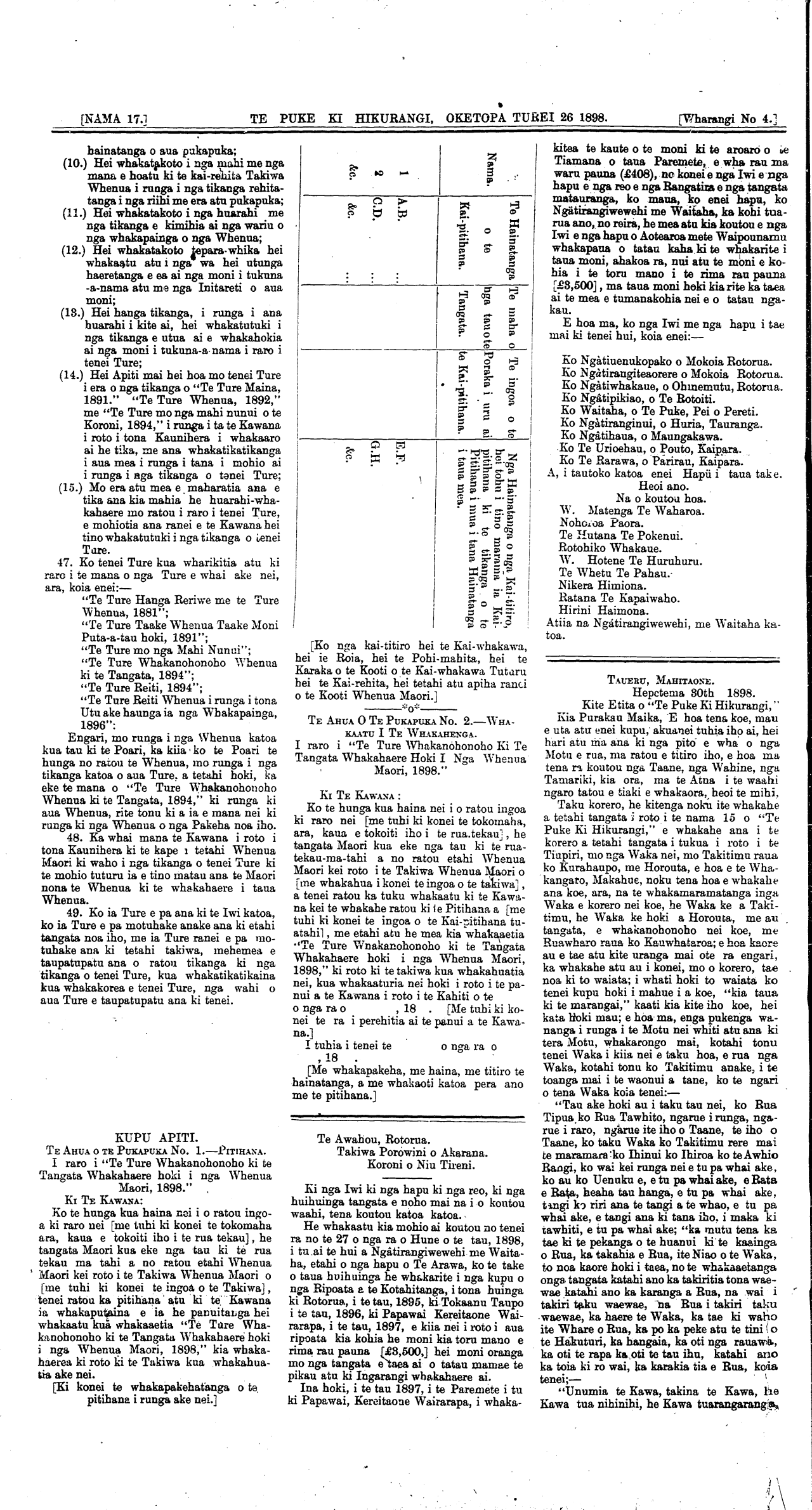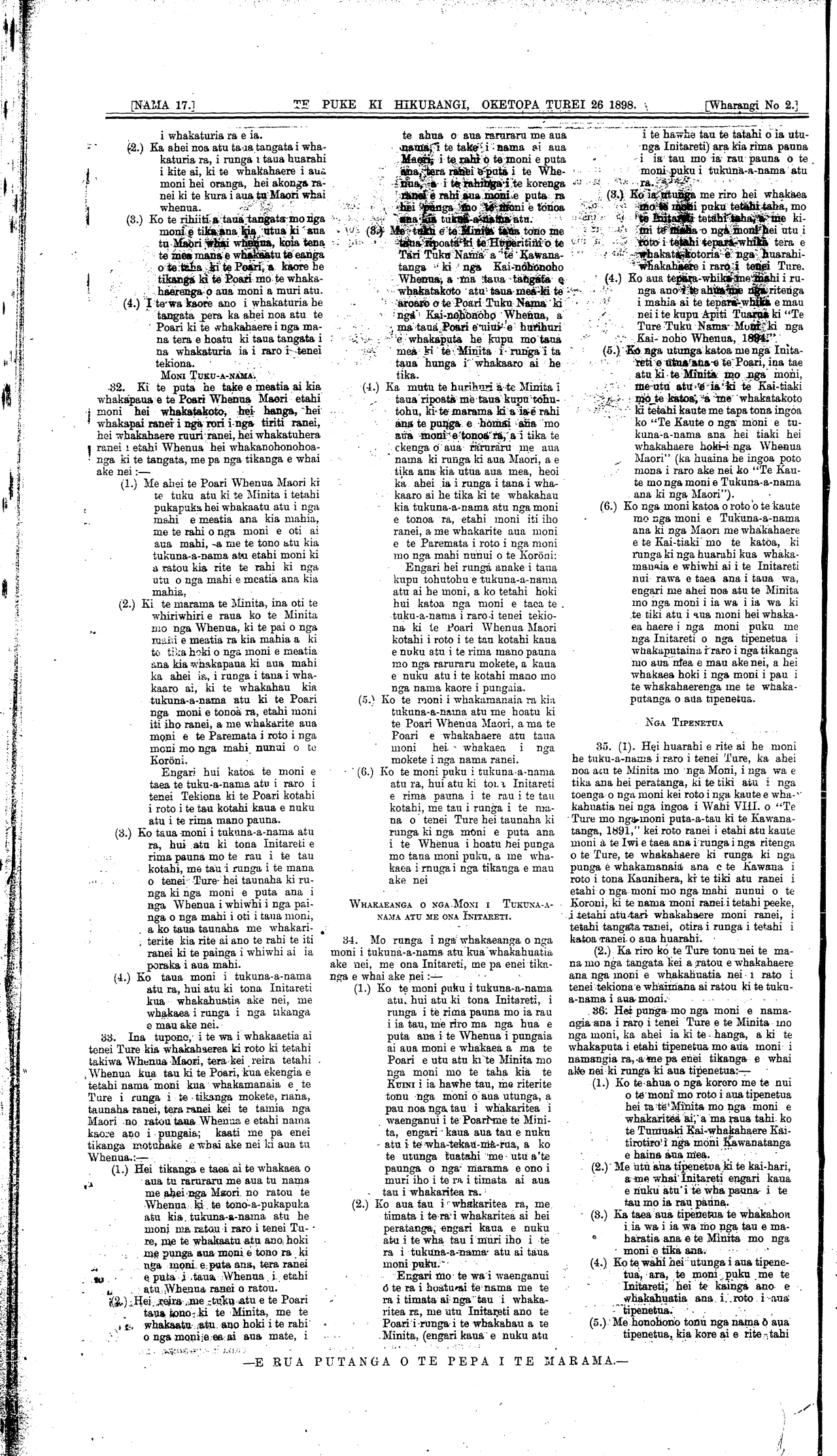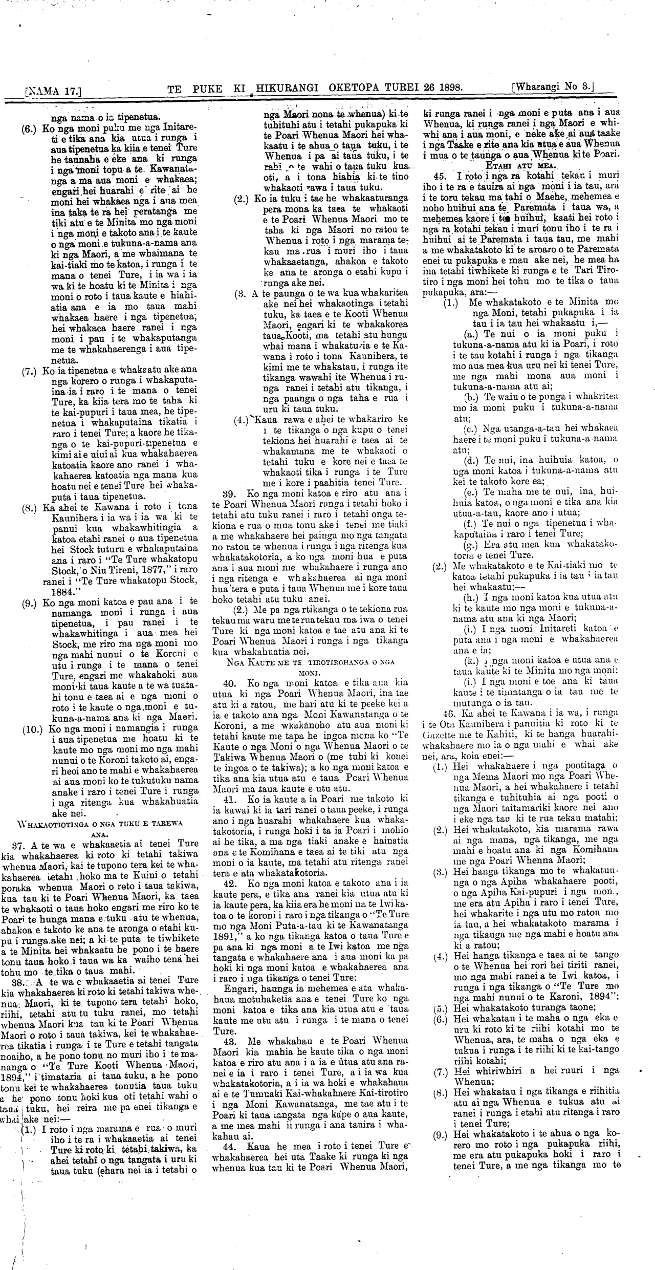 [NAMA 17.]\_\_\_\_\_\_\_\_\_\_TE PUKE KI HIKURANGI, OKETOPA TUREI 26 1898. \_\_\_\_\_\_[Wharangi No 2.]