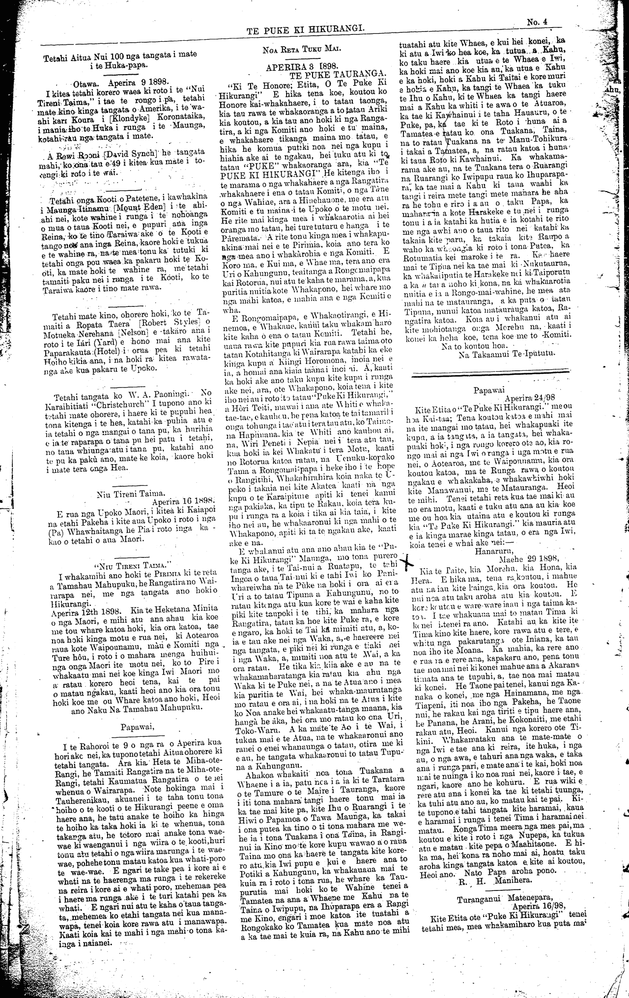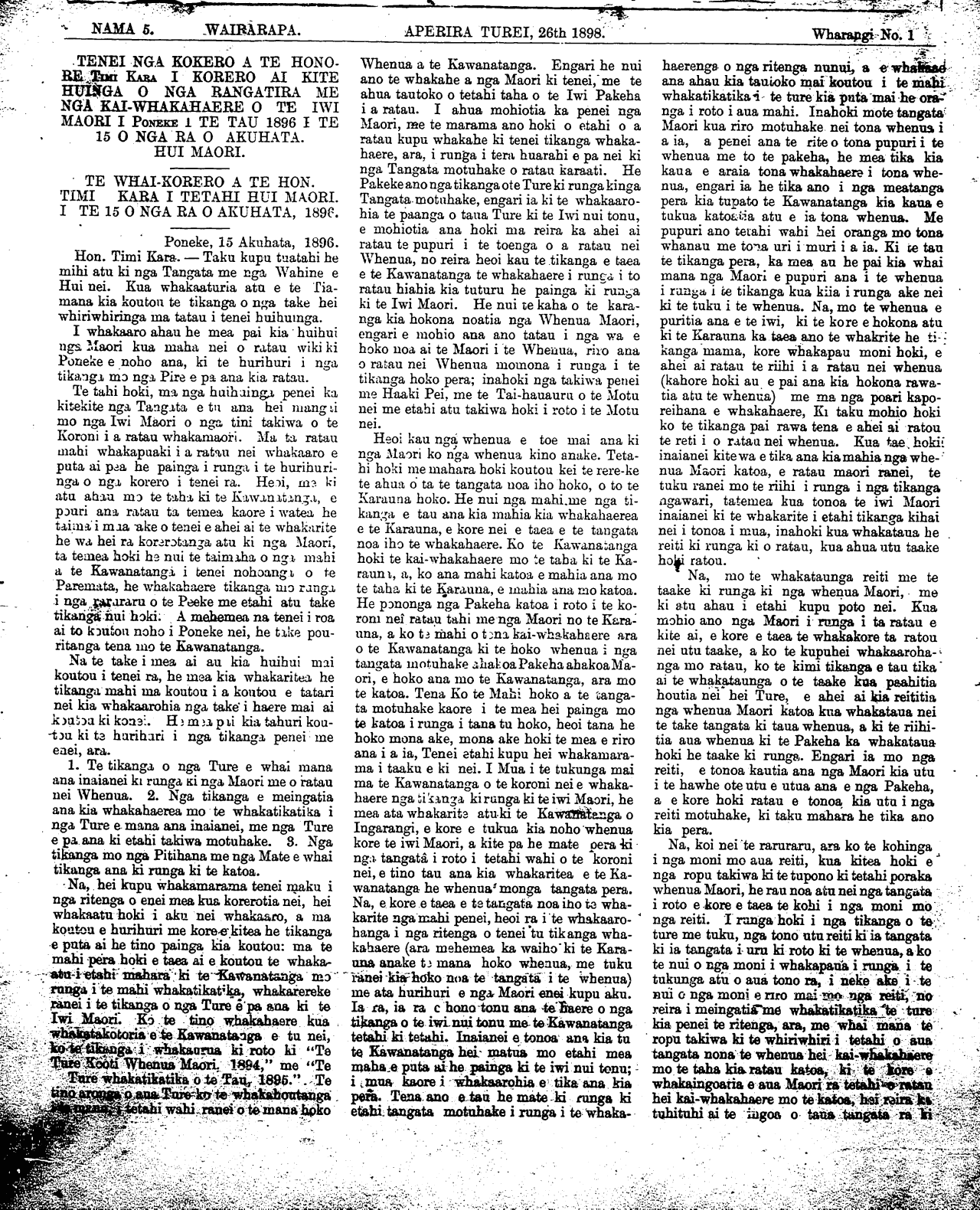 Te Puke Ki Hikurangi 1897-1913: Volume 1, Number 2. 15 March 1898 |