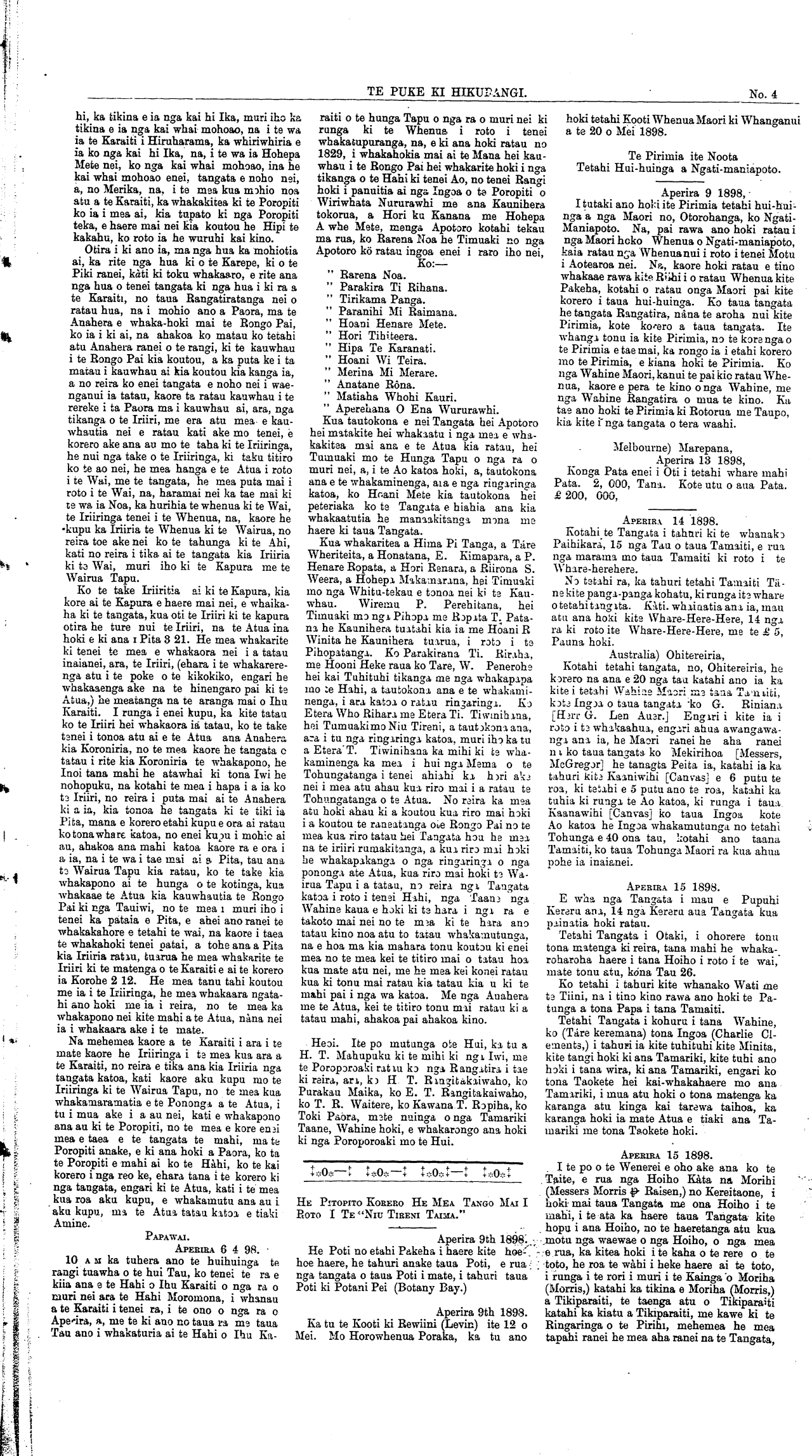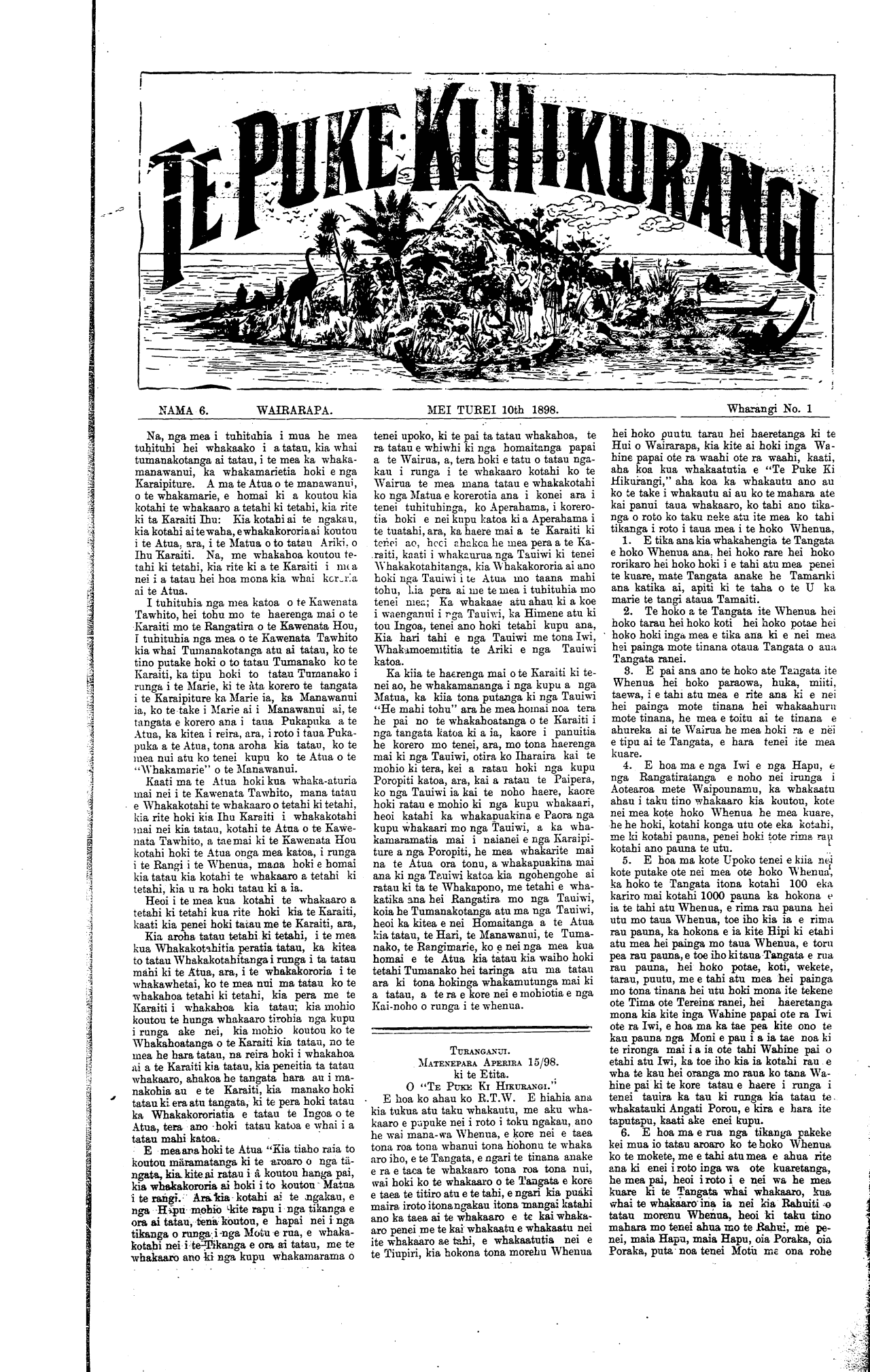 Te Puke Ki Hikurangi 1897-1913: Volume 1, Number 6. 10 May 1898 |