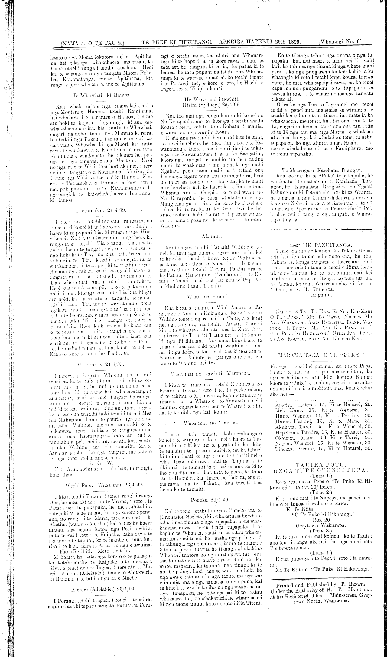 Te Puke Ki Hikurangi 1897-1913: Volume 2, Number 5. 29 April 1899 |