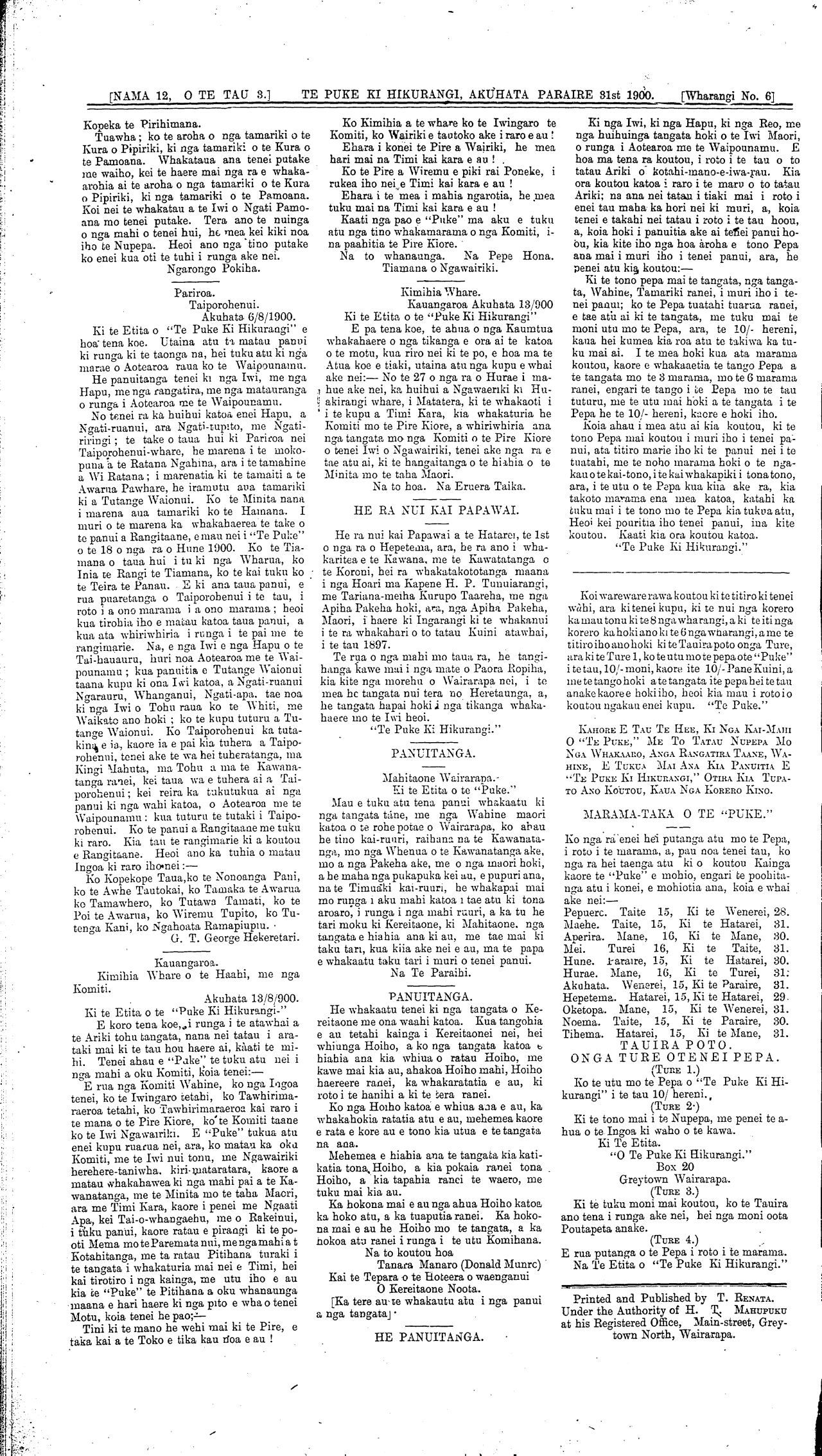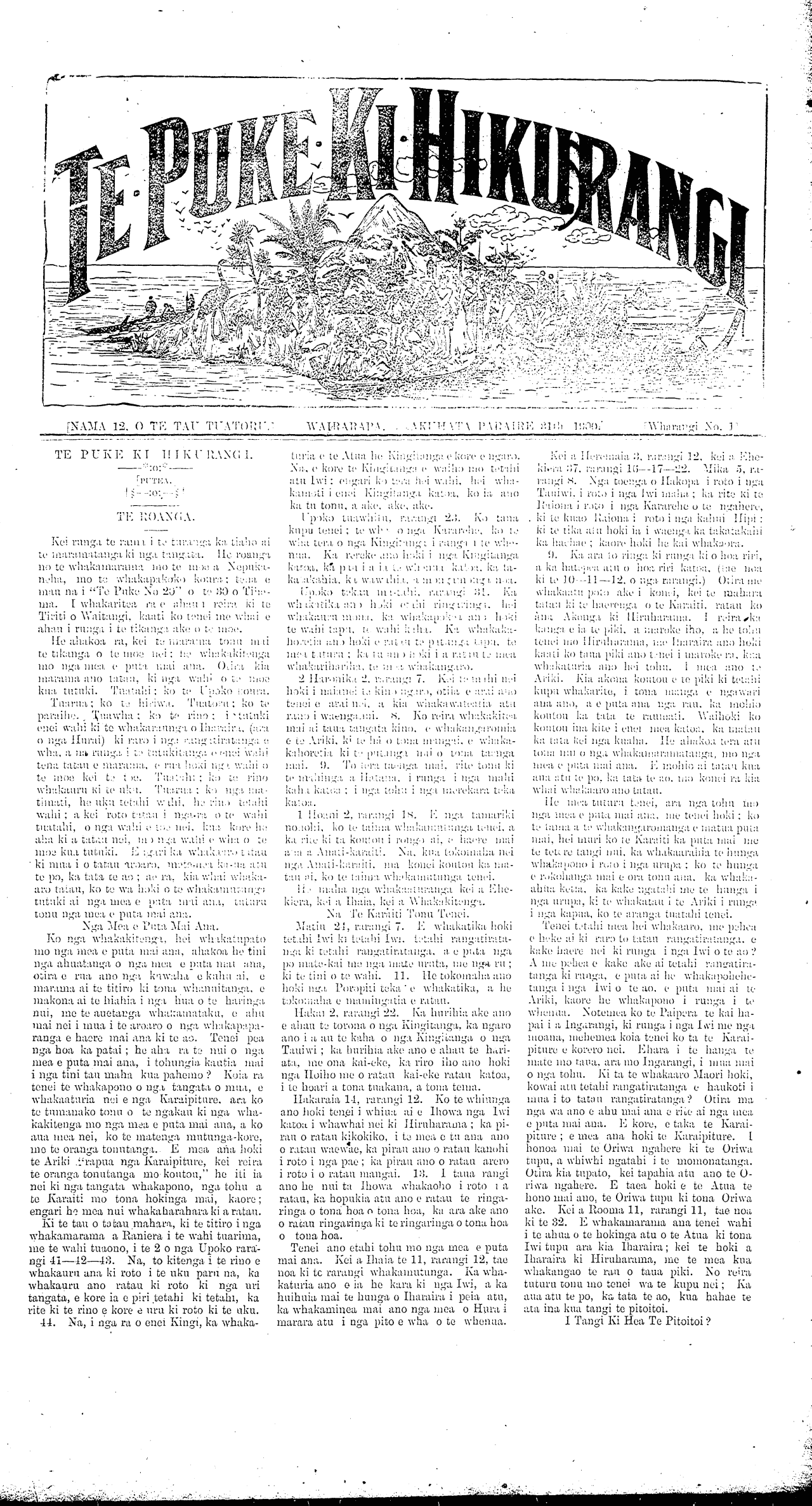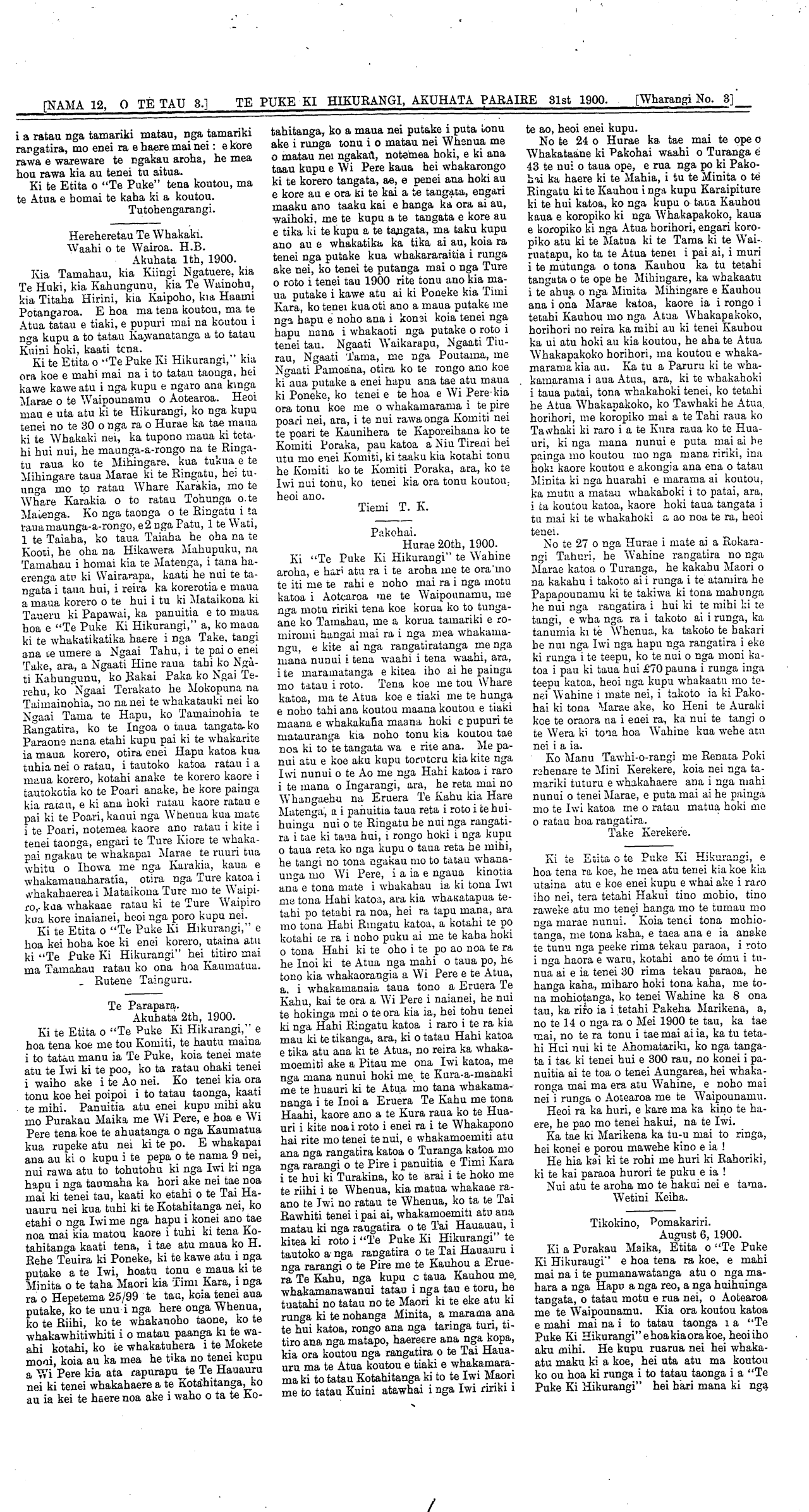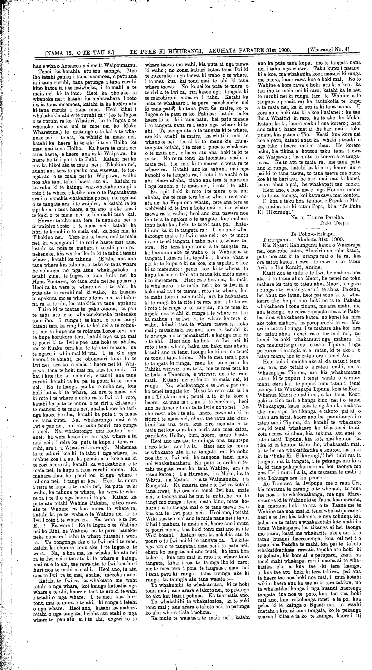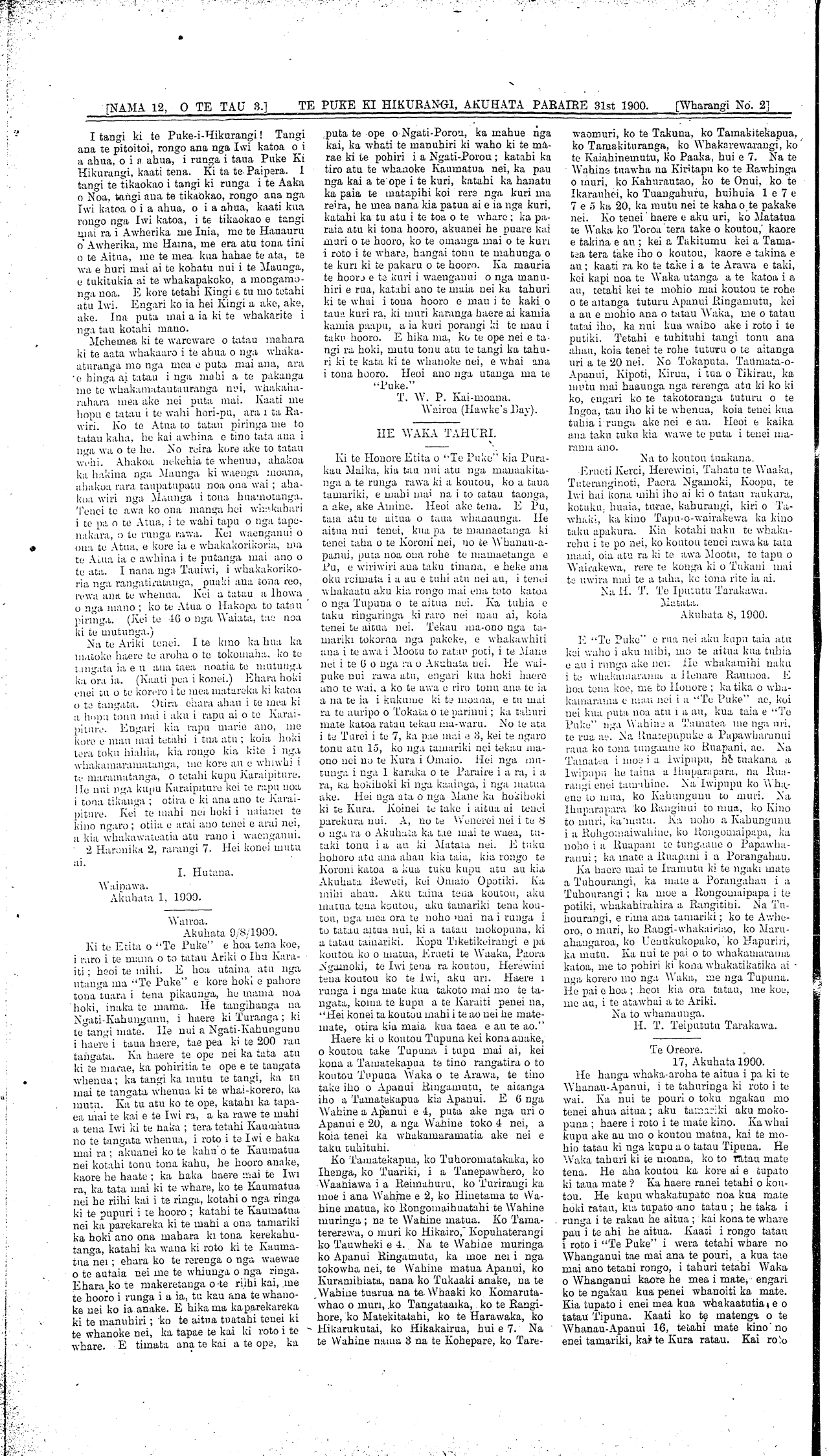 [NAMA 12, O TE TAU 3.] TE PUKE KI HIKURANGI, AKUHATA PARAIRE 31st 1900. [Wharangi No. 2]