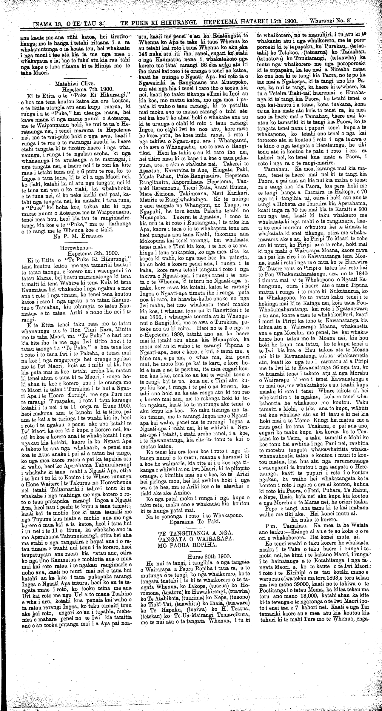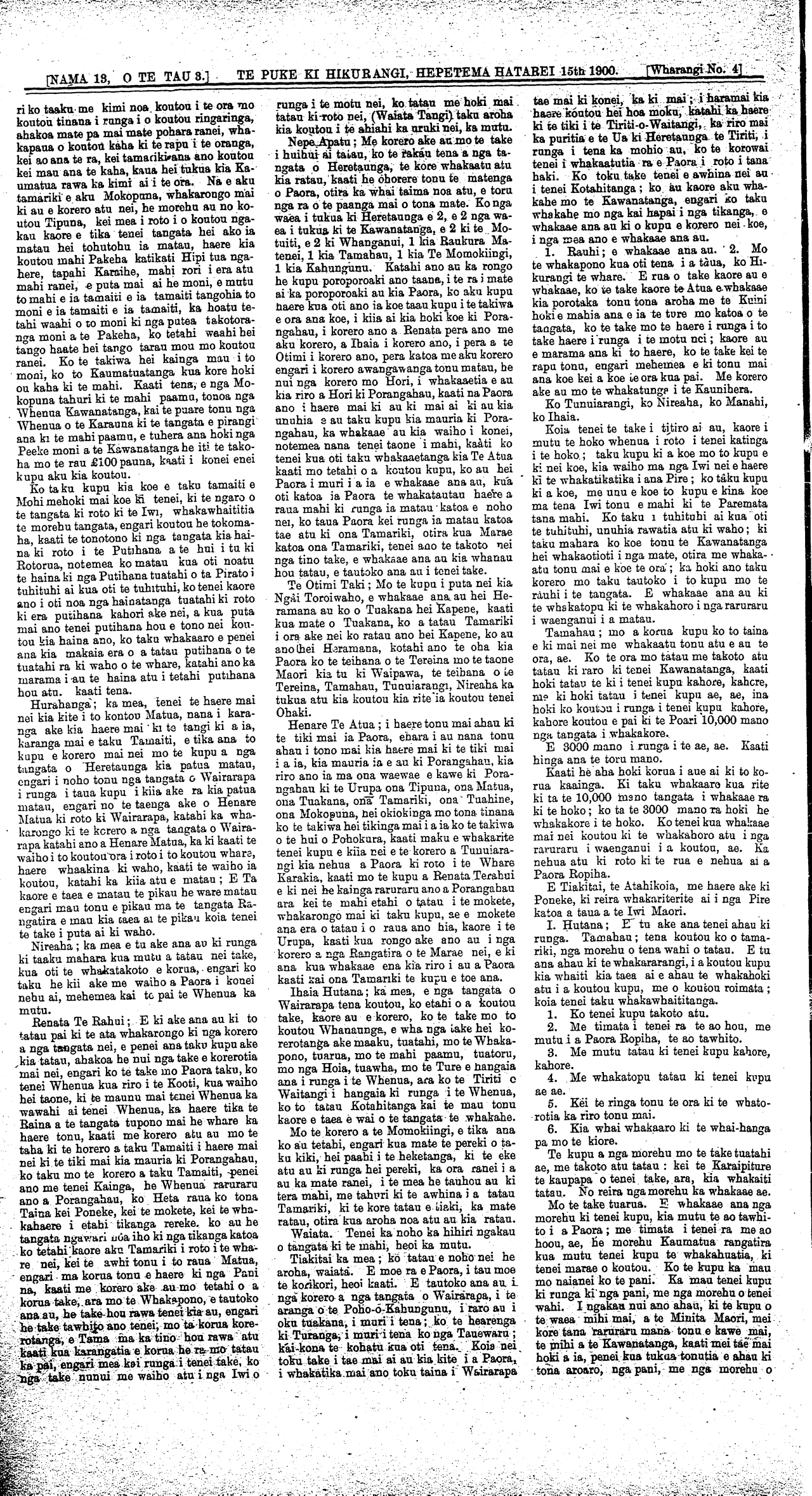 [NAMA 13, O TE TAU TUATORU.] WAIRARAPA. HEPETEMA HATAREI loth 1900. Wharangi No. 1]